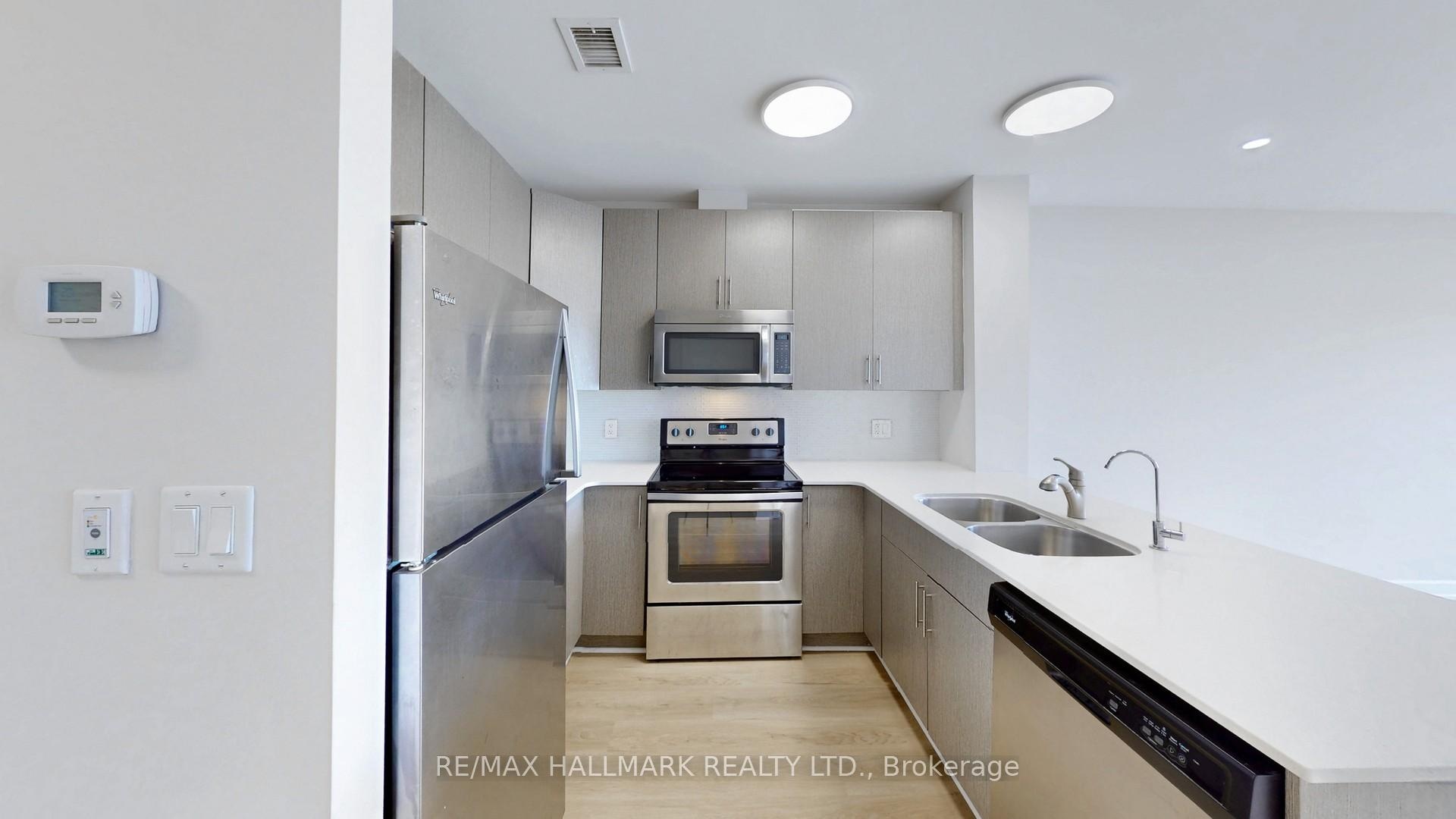 Welcome to this beautifully renovated, sun-filled south-facing suite in the heart of Kitchener. Featuring 1 bedroom plus den, 1 bathroom, parking, a storage locker, and internet included. Recently upgraded with new waterproof vinyl flooring, fresh paint, modern light fixtures, and pot lights throughout. The sleek kitchen offers quartz countertops and stainless steel appliances, while the spacious bedroom includes a walk-in closet. The den makes a great home office or guest room. Enjoy a variety of amenities including a gym, rooftop terrace with BBQ area, theatre room, and party room. Located just minutes from the LRT, GO Train, Google headquarters, UW School of Pharmacy, Innovation District, Victoria Park, and the Tannery District. Don't miss your chance to call this beautiful suite your new home!