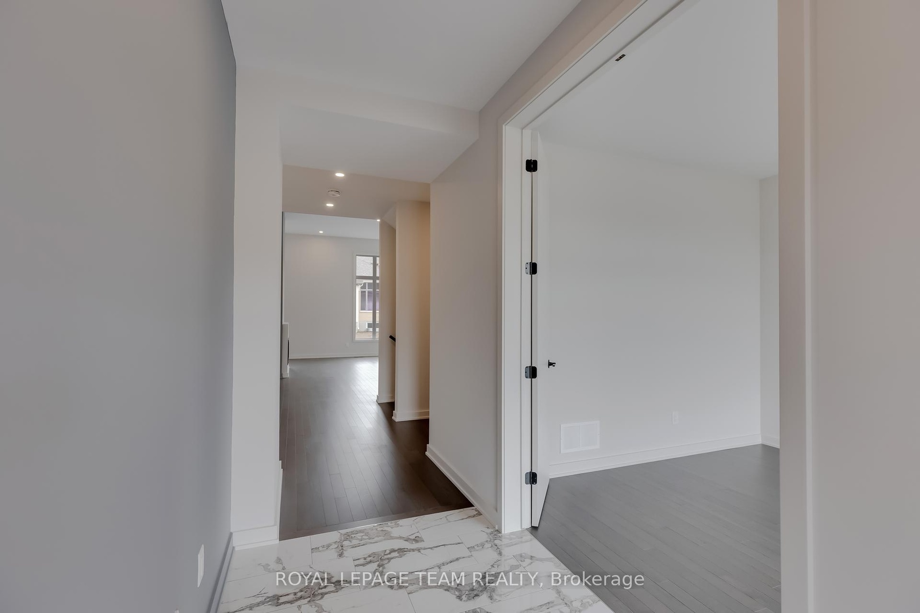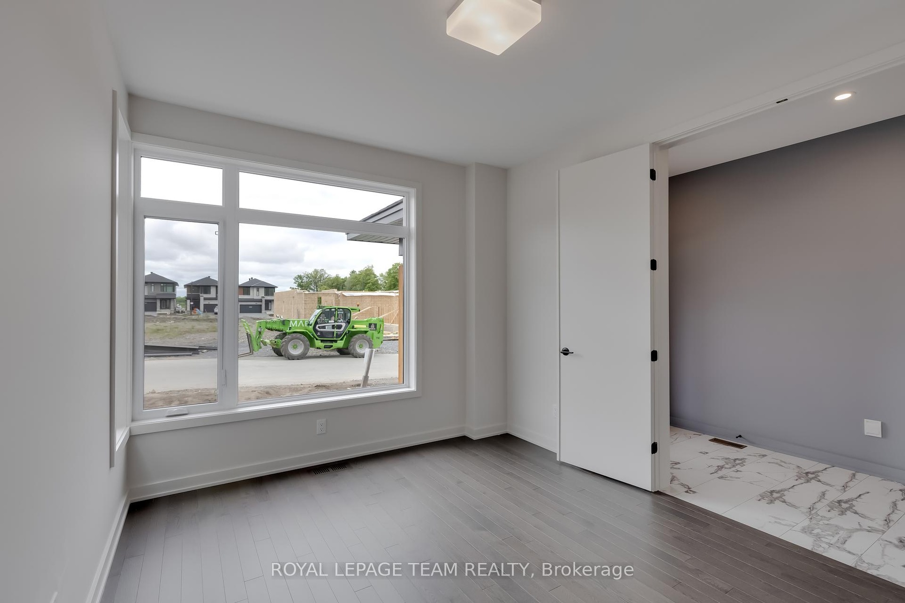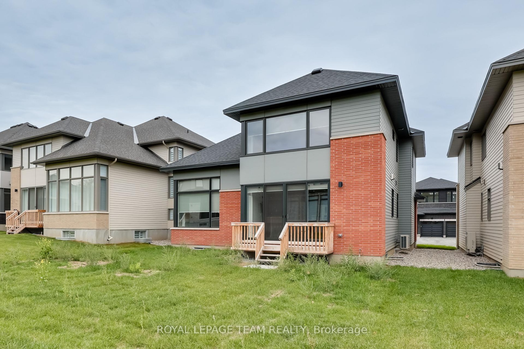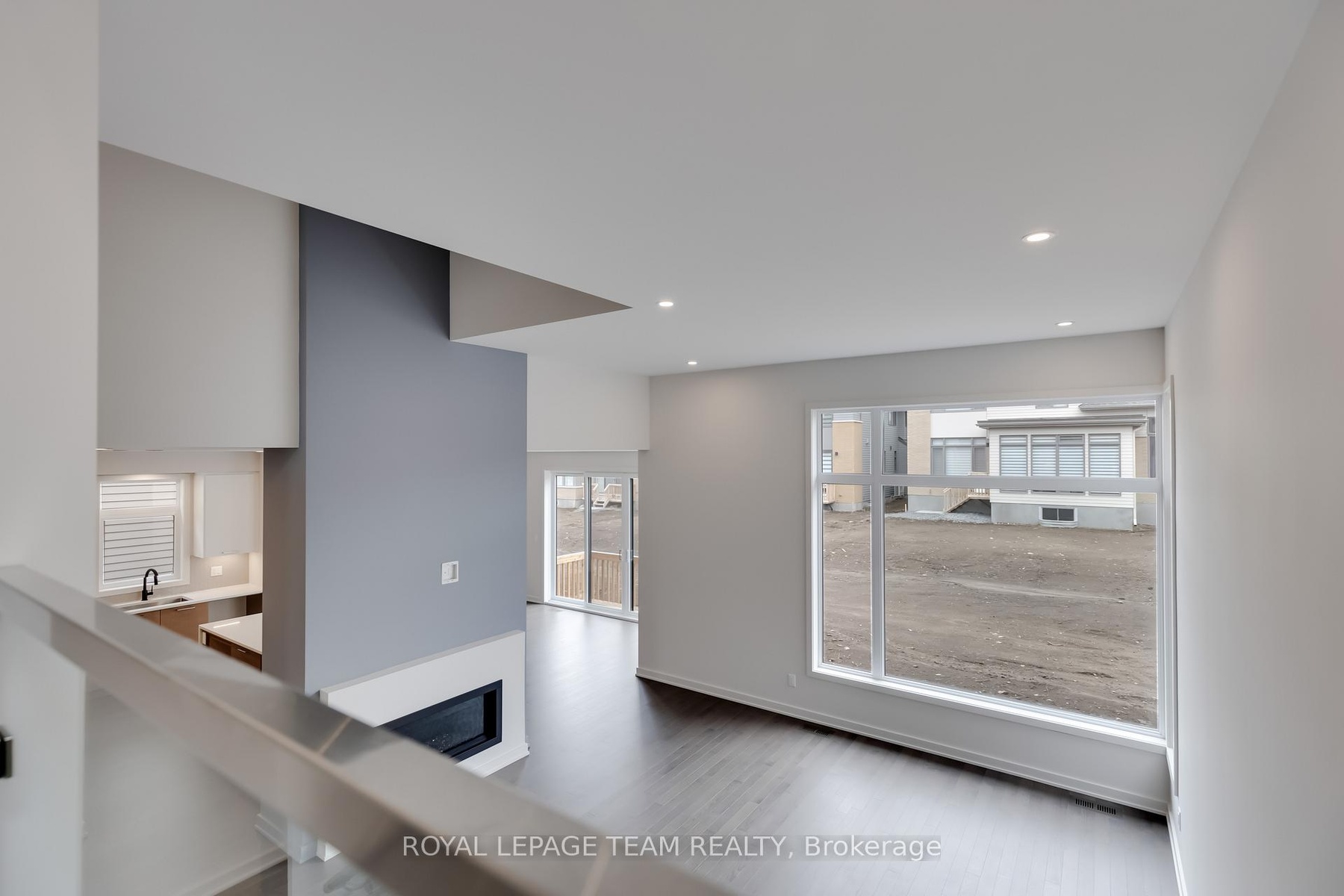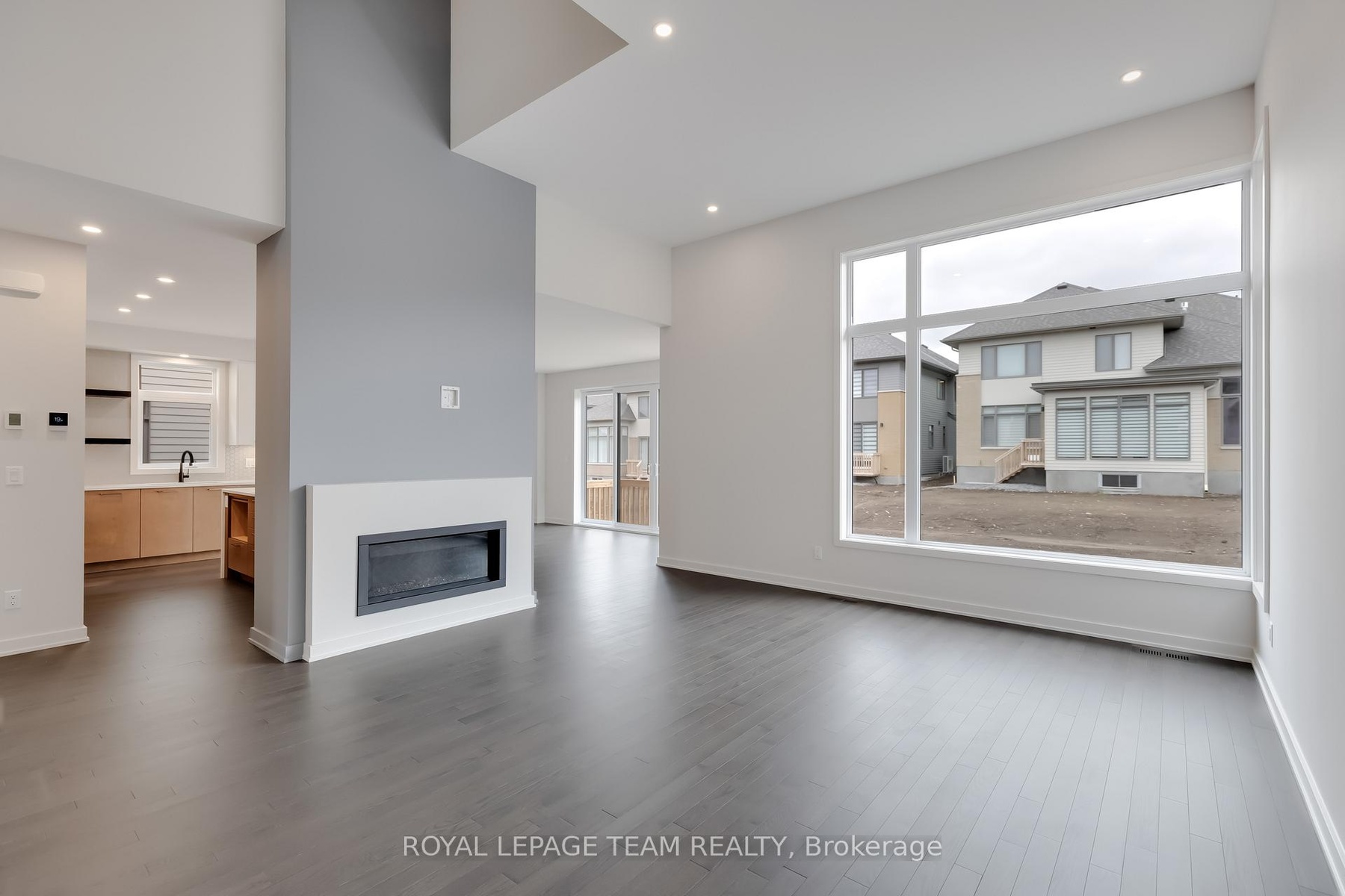 An architectural masterpiece in the prestigious Pond community of Kanata Lakes, this brand-new 4-bedroom residence by HN Homes seamlessly blends refined elegance, modern functionality, and exceptional craftsmanship. Set on a premium 44' lot with ideal east-west exposure, the home is filled with natural light from sunrise to sunset. The thoughtfully designed layout features tons of above-grade living space plus a finished basement, making it ideal for growing families. The main level showcases 9-foot smooth ceilings, wide-plank oak hardwood flooring, and large windows that amplify brightness and flow. The living room impresses with a soaring 12-foot ceiling and sleek linear gas fireplace, while a private den offers the perfect workspace or study zone. The gourmet kitchen includes a quartz waterfall island, full-height backsplash, custom cabinetry, and a walk-in pantry conveniently tucked between the kitchen and mudroom. A built-in coffee nook adds character and everyday functionality. The sunlit dining area connects seamlessly to the backyard through oversized four-panel patio doors - ideal for entertaining or quiet moments outdoors. Upstairs, the open-to-below hallway leads to a luxurious primary retreat with double doors, raised ceiling, transom windows, dual walk-in closets, and a spa-style 5-piece ensuite featuring an upgraded glass shower. One secondary bedroom enjoys direct access to the main bath, while the laundry room is enhanced with quartz counters, cabinets, and a sink. The finished basement offers a spacious family room and a 3-piece rough-in for future customization. With nearly $50K in builder upgrades - spot lights, capped fixtures, exterior lighting - this home is also energy-smart, with R60 attic insulation, a tankless water heater, and advanced environmental systems. Located near top schools, parks, and Kanata High Tech Park, this home truly delivers luxury, comfort, and lifestyle in one of Ottawa's most desirable communities.