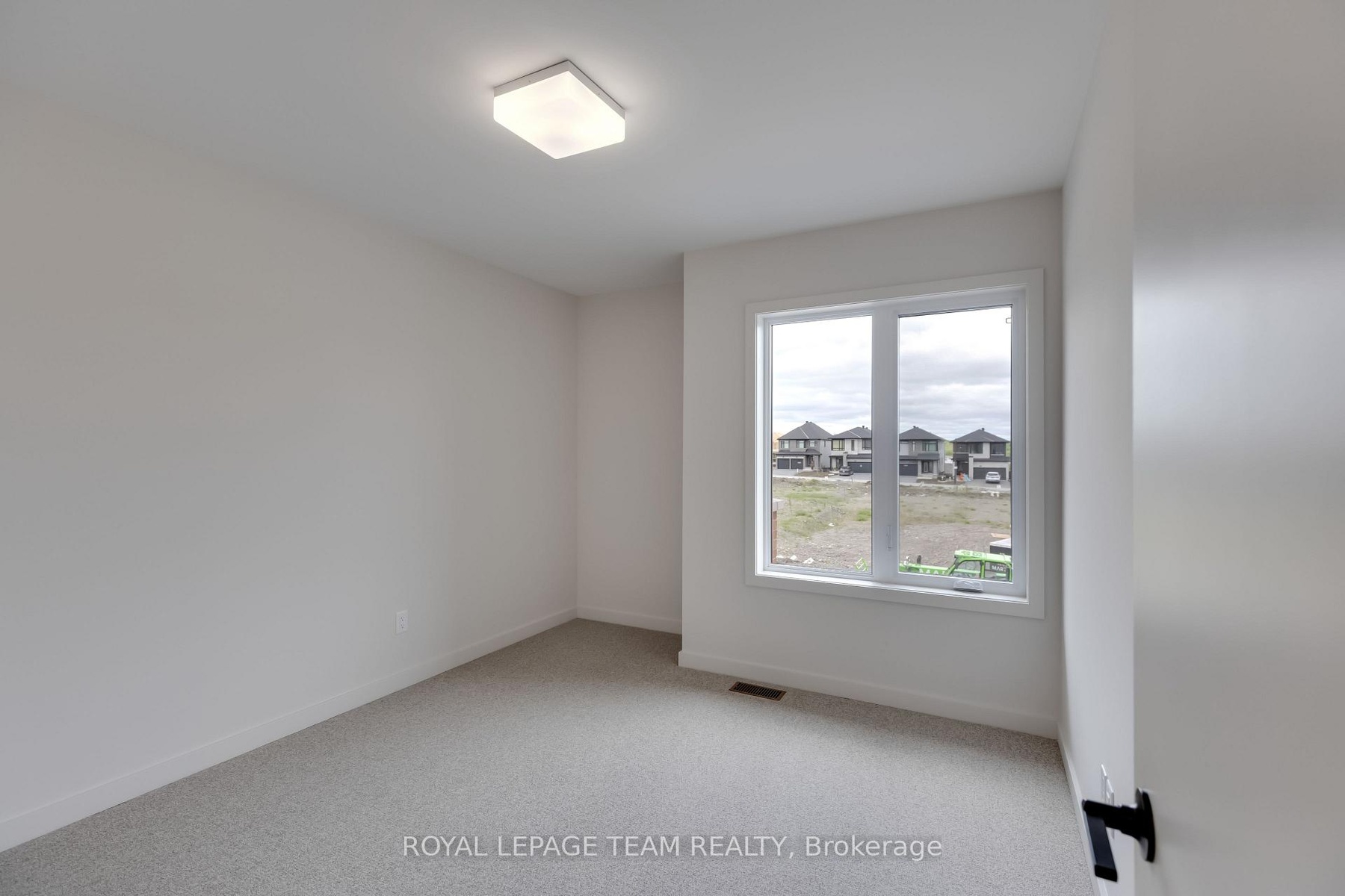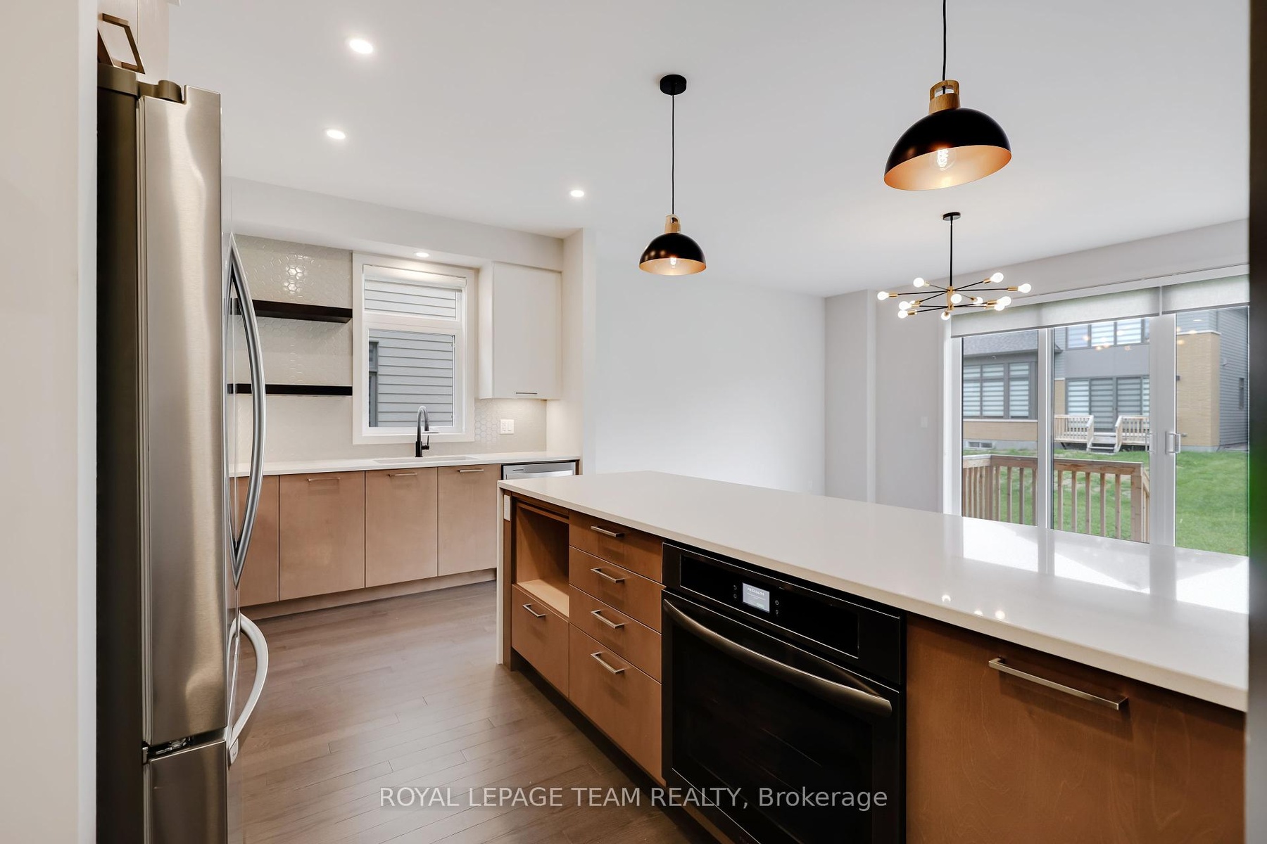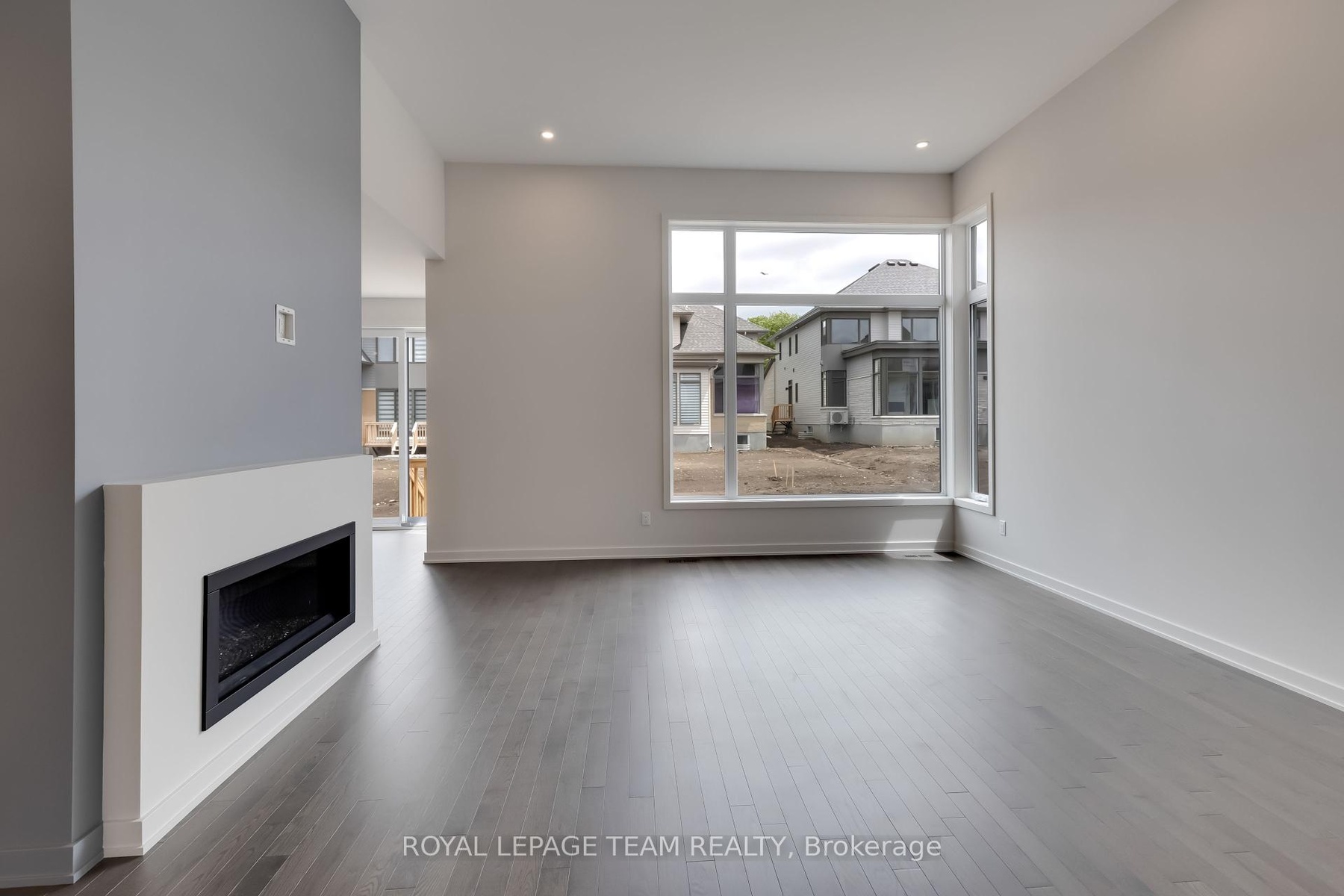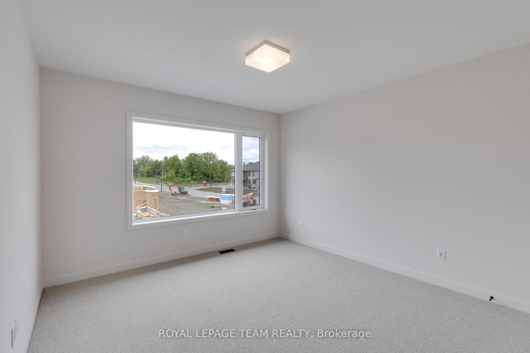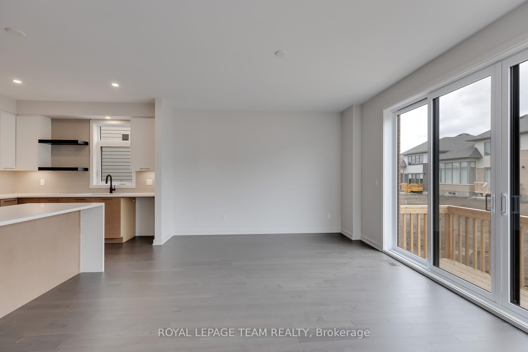 An architectural masterpiece in the prestigious Pond community of Kanata Lakes, this brand-new 4-bedroom residence by HN Homes seamlessly blends refined elegance, modern functionality, and exceptional craftsmanship. Set on a premium 44' lot with ideal east-west exposure, the home is filled with natural light from sunrise to sunset. The thoughtfully designed layout features tons of above-grade living space plus a finished basement, making it ideal for growing families. The main level showcases 9-foot smooth ceilings, wide-plank oak hardwood flooring, and large windows that amplify brightness and flow. The living room impresses with a soaring 12-foot ceiling and sleek linear gas fireplace, while a private den offers the perfect workspace or study zone. The gourmet kitchen includes a quartz waterfall island, full-height backsplash, custom cabinetry, and a walk-in pantry conveniently tucked between the kitchen and mudroom. A built-in coffee nook adds character and everyday functionality. The sunlit dining area connects seamlessly to the backyard through oversized four-panel patio doors - ideal for entertaining or quiet moments outdoors. Upstairs, the open-to-below hallway leads to a luxurious primary retreat with double doors, raised ceiling, transom windows, dual walk-in closets, and a spa-style 5-piece ensuite featuring an upgraded glass shower. One secondary bedroom enjoys direct access to the main bath, while the laundry room is enhanced with quartz counters, cabinets, and a sink. The finished basement offers a spacious family room and a 3-piece rough-in for future customization. With nearly $50K in builder upgrades - spot lights, capped fixtures, exterior lighting - this home is also energy-smart, with R60 attic insulation, a tankless water heater, and advanced environmental systems. Located near top schools, parks, and Kanata High Tech Park, this home truly delivers luxury, comfort, and lifestyle in one of Ottawa's most desirable communities.