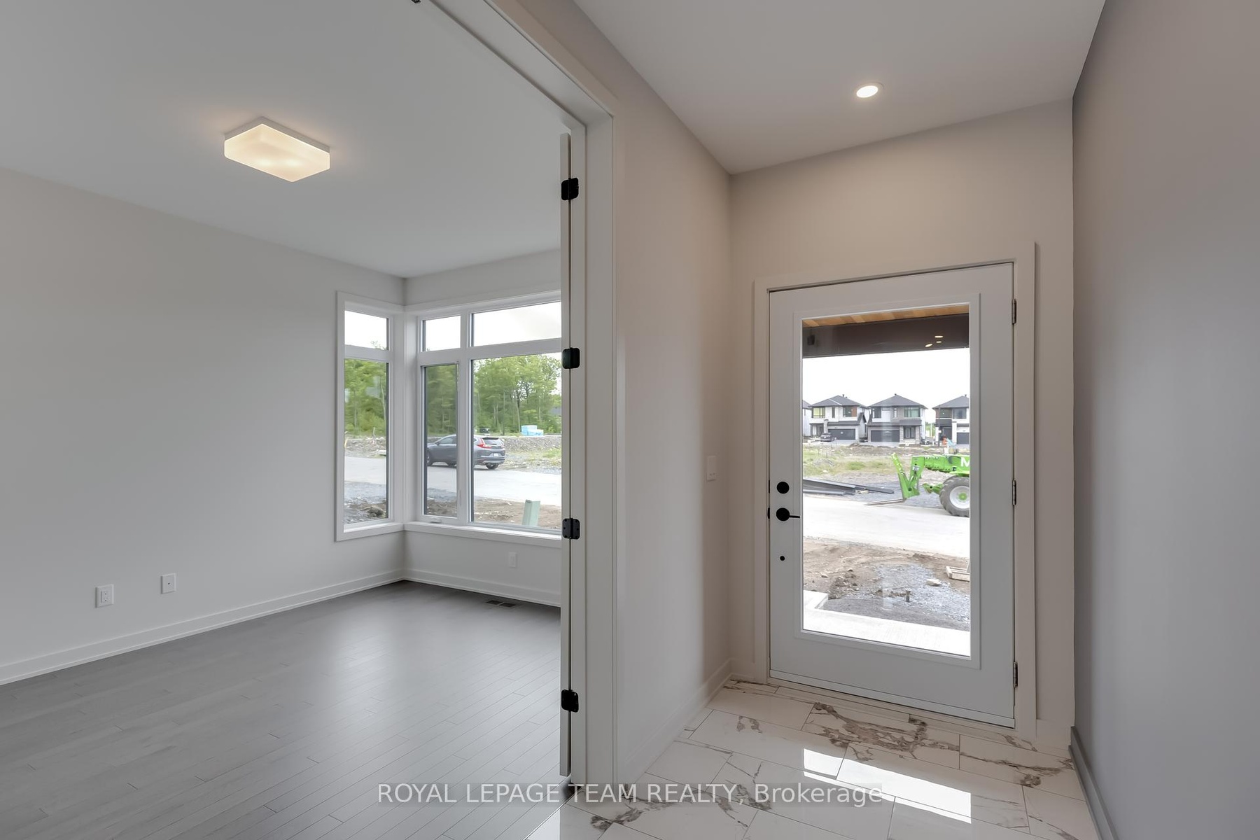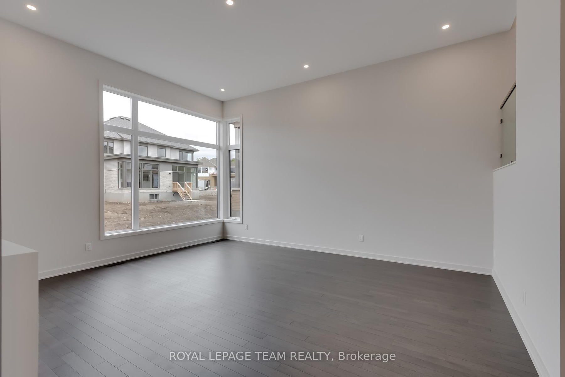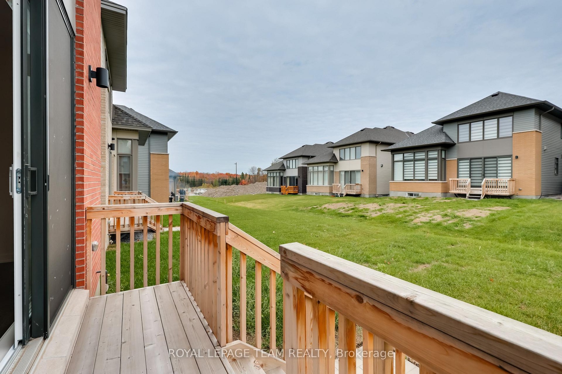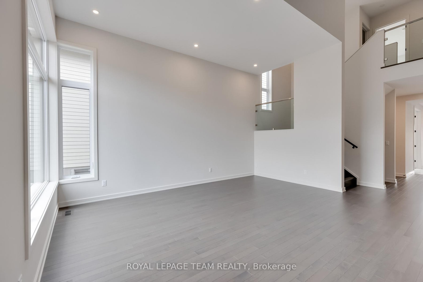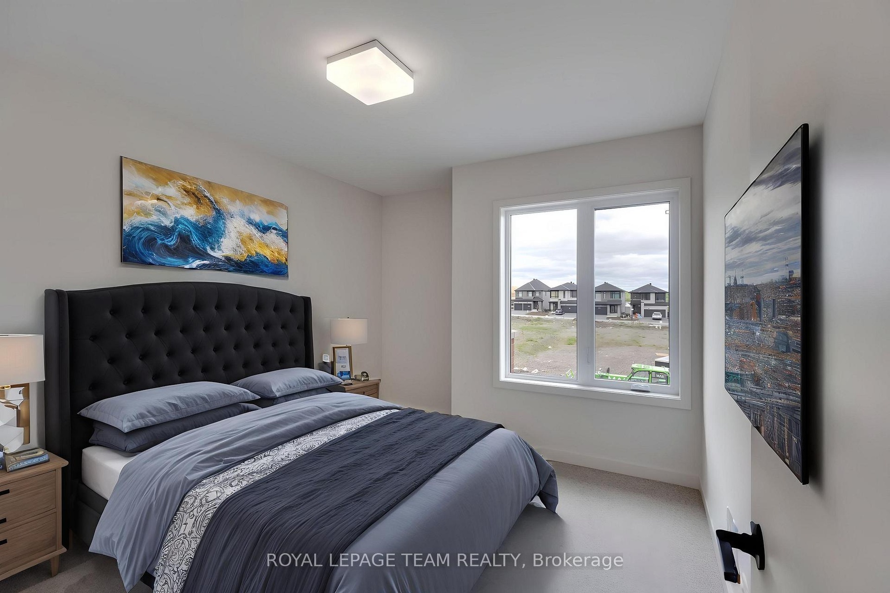 An architectural masterpiece in the prestigious Pond community of Kanata Lakes, this brand-new 4-bedroom residence by HN Homes seamlessly blends refined elegance, modern functionality, and exceptional craftsmanship. Set on a premium 44' lot with ideal east-west exposure, the home is filled with natural light from sunrise to sunset. The thoughtfully designed layout features tons of above-grade living space plus a finished basement, making it ideal for growing families. The main level showcases 9-foot smooth ceilings, wide-plank oak hardwood flooring, and large windows that amplify brightness and flow. The living room impresses with a soaring 12-foot ceiling and sleek linear gas fireplace, while a private den offers the perfect workspace or study zone. The gourmet kitchen includes a quartz waterfall island, full-height backsplash, custom cabinetry, and a walk-in pantry conveniently tucked between the kitchen and mudroom. A built-in coffee nook adds character and everyday functionality. The sunlit dining area connects seamlessly to the backyard through oversized four-panel patio doors - ideal for entertaining or quiet moments outdoors. Upstairs, the open-to-below hallway leads to a luxurious primary retreat with double doors, raised ceiling, transom windows, dual walk-in closets, and a spa-style 5-piece ensuite featuring an upgraded glass shower. One secondary bedroom enjoys direct access to the main bath, while the laundry room is enhanced with quartz counters, cabinets, and a sink. The finished basement offers a spacious family room and a 3-piece rough-in for future customization. With nearly $50K in builder upgrades - spot lights, capped fixtures, exterior lighting - this home is also energy-smart, with R60 attic insulation, a tankless water heater, and advanced environmental systems. Located near top schools, parks, and Kanata High Tech Park, this home truly delivers luxury, comfort, and lifestyle in one of Ottawa's most desirable communities.