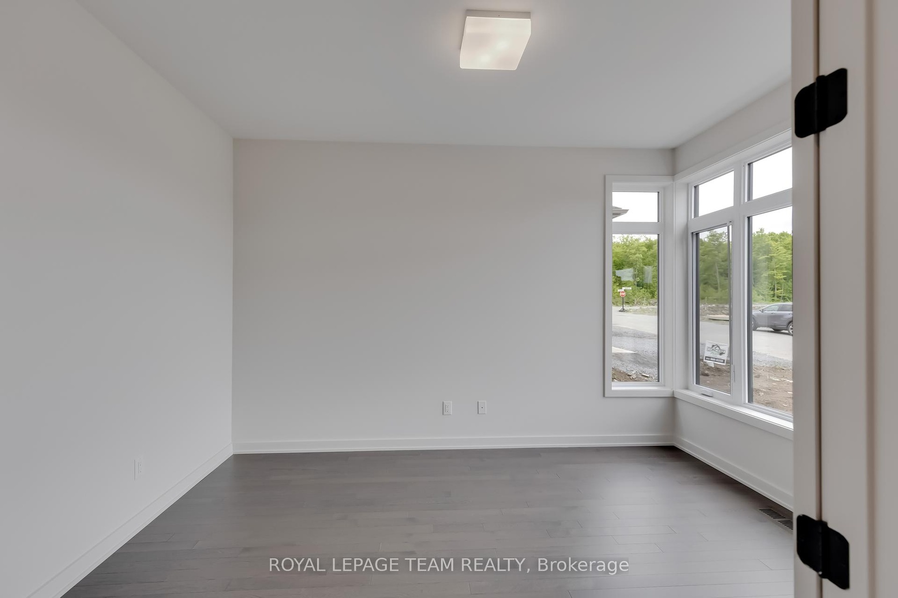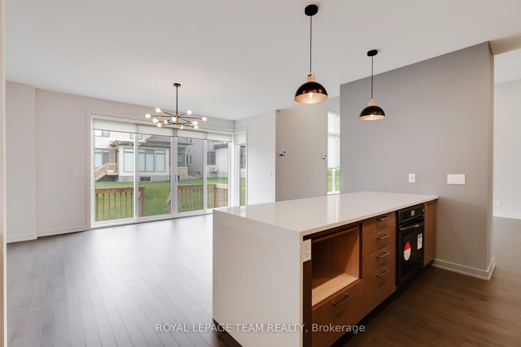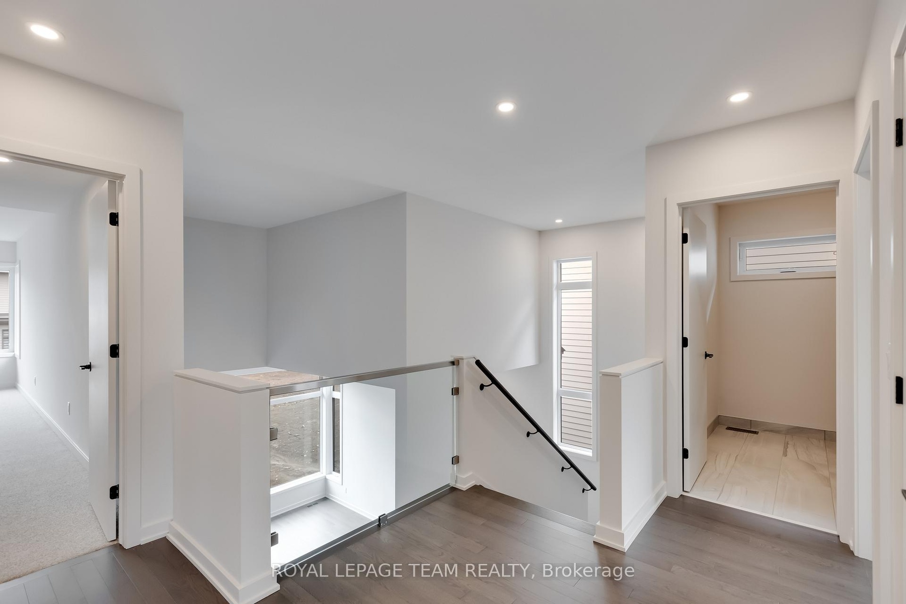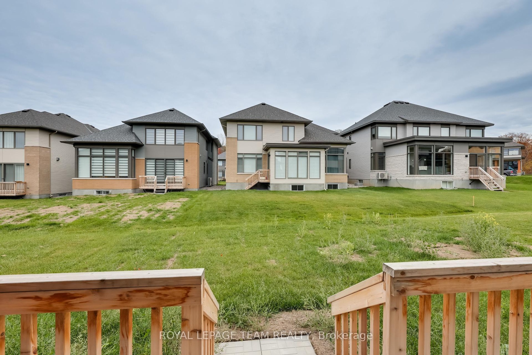An architectural masterpiece in the prestigious Pond community of Kanata Lakes, this brand-new 4-bedroom residence by HN Homes seamlessly blends refined elegance, modern functionality, and exceptional craftsmanship. Set on a premium 44' lot with ideal east-west exposure, the home is filled with natural light from sunrise to sunset. The thoughtfully designed layout features tons of above-grade living space plus a finished basement, making it ideal for growing families. The main level showcases 9-foot smooth ceilings, wide-plank oak hardwood flooring, and large windows that amplify brightness and flow. The living room impresses with a soaring 12-foot ceiling and sleek linear gas fireplace, while a private den offers the perfect workspace or study zone. The gourmet kitchen includes a quartz waterfall island, full-height backsplash, custom cabinetry, and a walk-in pantry conveniently tucked between the kitchen and mudroom. A built-in coffee nook adds character and everyday functionality. The sunlit dining area connects seamlessly to the backyard through oversized four-panel patio doors - ideal for entertaining or quiet moments outdoors. Upstairs, the open-to-below hallway leads to a luxurious primary retreat with double doors, raised ceiling, transom windows, dual walk-in closets, and a spa-style 5-piece ensuite featuring an upgraded glass shower. One secondary bedroom enjoys direct access to the main bath, while the laundry room is enhanced with quartz counters, cabinets, and a sink. The finished basement offers a spacious family room and a 3-piece rough-in for future customization. With nearly $50K in builder upgrades - spot lights, capped fixtures, exterior lighting - this home is also energy-smart, with R60 attic insulation, a tankless water heater, and advanced environmental systems. Located near top schools, parks, and Kanata High Tech Park, this home truly delivers luxury, comfort, and lifestyle in one of Ottawa's most desirable communities.