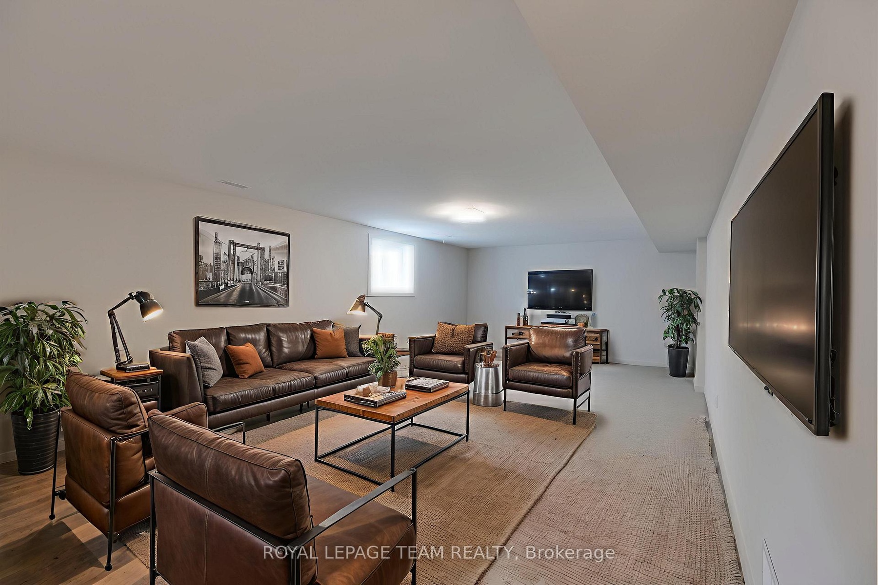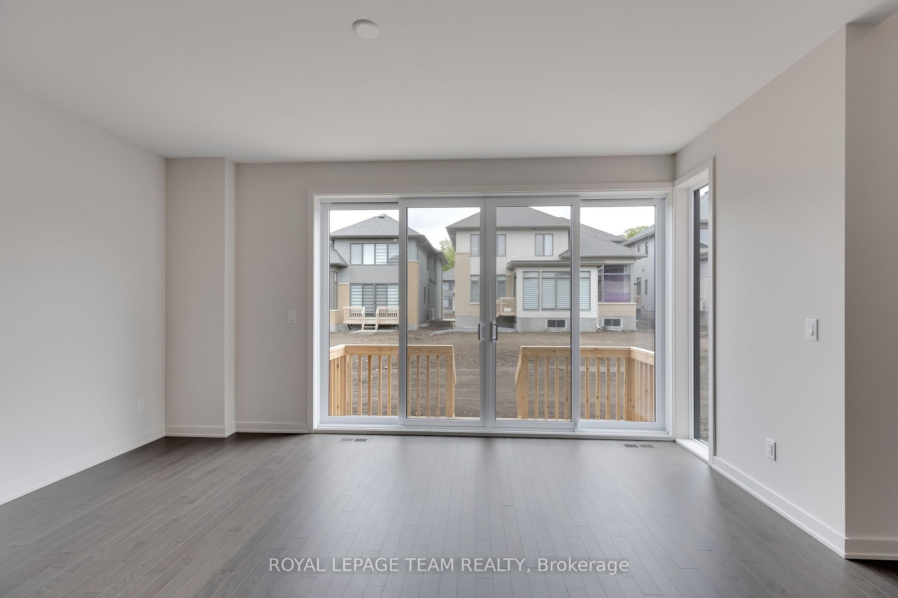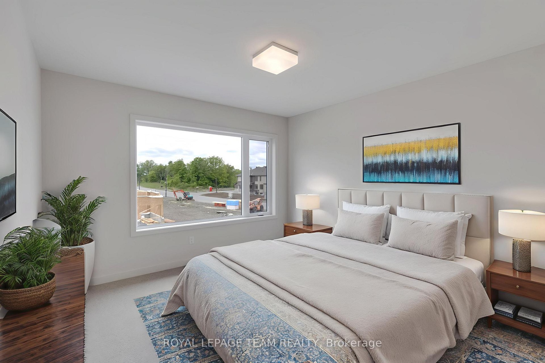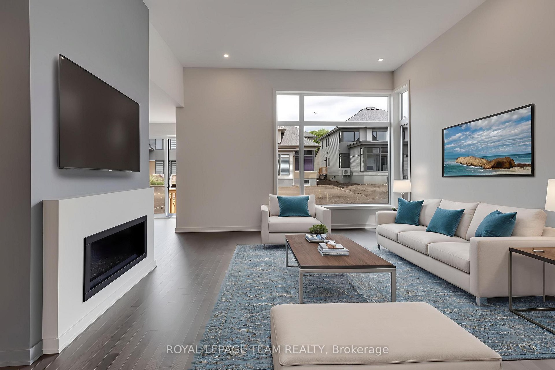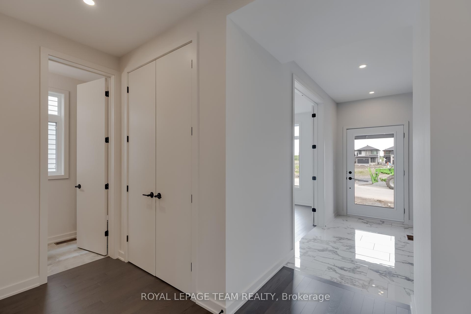 An architectural masterpiece in the prestigious Pond community of Kanata Lakes, this brand-new 4-bedroom residence by HN Homes seamlessly blends refined elegance, modern functionality, and exceptional craftsmanship. Set on a premium 44' lot with ideal east-west exposure, the home is filled with natural light from sunrise to sunset. The thoughtfully designed layout features tons of above-grade living space plus a finished basement, making it ideal for growing families. The main level showcases 9-foot smooth ceilings, wide-plank oak hardwood flooring, and large windows that amplify brightness and flow. The living room impresses with a soaring 12-foot ceiling and sleek linear gas fireplace, while a private den offers the perfect workspace or study zone. The gourmet kitchen includes a quartz waterfall island, full-height backsplash, custom cabinetry, and a walk-in pantry conveniently tucked between the kitchen and mudroom. A built-in coffee nook adds character and everyday functionality. The sunlit dining area connects seamlessly to the backyard through oversized four-panel patio doors - ideal for entertaining or quiet moments outdoors. Upstairs, the open-to-below hallway leads to a luxurious primary retreat with double doors, raised ceiling, transom windows, dual walk-in closets, and a spa-style 5-piece ensuite featuring an upgraded glass shower. One secondary bedroom enjoys direct access to the main bath, while the laundry room is enhanced with quartz counters, cabinets, and a sink. The finished basement offers a spacious family room and a 3-piece rough-in for future customization. With nearly $50K in builder upgrades - spot lights, capped fixtures, exterior lighting - this home is also energy-smart, with R60 attic insulation, a tankless water heater, and advanced environmental systems. Located near top schools, parks, and Kanata High Tech Park, this home truly delivers luxury, comfort, and lifestyle in one of Ottawa's most desirable communities.
