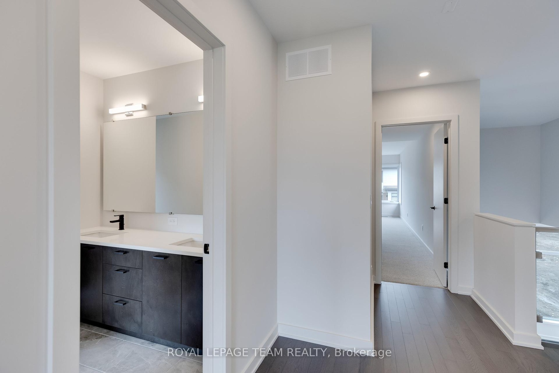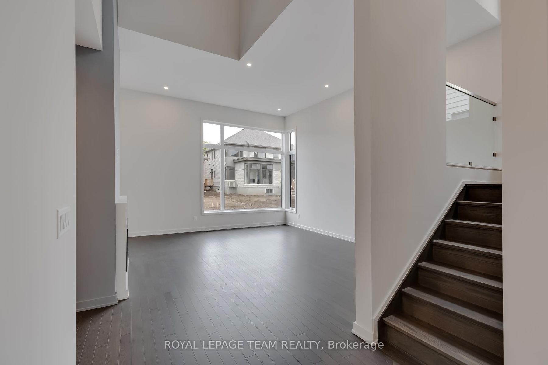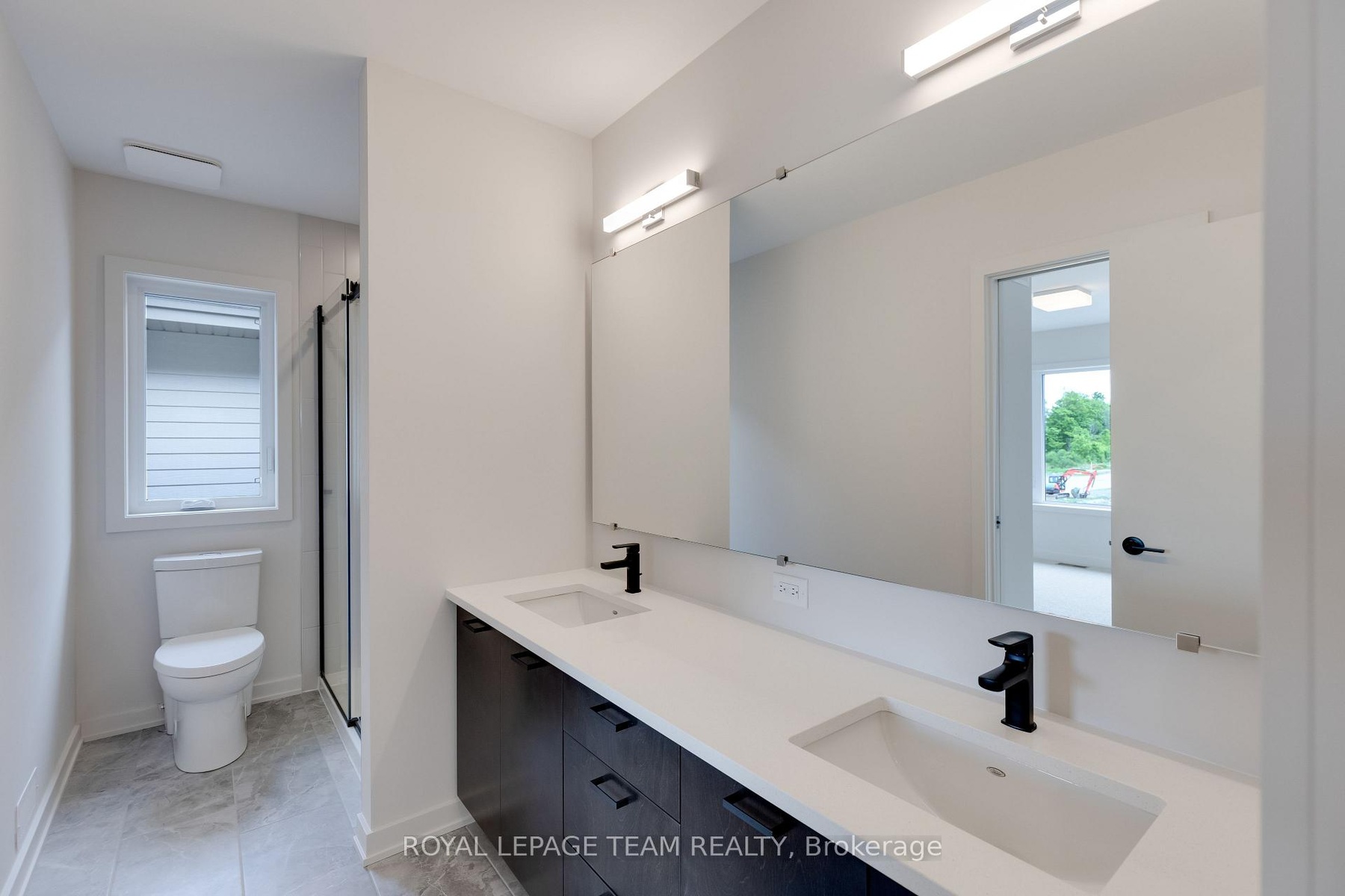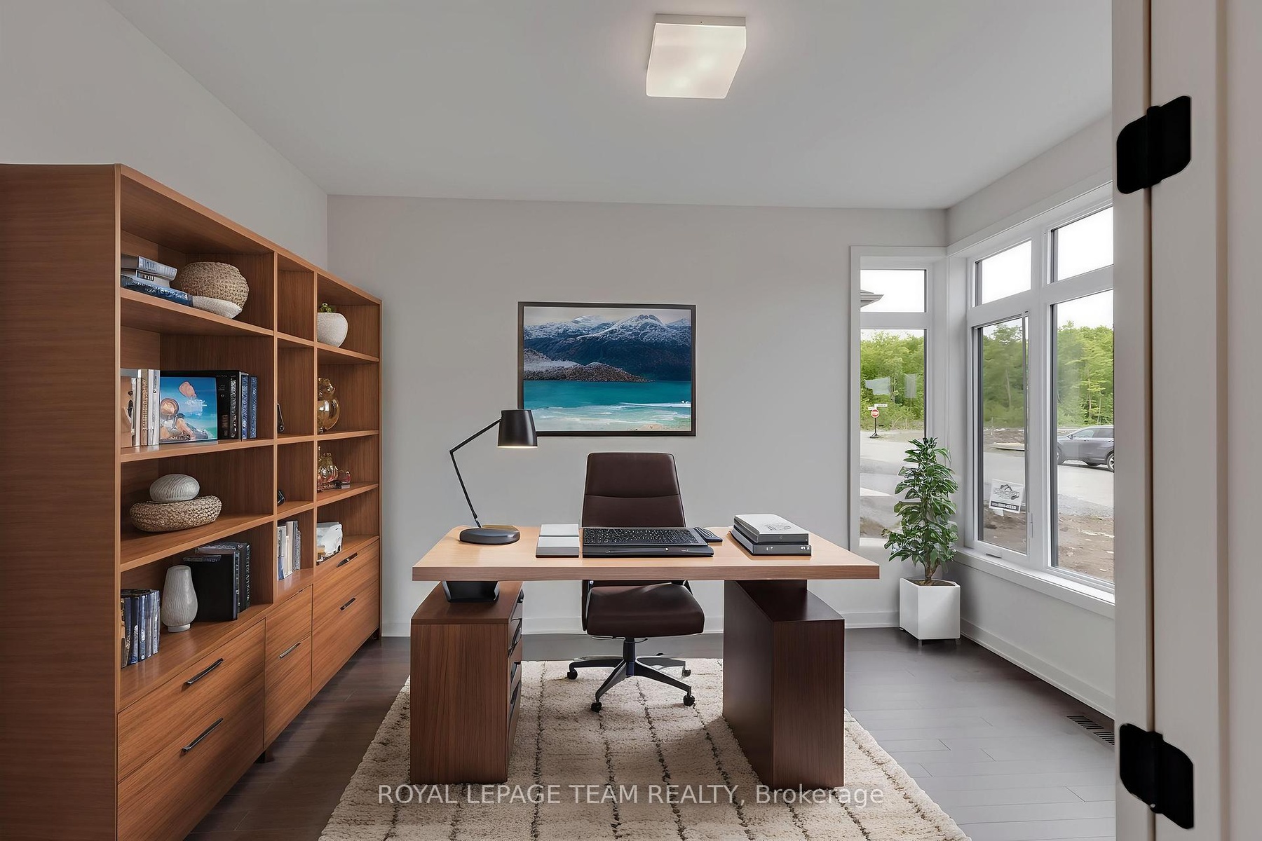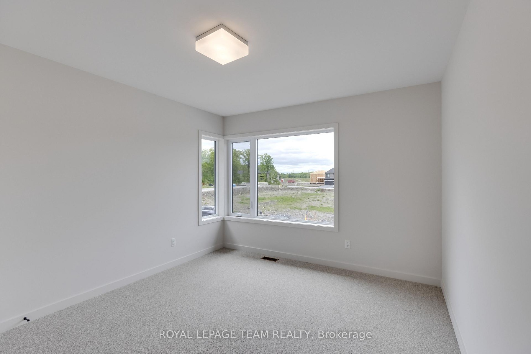 An architectural masterpiece in the prestigious Pond community of Kanata Lakes, this brand-new 4-bedroom residence by HN Homes seamlessly blends refined elegance, modern functionality, and exceptional craftsmanship. Set on a premium 44' lot with ideal east-west exposure, the home is filled with natural light from sunrise to sunset. The thoughtfully designed layout features tons of above-grade living space plus a finished basement, making it ideal for growing families. The main level showcases 9-foot smooth ceilings, wide-plank oak hardwood flooring, and large windows that amplify brightness and flow. The living room impresses with a soaring 12-foot ceiling and sleek linear gas fireplace, while a private den offers the perfect workspace or study zone. The gourmet kitchen includes a quartz waterfall island, full-height backsplash, custom cabinetry, and a walk-in pantry conveniently tucked between the kitchen and mudroom. A built-in coffee nook adds character and everyday functionality. The sunlit dining area connects seamlessly to the backyard through oversized four-panel patio doors - ideal for entertaining or quiet moments outdoors. Upstairs, the open-to-below hallway leads to a luxurious primary retreat with double doors, raised ceiling, transom windows, dual walk-in closets, and a spa-style 5-piece ensuite featuring an upgraded glass shower. One secondary bedroom enjoys direct access to the main bath, while the laundry room is enhanced with quartz counters, cabinets, and a sink. The finished basement offers a spacious family room and a 3-piece rough-in for future customization. With nearly $50K in builder upgrades - spot lights, capped fixtures, exterior lighting - this home is also energy-smart, with R60 attic insulation, a tankless water heater, and advanced environmental systems. Located near top schools, parks, and Kanata High Tech Park, this home truly delivers luxury, comfort, and lifestyle in one of Ottawa's most desirable communities.