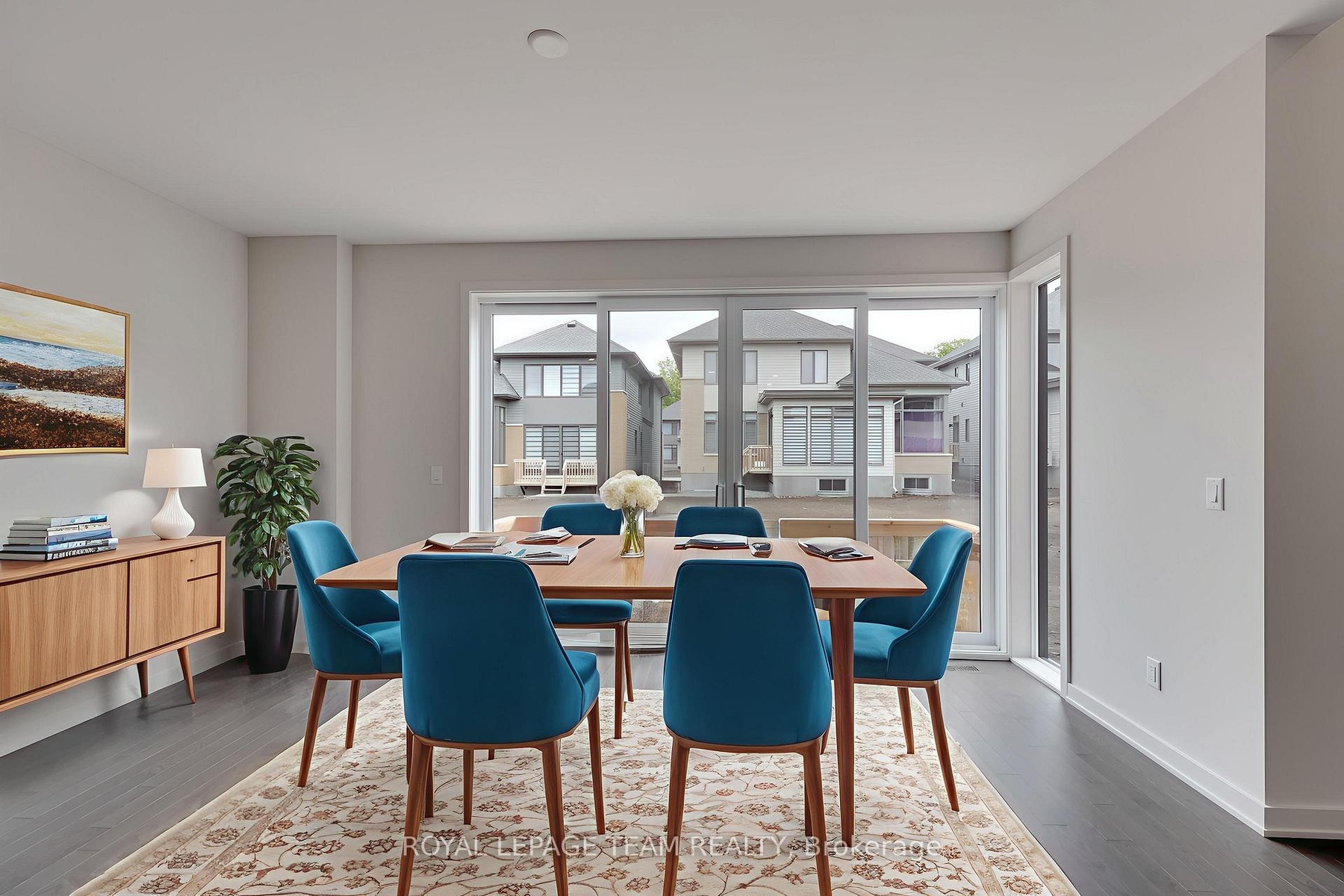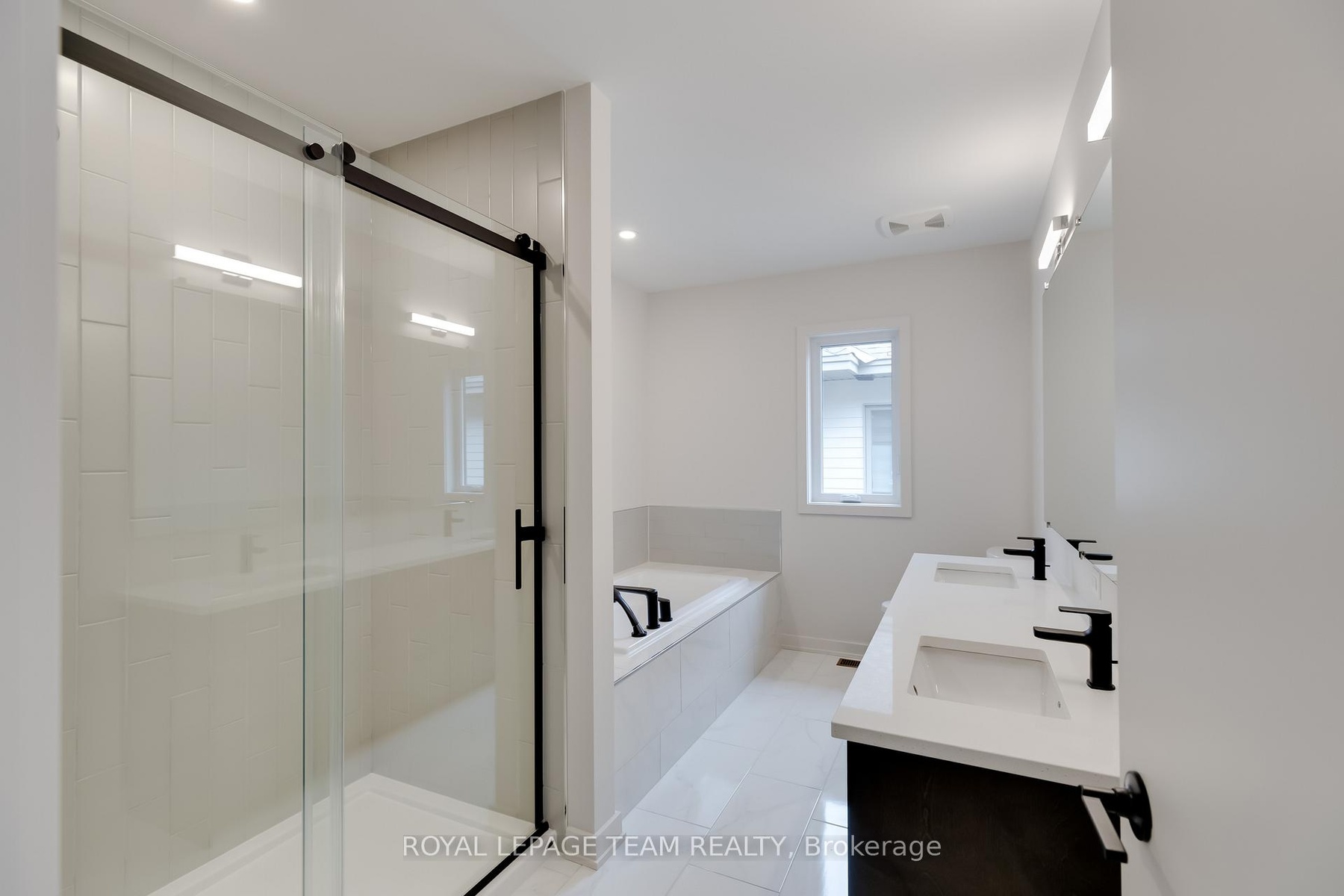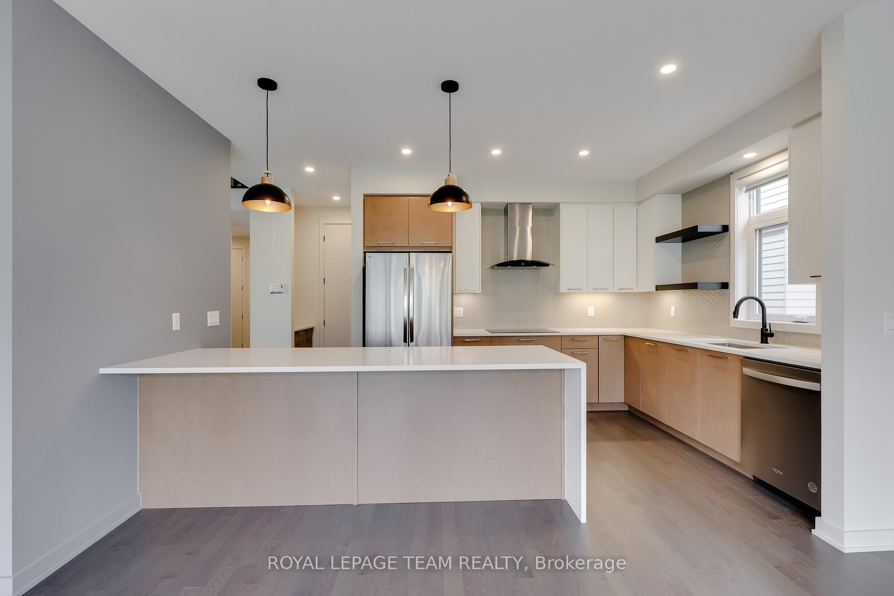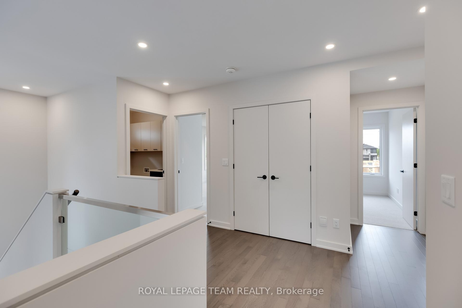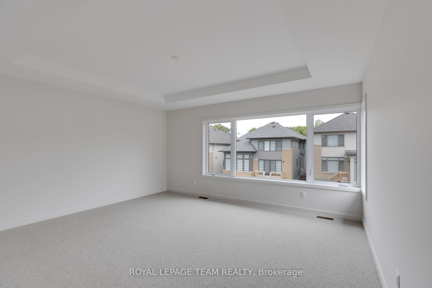 An architectural masterpiece in the prestigious Pond community of Kanata Lakes, this brand-new 4-bedroom residence by HN Homes seamlessly blends refined elegance, modern functionality, and exceptional craftsmanship. Set on a premium 44' lot with ideal east-west exposure, the home is filled with natural light from sunrise to sunset. The thoughtfully designed layout features tons of above-grade living space plus a finished basement, making it ideal for growing families. The main level showcases 9-foot smooth ceilings, wide-plank oak hardwood flooring, and large windows that amplify brightness and flow. The living room impresses with a soaring 12-foot ceiling and sleek linear gas fireplace, while a private den offers the perfect workspace or study zone. The gourmet kitchen includes a quartz waterfall island, full-height backsplash, custom cabinetry, and a walk-in pantry conveniently tucked between the kitchen and mudroom. A built-in coffee nook adds character and everyday functionality. The sunlit dining area connects seamlessly to the backyard through oversized four-panel patio doors - ideal for entertaining or quiet moments outdoors. Upstairs, the open-to-below hallway leads to a luxurious primary retreat with double doors, raised ceiling, transom windows, dual walk-in closets, and a spa-style 5-piece ensuite featuring an upgraded glass shower. One secondary bedroom enjoys direct access to the main bath, while the laundry room is enhanced with quartz counters, cabinets, and a sink. The finished basement offers a spacious family room and a 3-piece rough-in for future customization. With nearly $50K in builder upgrades - spot lights, capped fixtures, exterior lighting - this home is also energy-smart, with R60 attic insulation, a tankless water heater, and advanced environmental systems. Located near top schools, parks, and Kanata High Tech Park, this home truly delivers luxury, comfort, and lifestyle in one of Ottawa's most desirable communities.