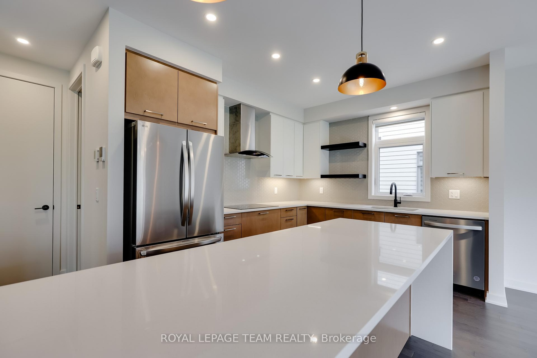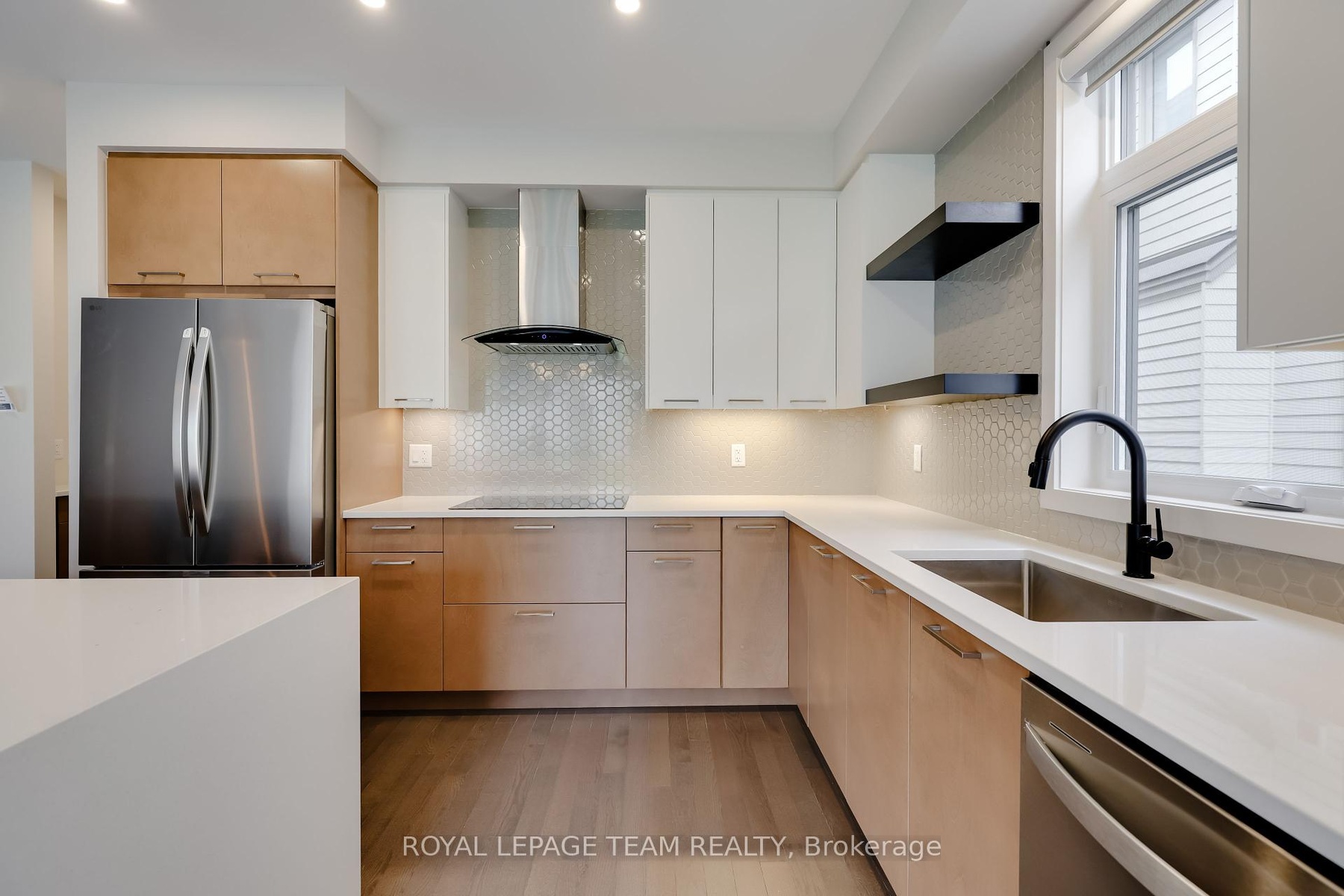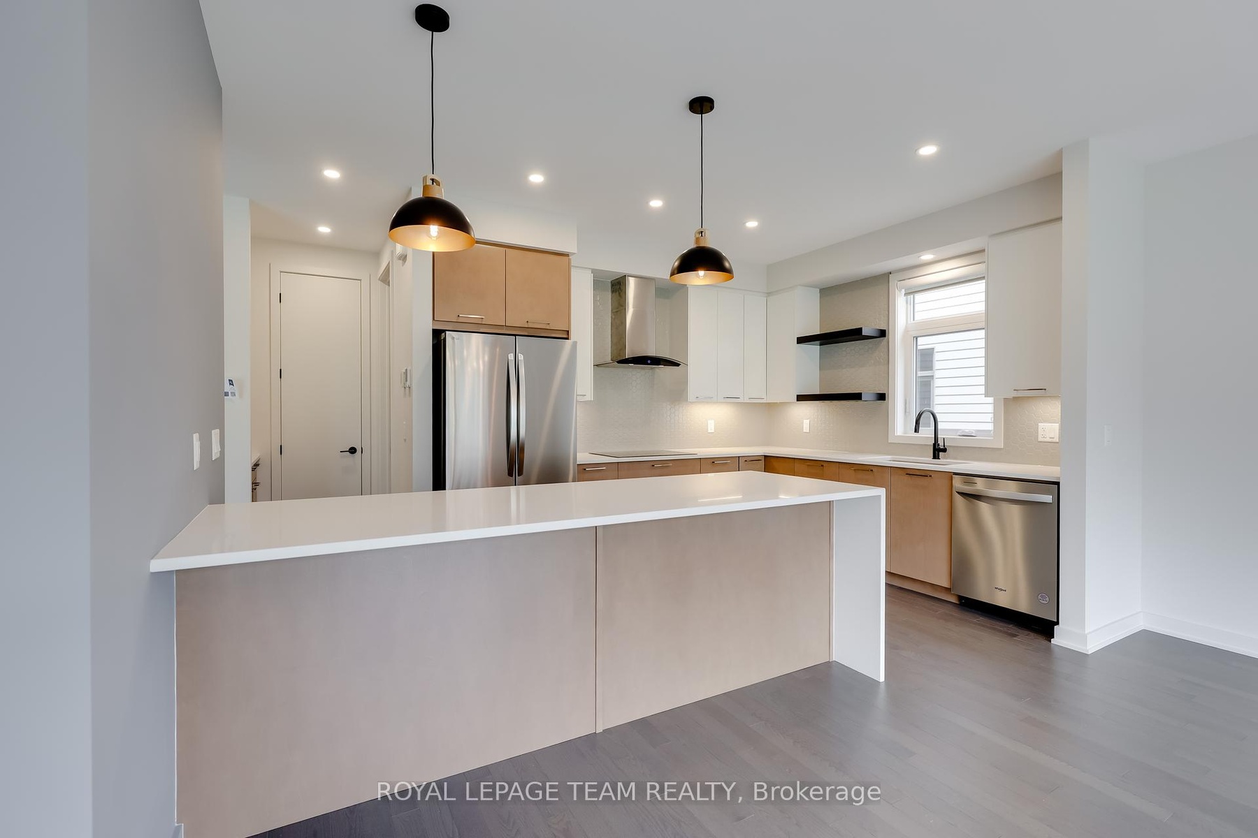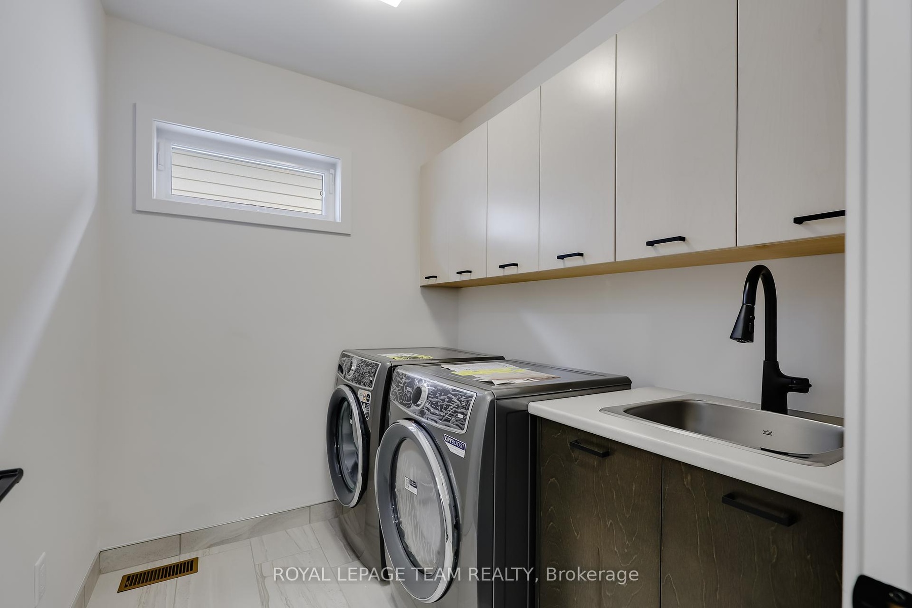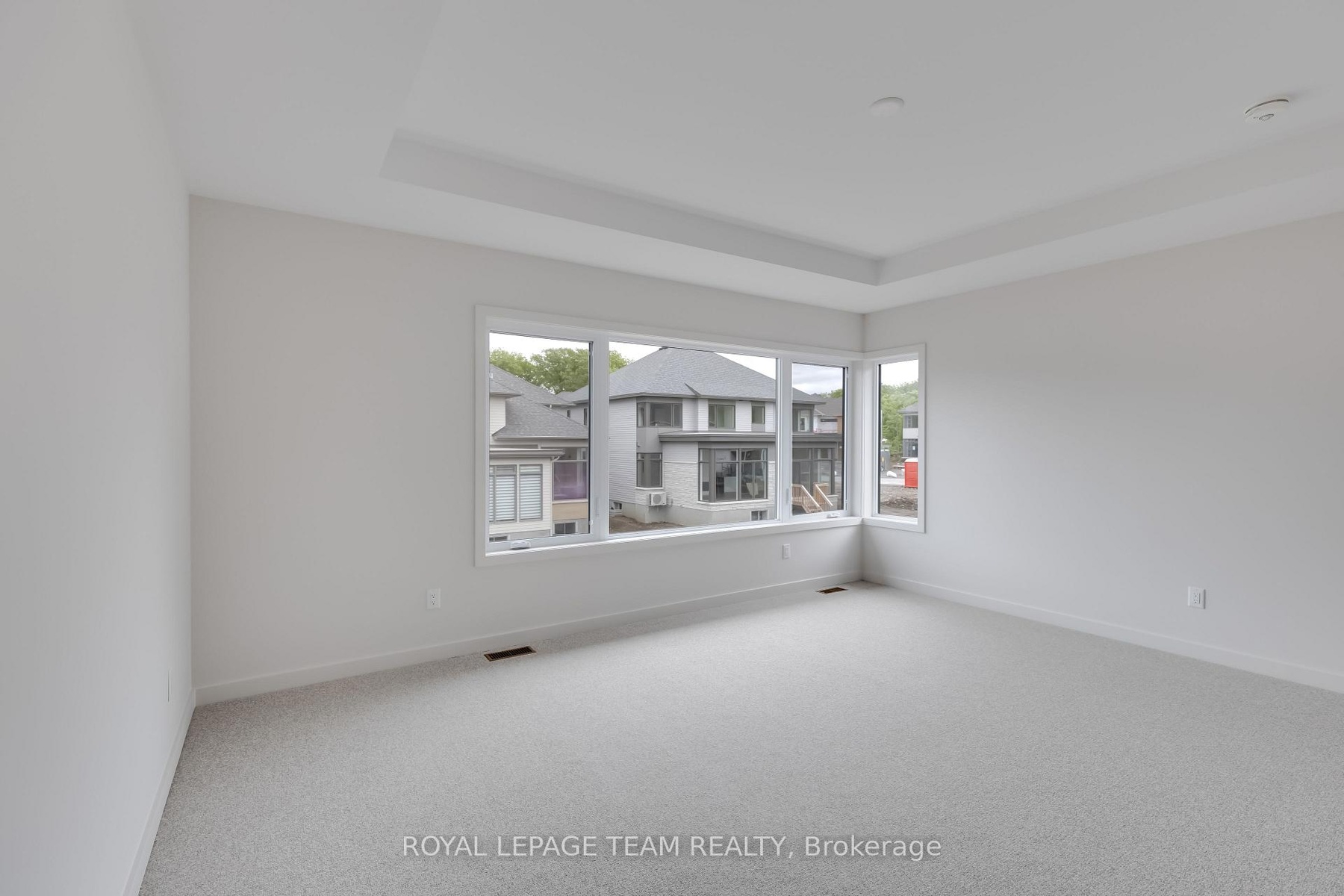 An architectural masterpiece in the prestigious Pond community of Kanata Lakes, this brand-new 4-bedroom residence by HN Homes seamlessly blends refined elegance, modern functionality, and exceptional craftsmanship. Set on a premium 44' lot with ideal east-west exposure, the home is filled with natural light from sunrise to sunset. The thoughtfully designed layout features tons of above-grade living space plus a finished basement, making it ideal for growing families. The main level showcases 9-foot smooth ceilings, wide-plank oak hardwood flooring, and large windows that amplify brightness and flow. The living room impresses with a soaring 12-foot ceiling and sleek linear gas fireplace, while a private den offers the perfect workspace or study zone. The gourmet kitchen includes a quartz waterfall island, full-height backsplash, custom cabinetry, and a walk-in pantry conveniently tucked between the kitchen and mudroom. A built-in coffee nook adds character and everyday functionality. The sunlit dining area connects seamlessly to the backyard through oversized four-panel patio doors - ideal for entertaining or quiet moments outdoors. Upstairs, the open-to-below hallway leads to a luxurious primary retreat with double doors, raised ceiling, transom windows, dual walk-in closets, and a spa-style 5-piece ensuite featuring an upgraded glass shower. One secondary bedroom enjoys direct access to the main bath, while the laundry room is enhanced with quartz counters, cabinets, and a sink. The finished basement offers a spacious family room and a 3-piece rough-in for future customization. With nearly $50K in builder upgrades - spot lights, capped fixtures, exterior lighting - this home is also energy-smart, with R60 attic insulation, a tankless water heater, and advanced environmental systems. Located near top schools, parks, and Kanata High Tech Park, this home truly delivers luxury, comfort, and lifestyle in one of Ottawa's most desirable communities.