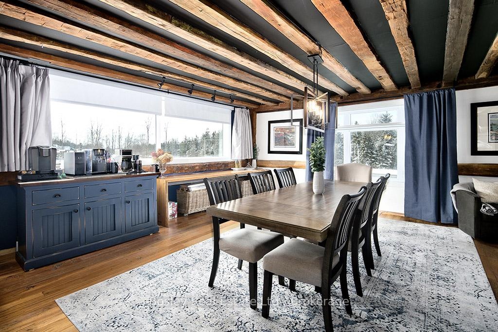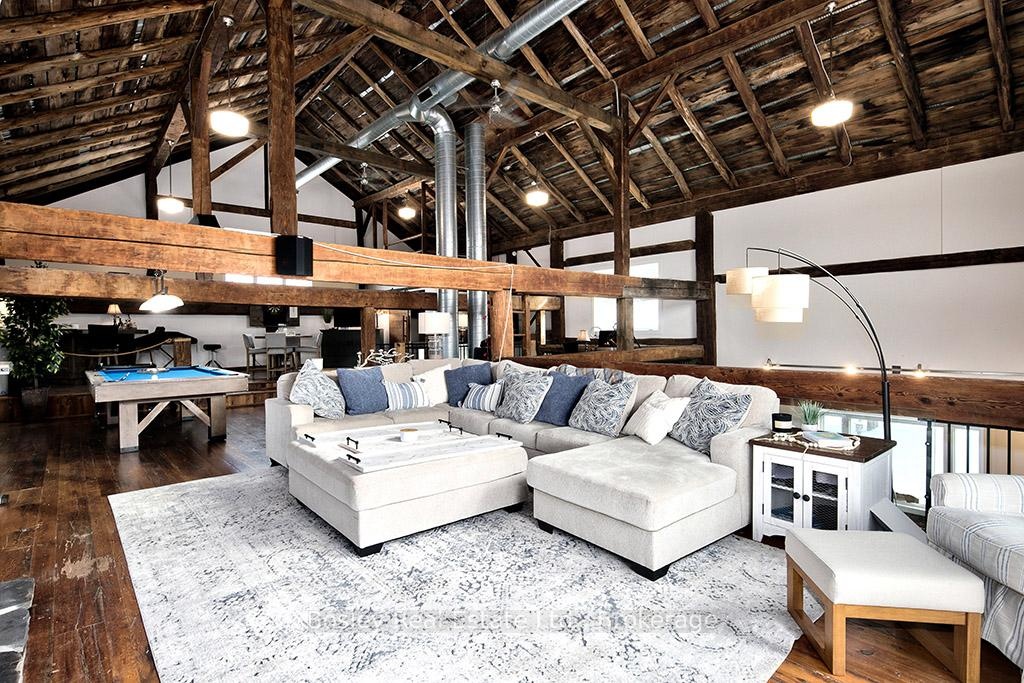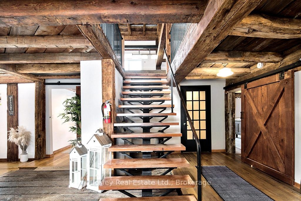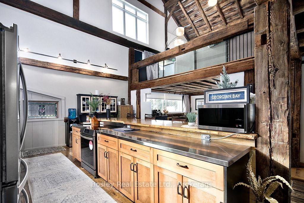 Iconic Post-and-Beam Commercial Barn Conversion in South Georgian Bay: 6,200 sq ft | C4-86 Zoning | 2.1 Acres | $300k+ recent upgrades. Positioned along Highway 26 just minutes from Thornbury and at the edge of The Blue Mountains, this extraordinary 6,200 sq ft post-and-beam commercial barn conversion offers the rare ability to combine work and lifestyle in one destination-worthy location. Set on approximately 2 acres of prime real estate with excellent highway exposure, the property is zoned C4-86, supporting a wide range of uses-including retail, gallery, workshop, professional offices, and accessory residential. Whether you're an entrepreneur, artisan, creative professional, or service-based business, this flexible space is tailor-made for live/work use. Step inside and experience dramatic soaring ceilings, exposed timber-frame architecture, and a layout designed for both productivity and comfort. The current floor plan includes 3 bedrooms, 2.5 baths, and multiple multifunctional zones ideal for living, working, entertaining, or studio use. Key Features:Zoned C4-86: Allows for accessory residential + commercial (retail, studio, clinic, office, and more) Recent $300K in upgrades including new exterior paint, geothermal HVAC, 200-amp electrical, fibre internet, EV charging. Multiple entrances for privacy and business separation. Expandable parking, monument signage, and high visibility on Highway 26. Private well and septic system. Surrounded by major growth (Lora Bay Phase 4B, Parkbridge Meaford Community) Whether you envision a luxury showroom, wellness clinic, creative studio, art gallery, or simply a stylish home base with room to run your business, this architectural gem offers unmatched flexibility in a growing regional market.