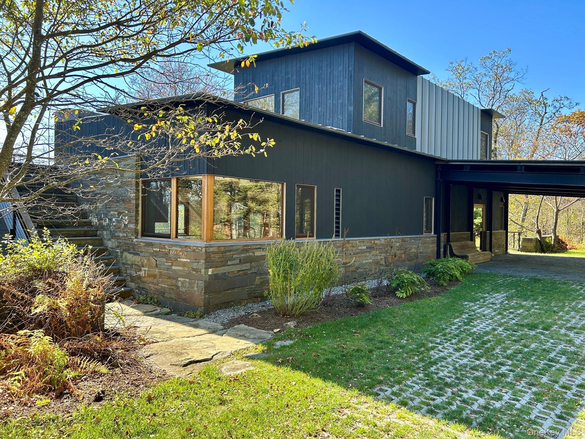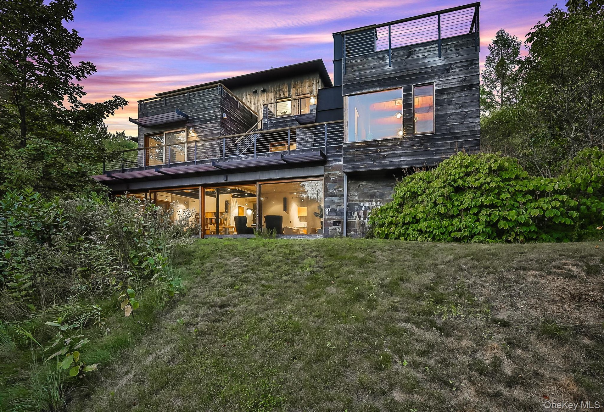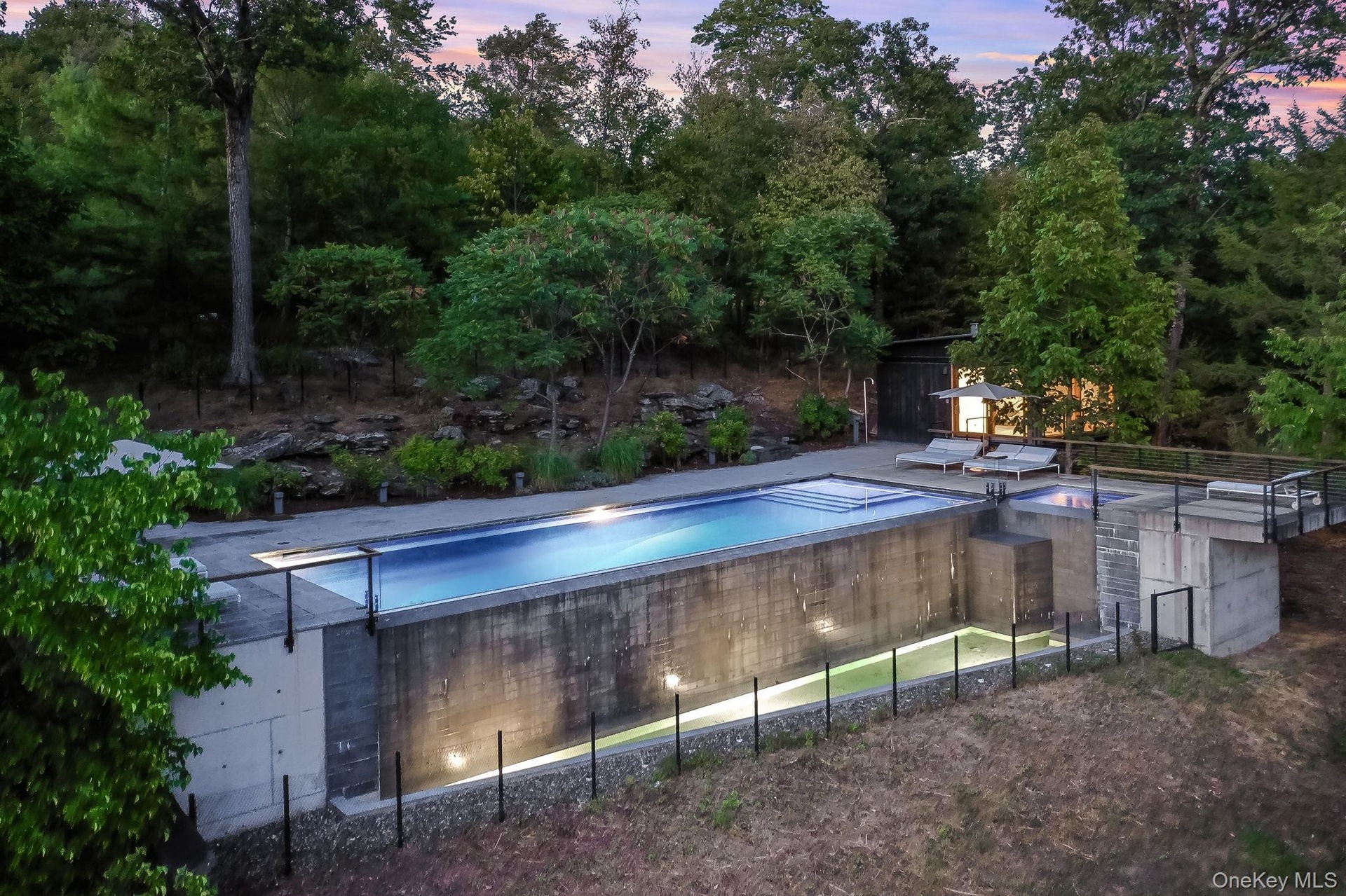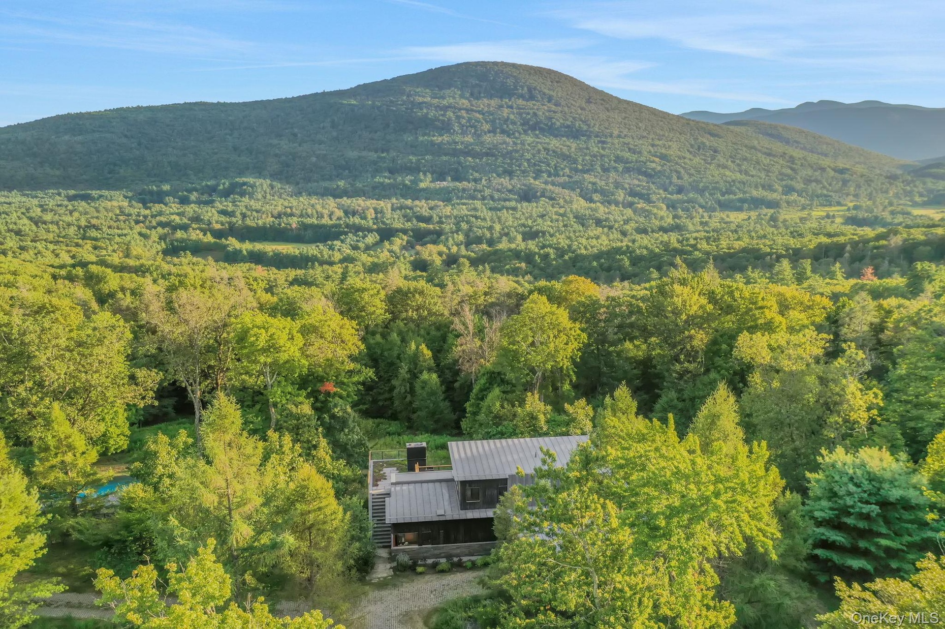 Welcome to Nature's Edge -- a Woodstock estate, where wilderness meets luxury. Perched at the end of a secluded private road, this modern mountain marvel offers unmatched privacy, serenity, and grandeur. Surrounded by natural woodscapes and native rock outcroppings, this 40 acre property sits adjacent to over 500 acres of forever wild NYC DEP land. The home itself, a Barry Price architectural masterpiece, will leave you questioning all you thought you knew about design. Featured in several publications, the details of this home include locally sourced and regionally crafted materials such as board formed concrete, epoxy coated structural steel, reclaimed black walnut, stainless steel, Onondaga limestone and lime based plaster walls all while maximizing the provision of thermal insulation and passive solar gain--comfort and energy efficiency. Within the 4600 square feet of living space, the home has 3 floors, each with its own bedroom and bathroom suite with custom cabinetry throughout. With an abundance of natural light, the timeless open-concept kitchen features a massive island, Wolf, Sub-Zero and Miele stainless steel appliances, oversized sink, espresso machine, and more. Step down into the sunken dining room with a wine refrigerator, ice machine, cold storage, and floating wood stove, surrounded by mountain views. On the lower level you will find the sprawling living spaces with continued details a plenty. Wood burning fireplace, wet bar, and sophisticated theatre room. The expansive doors and windows allow you to take in the undeveloped mountain sides natural features--a proper indoor/outdoor living experience. Continue to take in the scenery as you meander down the stone path to the breathtaking 52' x 17' vanishing edge pool, 8' x 8' vanishing edge spa, outdoor shower, and 224 square foot pool house. Equipped with the same finishes, the pool house offers an open area with massive sliding glass doors, full bathroom, refrigerator and freezer drawers, and mini split. Completely private, yet located just minutes from the heart of Woodstock. Enjoy all this vibrant community has to offer whether it's by way of the abundance of quality restaurants, shops, galleries, events, shows, and more. A short distance to many of the Hudson Valley's popular neighboring towns as well, Saugerties, Kingston, Phoenicia, Hunter, Windham, etc. while just over 2 hours to NYC.