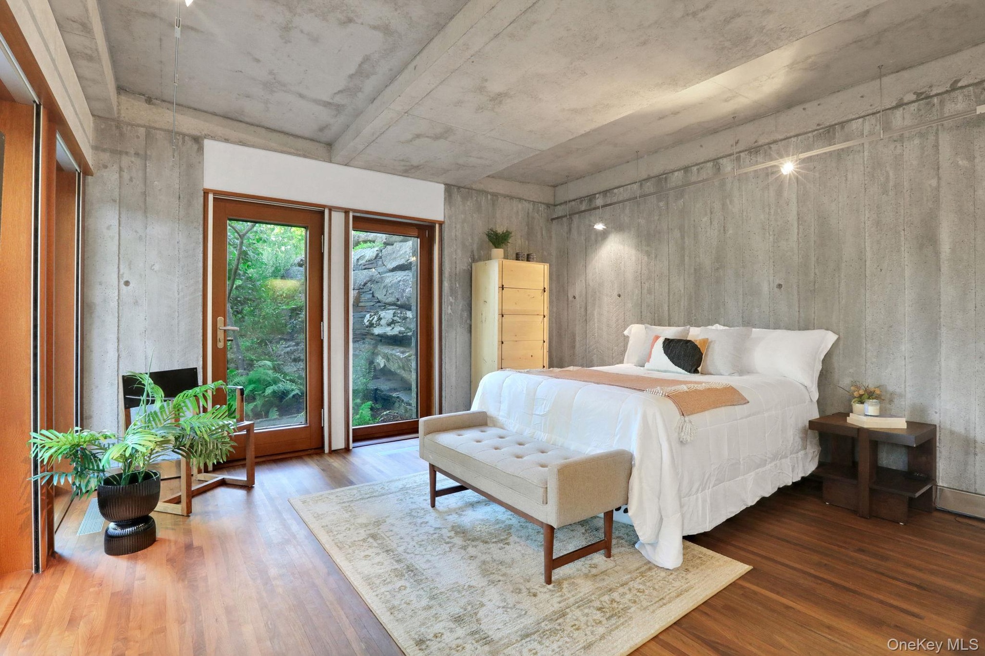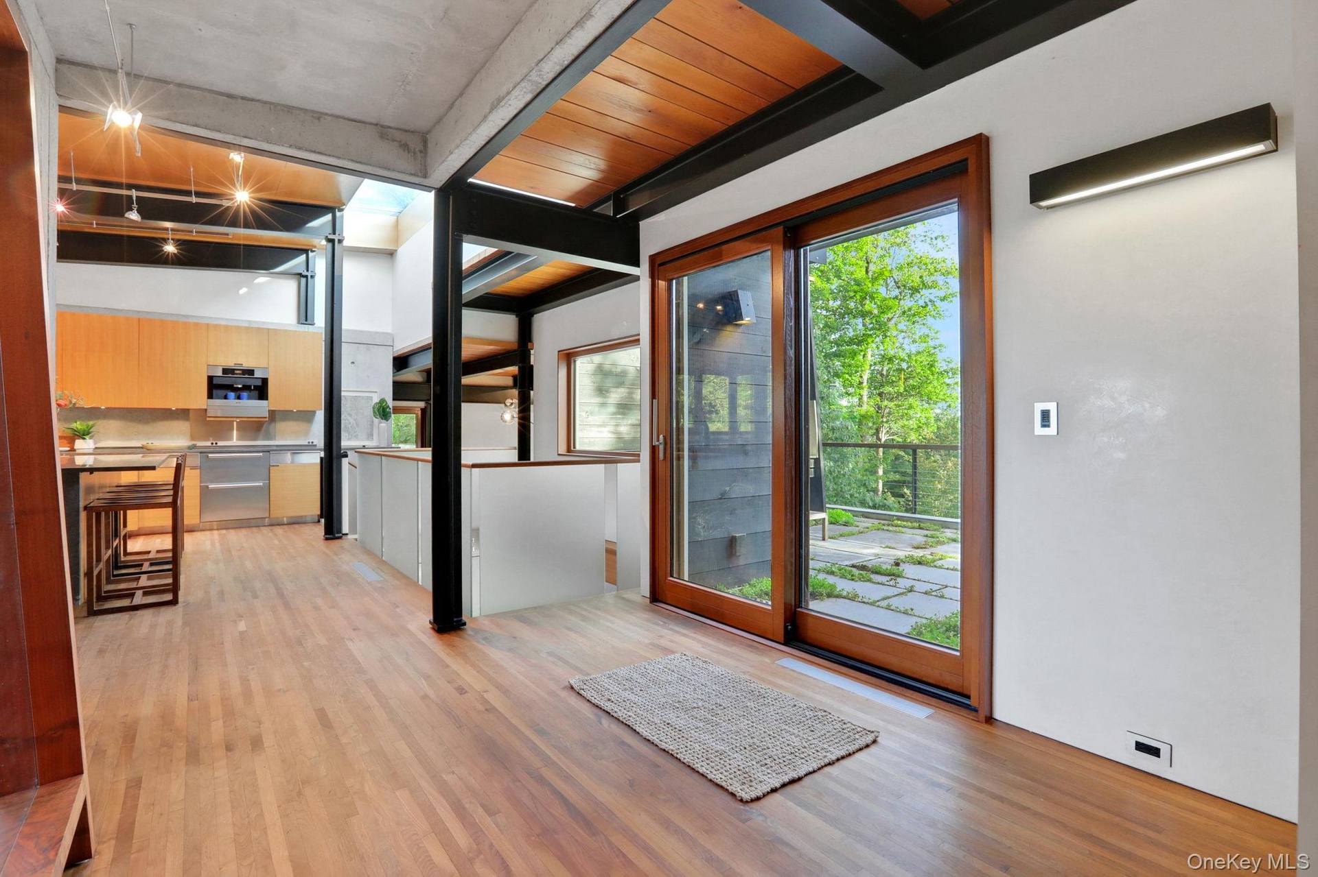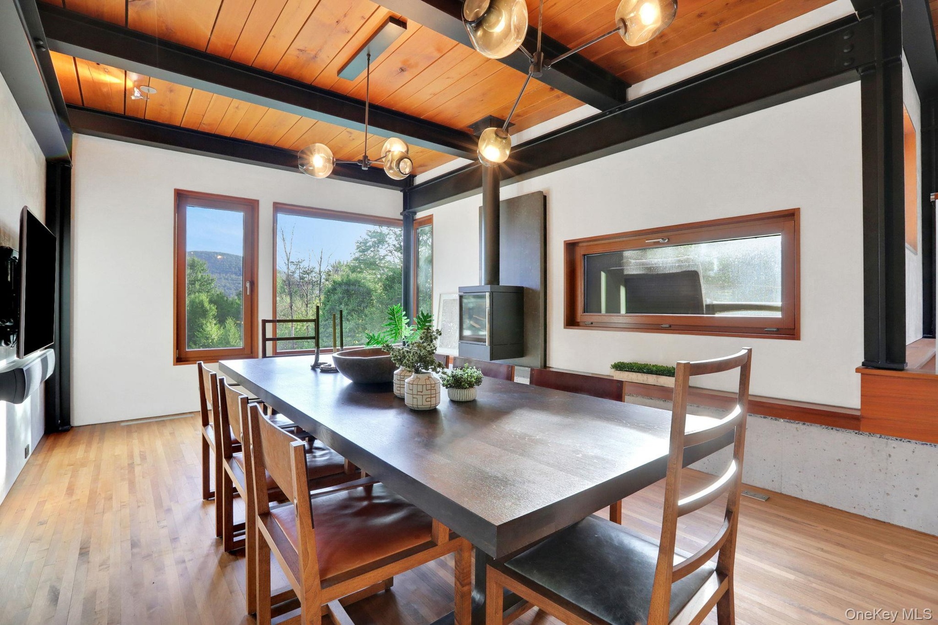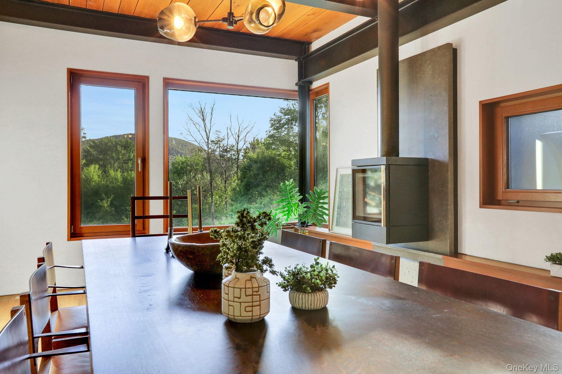 Welcome to Nature's Edge -- a Woodstock estate, where wilderness meets luxury. Perched at the end of a secluded private road, this modern mountain marvel offers unmatched privacy, serenity, and grandeur. Surrounded by natural woodscapes and native rock outcroppings, this 40 acre property sits adjacent to over 500 acres of forever wild NYC DEP land. The home itself, a Barry Price architectural masterpiece, will leave you questioning all you thought you knew about design. Featured in several publications, the details of this home include locally sourced and regionally crafted materials such as board formed concrete, epoxy coated structural steel, reclaimed black walnut, stainless steel, Onondaga limestone and lime based plaster walls all while maximizing the provision of thermal insulation and passive solar gain--comfort and energy efficiency. Within the 4600 square feet of living space, the home has 3 floors, each with its own bedroom and bathroom suite with custom cabinetry throughout. With an abundance of natural light, the timeless open-concept kitchen features a massive island, Wolf, Sub-Zero and Miele stainless steel appliances, oversized sink, espresso machine, and more. Step down into the sunken dining room with a wine refrigerator, ice machine, cold storage, and floating wood stove, surrounded by mountain views. On the lower level you will find the sprawling living spaces with continued details a plenty. Wood burning fireplace, wet bar, and sophisticated theatre room. The expansive doors and windows allow you to take in the undeveloped mountain sides natural features--a proper indoor/outdoor living experience. Continue to take in the scenery as you meander down the stone path to the breathtaking 52' x 17' vanishing edge pool, 8' x 8' vanishing edge spa, outdoor shower, and 224 square foot pool house. Equipped with the same finishes, the pool house offers an open area with massive sliding glass doors, full bathroom, refrigerator and freezer drawers, and mini split. Completely private, yet located just minutes from the heart of Woodstock. Enjoy all this vibrant community has to offer whether it's by way of the abundance of quality restaurants, shops, galleries, events, shows, and more. A short distance to many of the Hudson Valley's popular neighboring towns as well, Saugerties, Kingston, Phoenicia, Hunter, Windham, etc. while just over 2 hours to NYC.