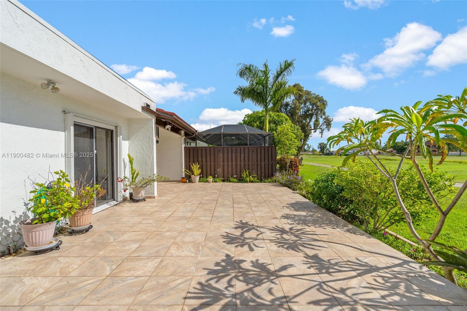 Charming home offering 2,069 sq.ft. of living space with a desirable 2-car garage & stunning views of the golf course.Step inside to find an inviting open courtyard entry, for a welcoming first impression.The heart of the home features a remodeled kitchen with modern finishes and a beautifully updated second bathroom, while the primary suite bath remains in its original but well-maintained condition, providing an opportunity for personal customization. Upgraded impact-rated doors in select areas and shutters throughout for added peace of mind. The tiled backyard ensures low-maintenance living, allowing you to spend more time relaxing and taking in the serene golf course views.Enjoy community amenities including basketball, tennis, & pickleball courts for an active lifestyle.