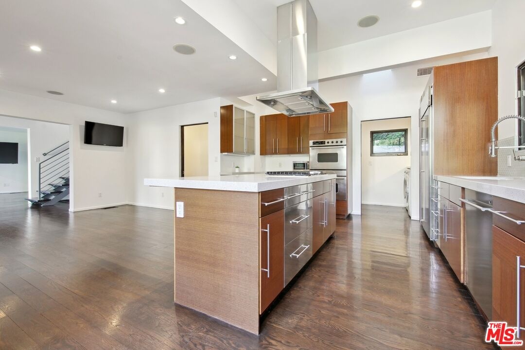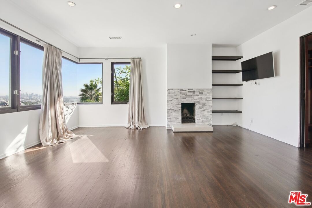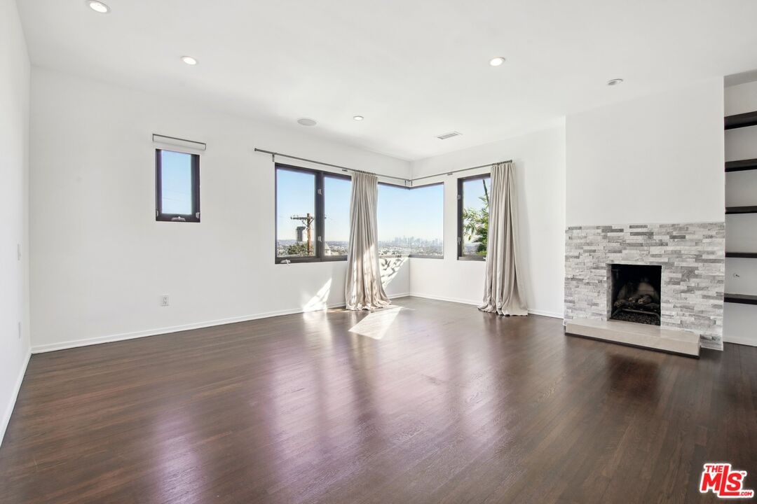 Nestled in an exceptional location just above the iconic Chateau Marmont and the vibrant Sunset Strip, this stunning 3-bedroom, 4-bathroom architectural retreat effortlessly combines elegance, comfort, and spectacular city views. Designed to make the most of space and natural light, the home's open floor plan seamlessly integrates indoor and outdoor living, creating an ideal environment for both entertaining and relaxing. As you step inside, you're welcomed by a formal entrance that flows into the spacious and inviting living area. An open layout, a cozy fireplace, and striking glass walls that frame breathtaking city views from Downtown LA to Century City, make it the perfect spot to unwind or host guests. Just off the living room, the outdoor space showcases a generously sized deck surrounded by lush greenery, offering a peaceful, private sanctuary. A cascading waterfall further enhances the tranquil atmosphere, seamlessly integrating indoor and outdoor living. A comfortable family area situated between the living and dining spaces effortlessly flows into the expansive kitchen - a true haven for cooking enthusiasts. Equipped with stainless steel appliances, sleek countertops, a breakfast bar, abundant workspace, and ample storage, the kitchen is designed to inspire your inner chef! The soaring 10-foot sky-lighted ceilings fill the space with natural light, and a unique balcony featuring a built-in barbecue invites you to enjoy grilling while taking in the mesmerizing city views below. Adjacent to the kitchen, the dining room offers versatility, with sliding pocket glass doors that can be opened for casual meals or closed to create an intimate setting for formal dining. The first level also features a convenient powder room, a spacious pantry, a well-appointed laundry area, and easy access to a serene outdoor space, perfect for al fresco dining or relaxation. On the second level, you'll find the first bedroom with an en suite bathroom and direct access to the outdoors. Upstairs, the primary suite offers a true retreat, complete with a cozy fireplace, breathtaking views, a walk-in closet, and an office nook. The en suite bathroom features dual sinks, a shower, and a separate tub for a relaxing soak. A third bedroom with an en suite bathroom and private balcony completes the upper level, offering another incredible space to unwind while enjoying views of the city. Additional highlights of this home include hardwood floors throughout, a Nest Thermostat for enhanced comfort and efficiency, a two-car garage, and a private hilltop overlook area that provides even more stunning panoramic views of the Los Angeles skyline. Every detail of this home has been thoughtfully crafted for both comfort and sophistication, providing a seamless blend of modern luxury and serene living. Perched in an exceptional location, it offers the perfect balance of tranquility and proximity to the excitement of West Hollywood's renowned shopping, dining, and entertainment. This residence is not just a home, it's a lifestyle!