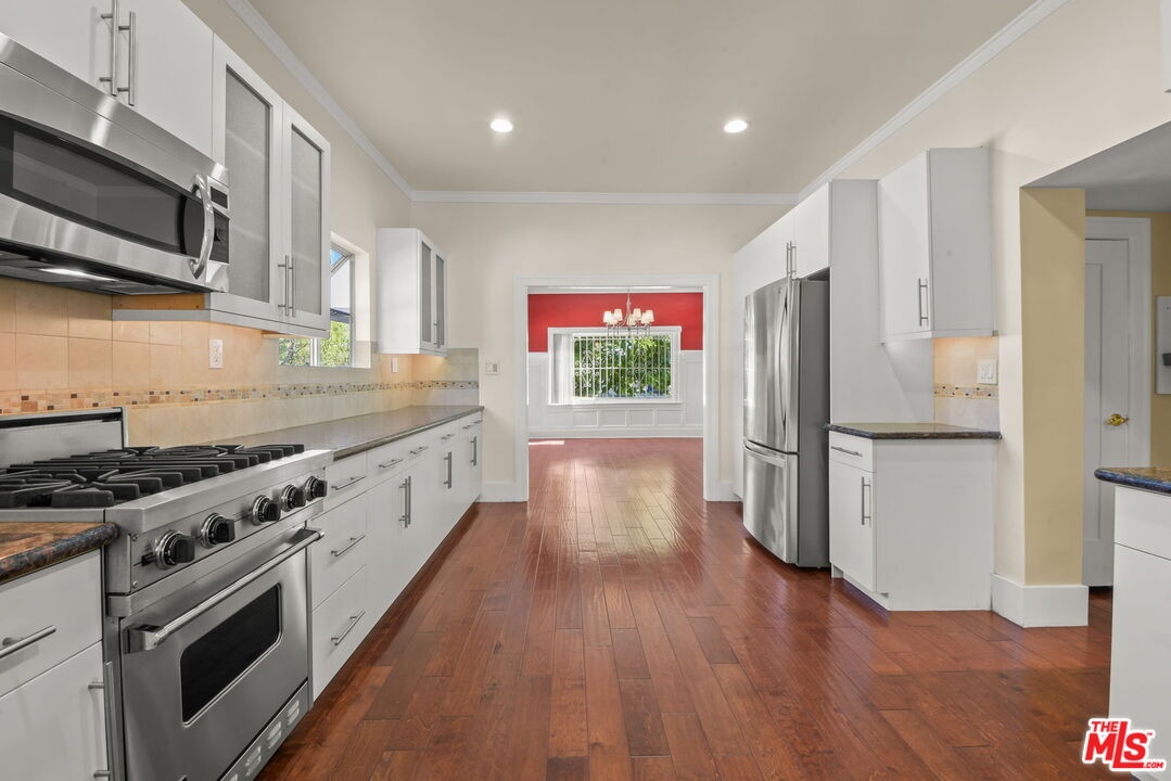 This historic American Foursquare home combines historic charm with modern conveniences. Built in 1917 and updated throughout the years, the property is located in the prestigious Wilshire Park neighborhood, a Historic Preservation Overlay Zone known for its beautiful early 20th-century architecture, nestled in the heart of Mid-City, offering easy access to Hancock Park, Koreatown, Downtown LA, and the Westside. Step inside to discover dark hardwood floors flowing throughout both levels, complemented by an elegant marble foyer and fireplace surround. The home features updated systems. The redesigned kitchen showcases stainless steel appliances, including a Viking range and Bosch dishwasher, with stone countertops and an adjacent breakfast room. The spacious layout is perfect for both everyday cooking and entertaining. The bedrooms are thoughtfully designed with private baths and comfortably accommodate king-sized beds and feature generous walk-in closets. The spacious master suite includes its own private balcony and sitting area. An upstairs laundry closet adds everyday convenience. The home's thoughtful floor plan flows beautifully with no wasted space, featuring abundant windows that flood the interior with natural light and create a bright, welcoming atmosphere. Open the windows and doors to enjoy a lovely cross-breeze throughout. Off the breakfast room, a large back porch extends the living space outdoors and features a swim spa, perfect for relaxation and exercise. The property includes a separate garage, large paved driveway that accommodates up to four cars with ease, as well as a covered drive-through. Additonally, there is a Level 2 fast charger for Teslas and non-Tesla EVs. With its central location and easy freeway access, the area offers the perfect blend of historic character and urban convenience. The landlord covers both swimspa and garden maintenance. Solar panels help reduce energy costs.