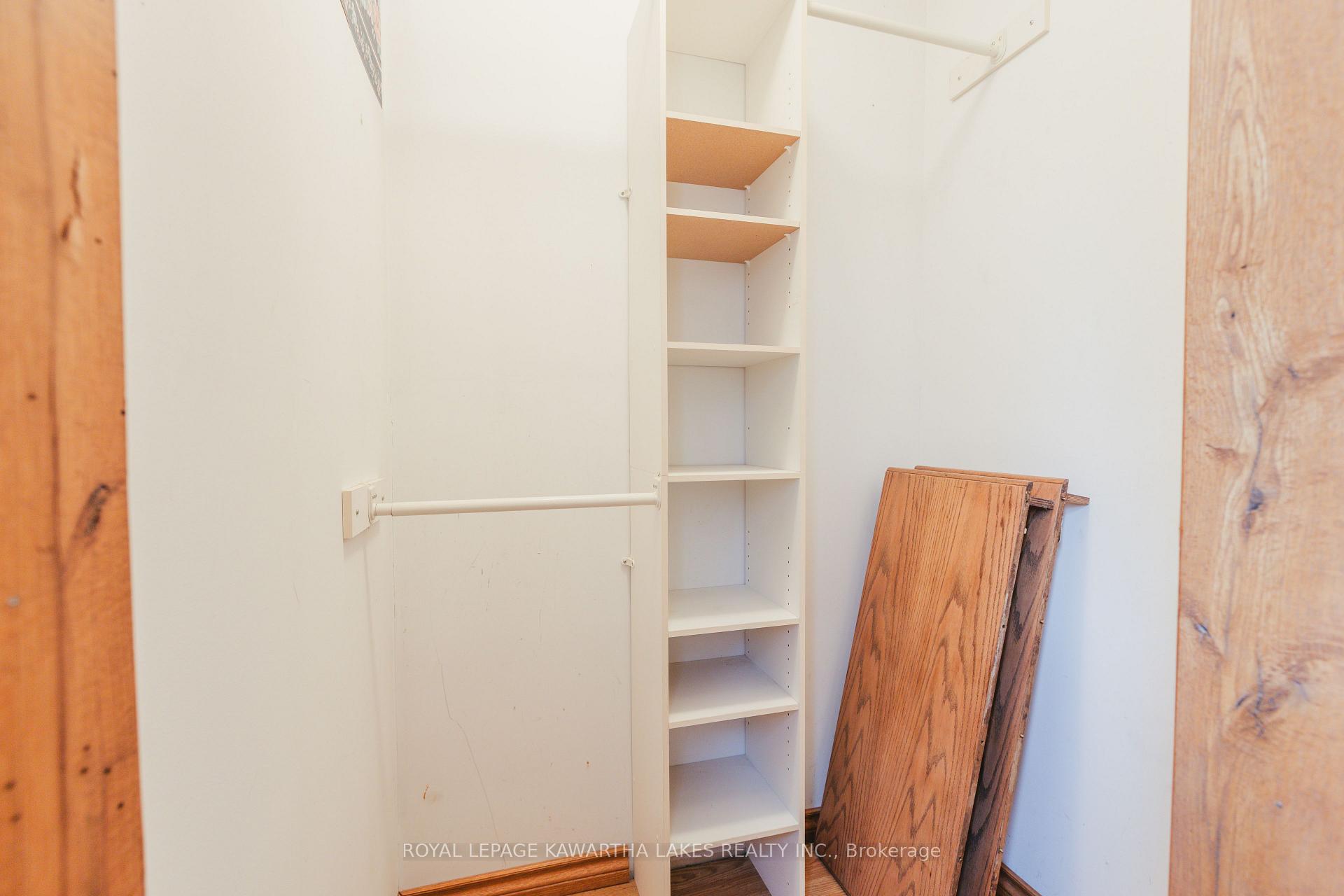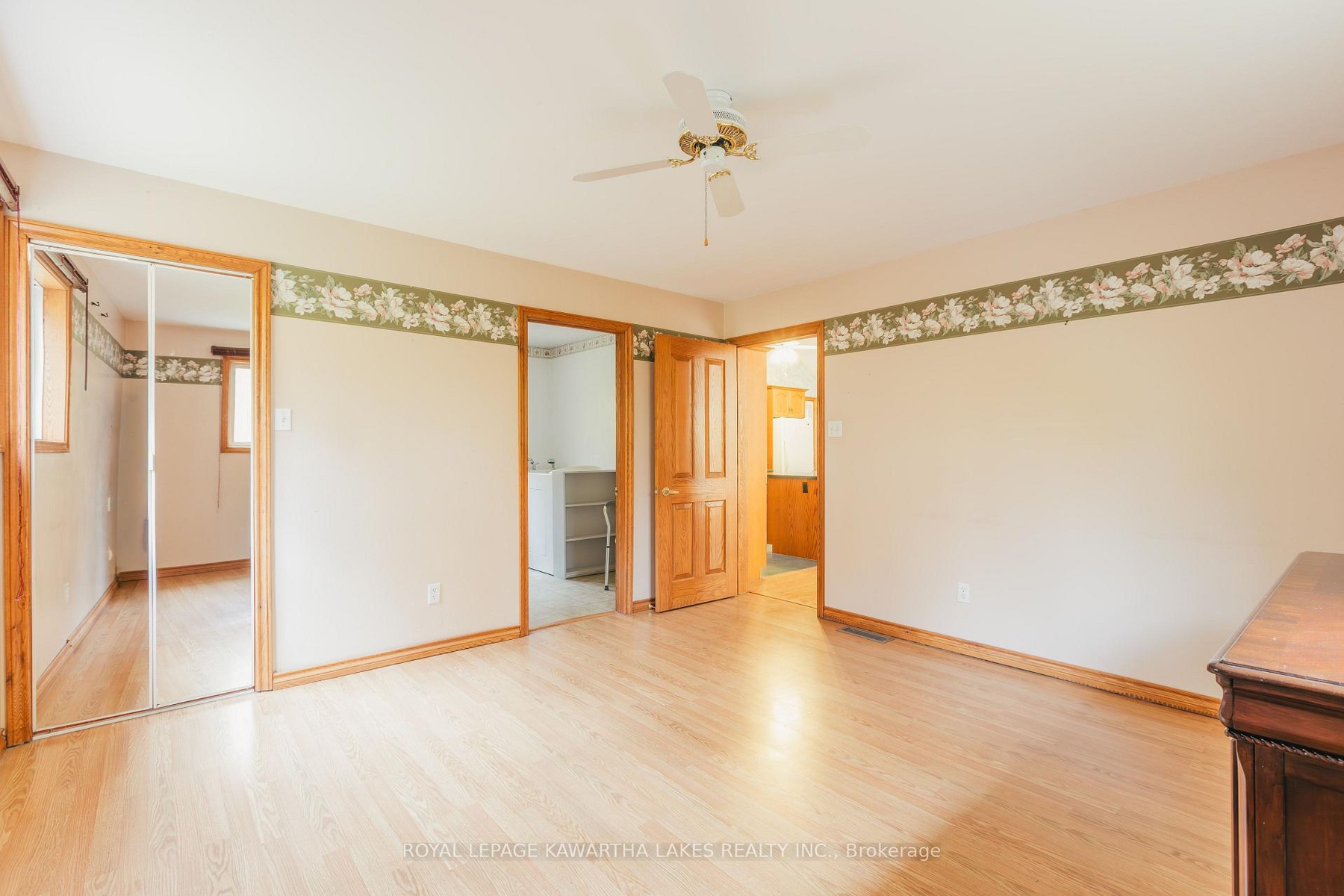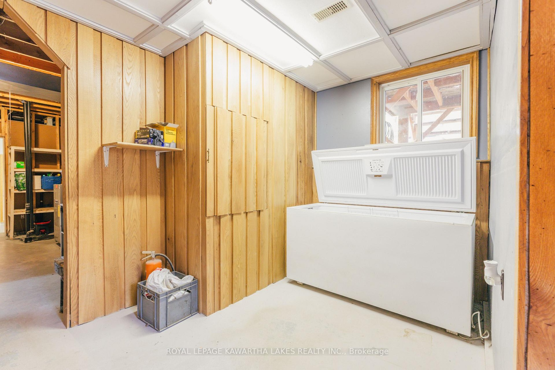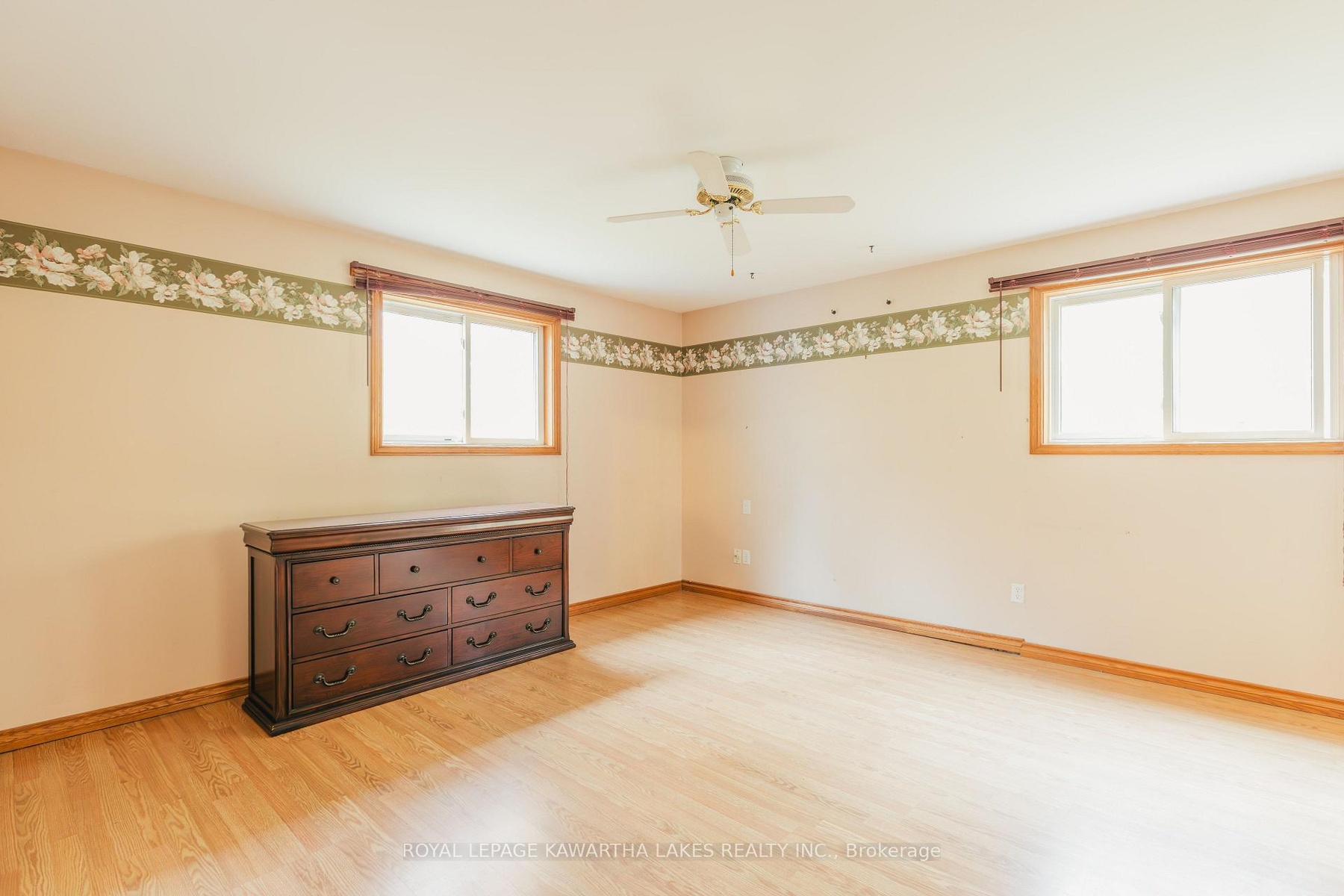 Nestled in a lush, private 2 acre forest, this 1200 sqft raised bungalow offers tranquility and natural beauty, often with deer grazing right on the front lawn. The open concept main living space features vaulted ceilings and a stunning wall of windows that frame the surrounding trees. The master bedroom includes a walk in closet and ensuite, while the second bedroom is located on the opposite end of the home, next to a second full bath with laundry. The partially finished walkout basement has a spacious rec room (or potential third bedroom), a 2pc bath, and generous storage rooms. An electric dumbwaiter transports groceries from the foyer up to the kitchen. Outside there is a 25' x 35' workshop, tool shed, and firewood shed. Drilled well, steel roof, fibre optic internet available, and just down the road a boat launch to beautiful Balsam Lake. Built in aprx 1998.