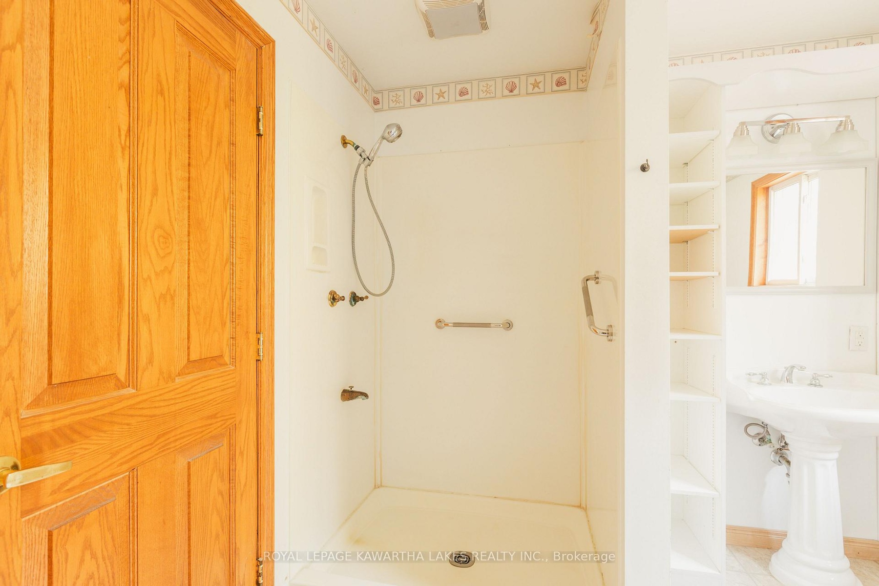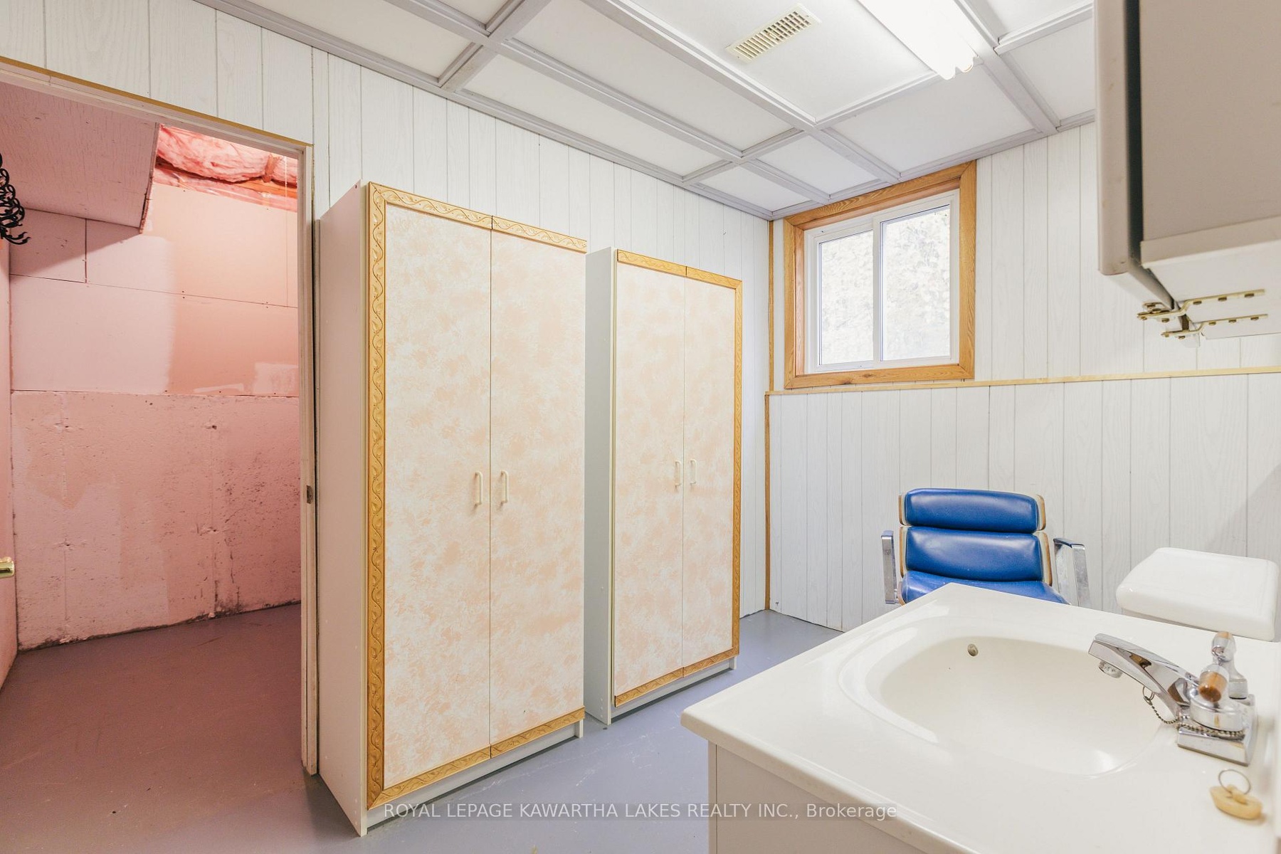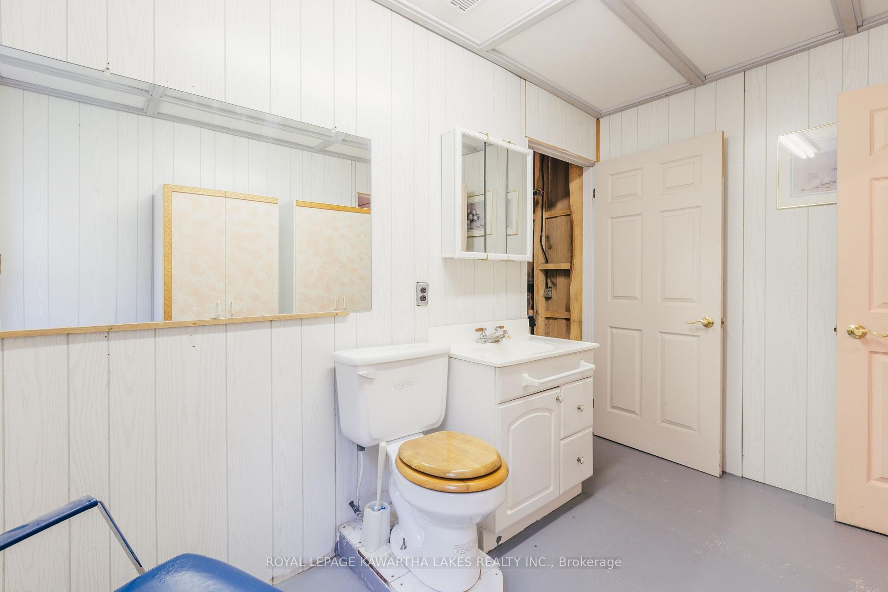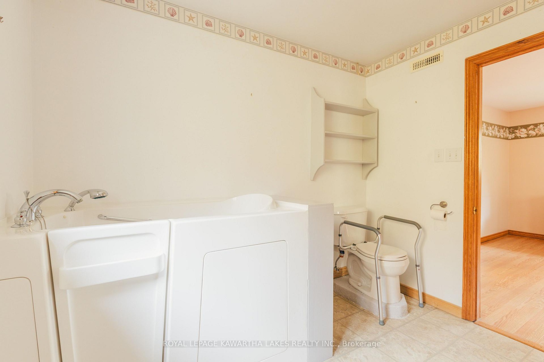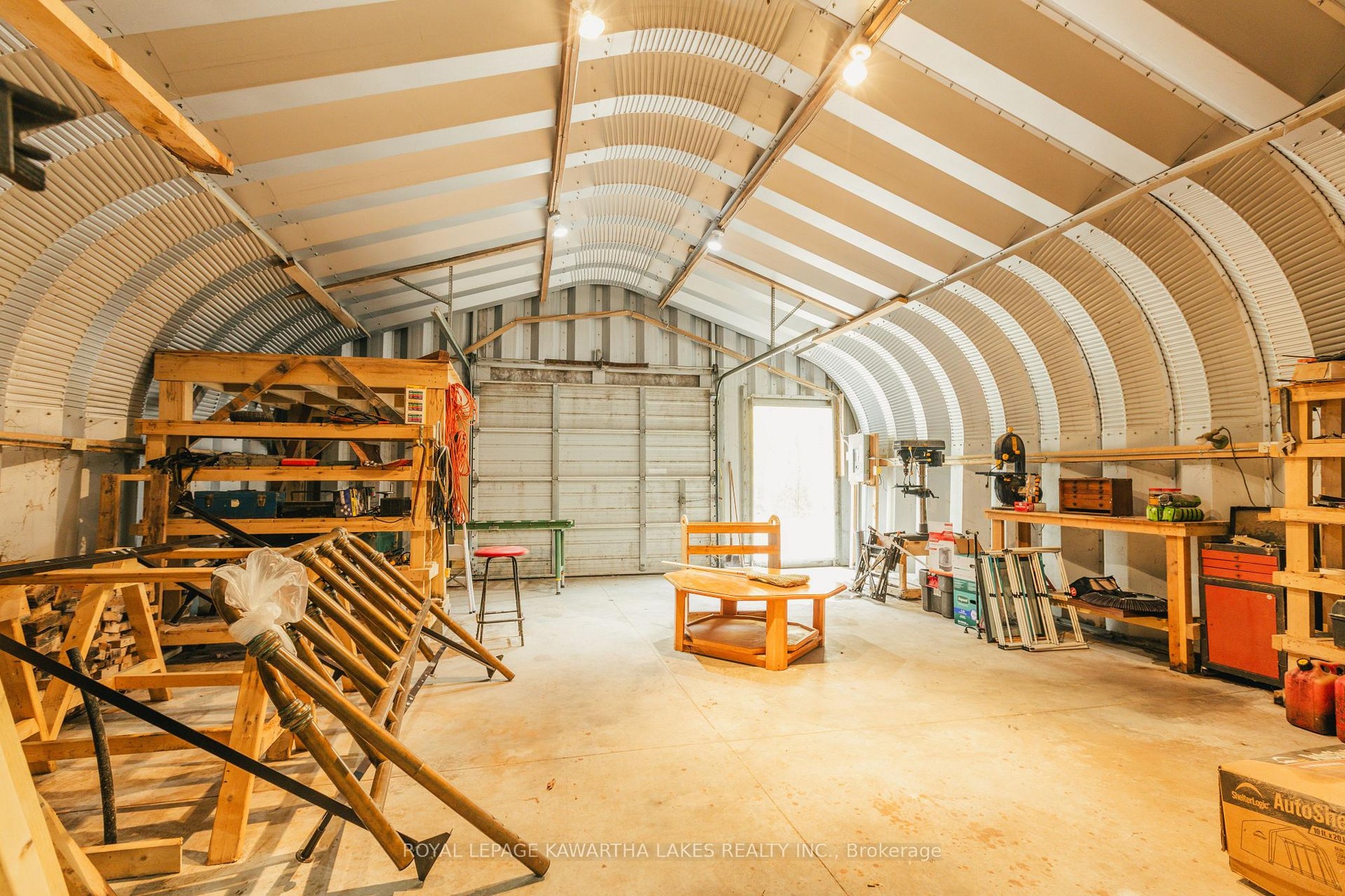 Nestled in a lush, private 2 acre forest, this 1200 sqft raised bungalow offers tranquility and natural beauty, often with deer grazing right on the front lawn. The open concept main living space features vaulted ceilings and a stunning wall of windows that frame the surrounding trees. The master bedroom includes a walk in closet and ensuite, while the second bedroom is located on the opposite end of the home, next to a second full bath with laundry. The partially finished walkout basement has a spacious rec room (or potential third bedroom), a 2pc bath, and generous storage rooms. An electric dumbwaiter transports groceries from the foyer up to the kitchen. Outside there is a 25' x 35' workshop, tool shed, and firewood shed. Drilled well, steel roof, fibre optic internet available, and just down the road a boat launch to beautiful Balsam Lake. Built in aprx 1998.