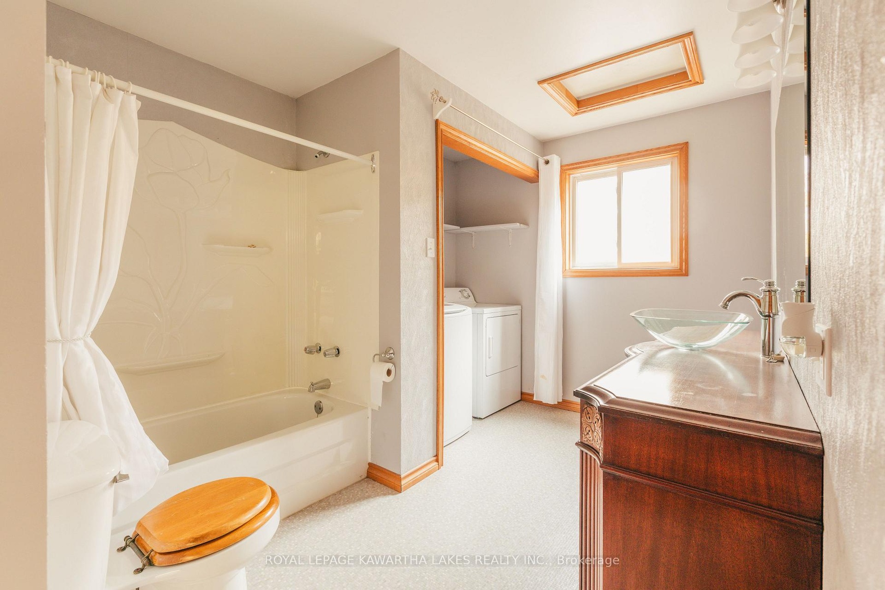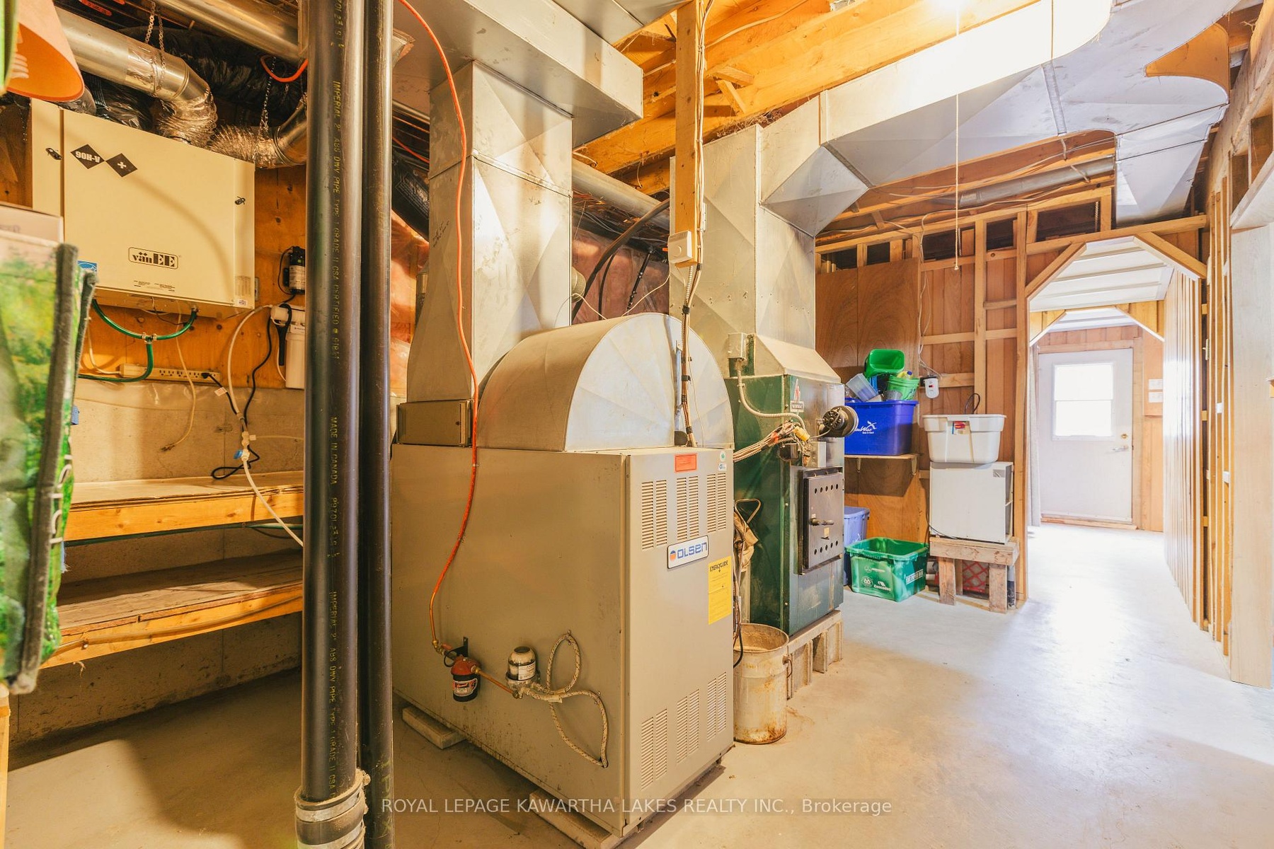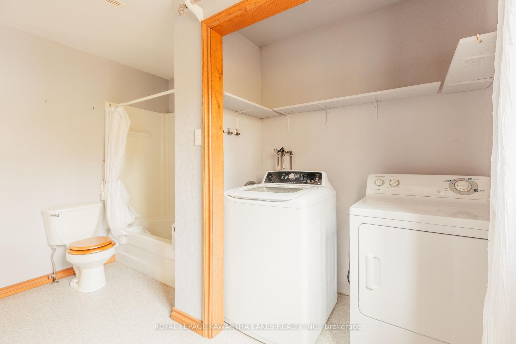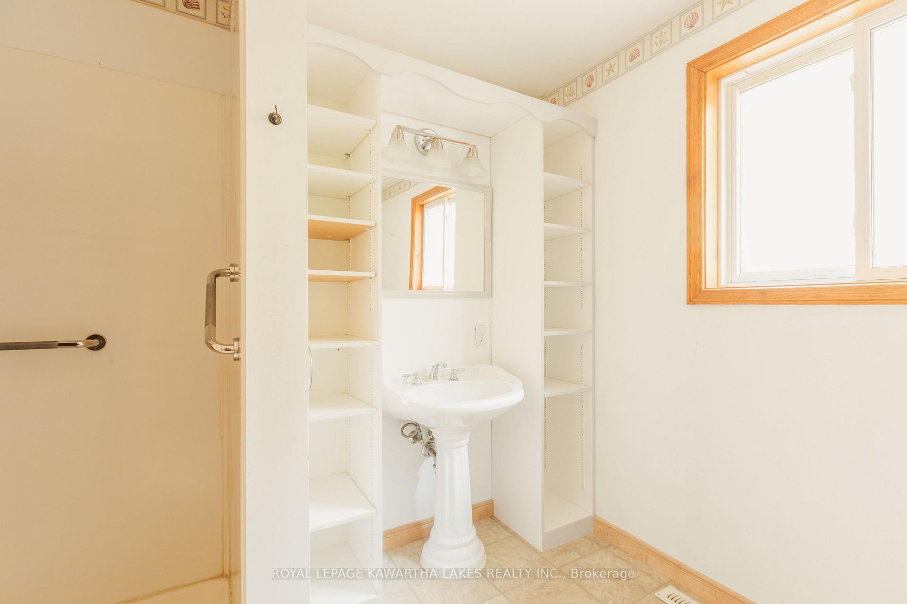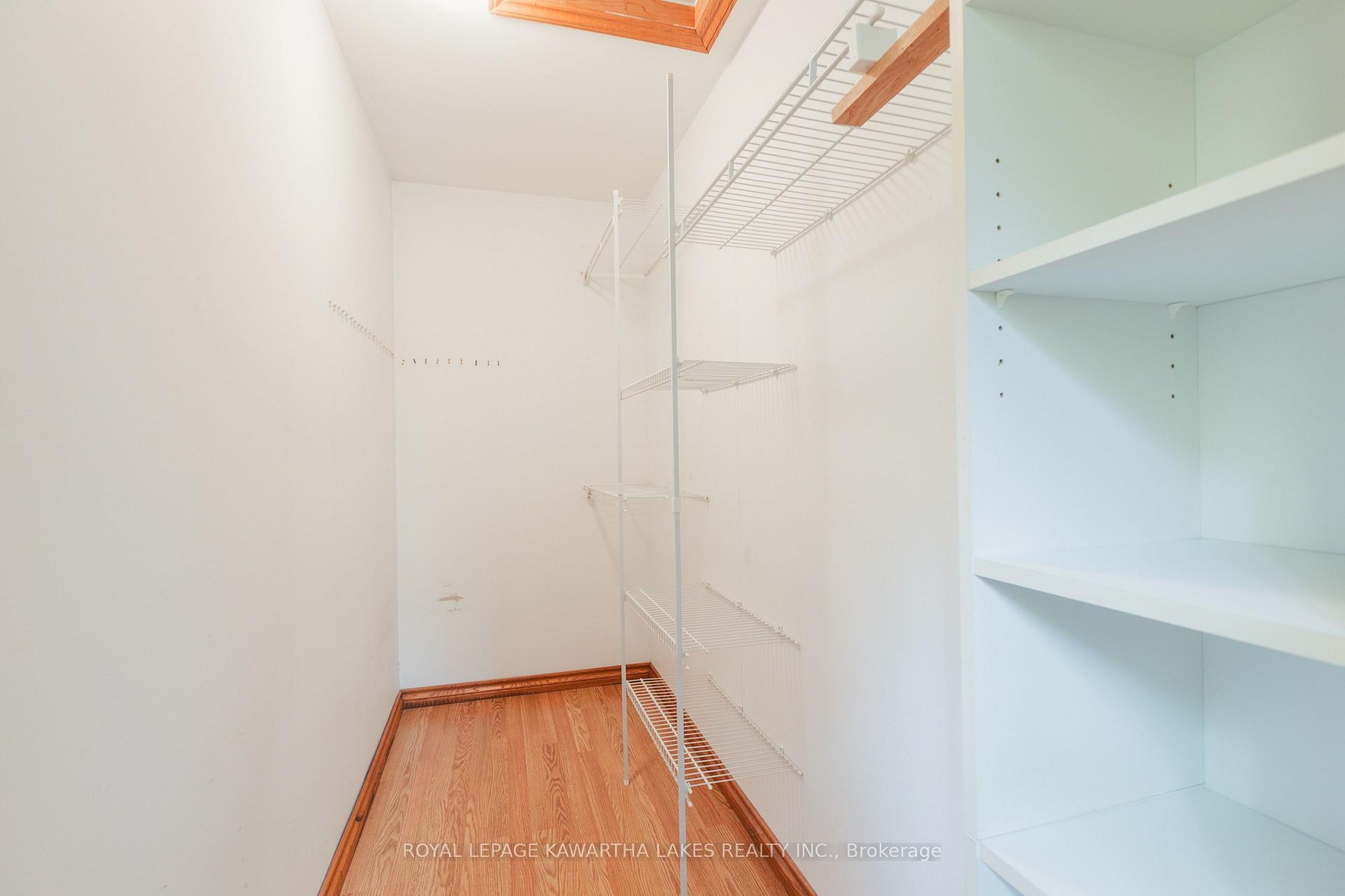 Nestled in a lush, private 2 acre forest, this 1200 sqft raised bungalow offers tranquility and natural beauty, often with deer grazing right on the front lawn. The open concept main living space features vaulted ceilings and a stunning wall of windows that frame the surrounding trees. The master bedroom includes a walk in closet and ensuite, while the second bedroom is located on the opposite end of the home, next to a second full bath with laundry. The partially finished walkout basement has a spacious rec room (or potential third bedroom), a 2pc bath, and generous storage rooms. An electric dumbwaiter transports groceries from the foyer up to the kitchen. Outside there is a 25' x 35' workshop, tool shed, and firewood shed. Drilled well, steel roof, fibre optic internet available, and just down the road a boat launch to beautiful Balsam Lake. Built in aprx 1998.