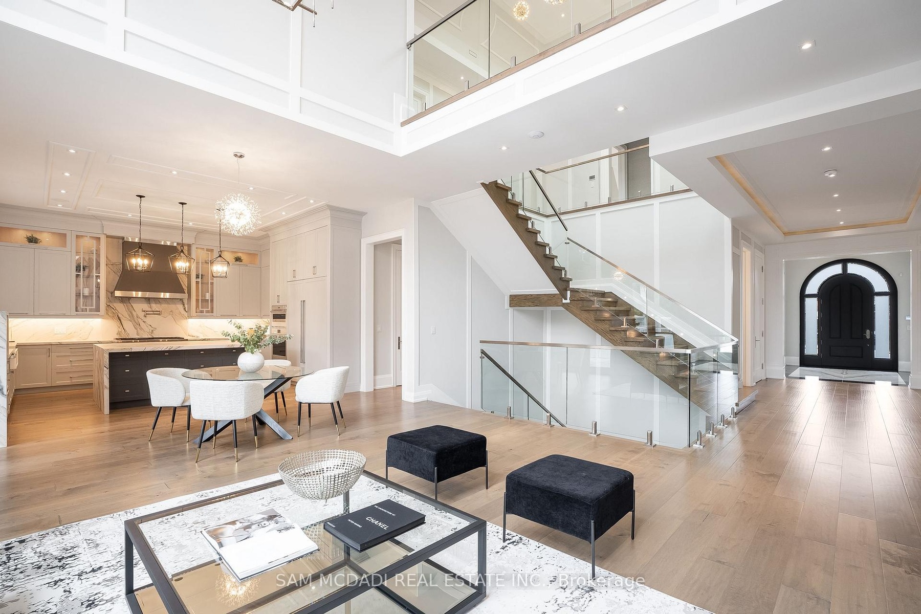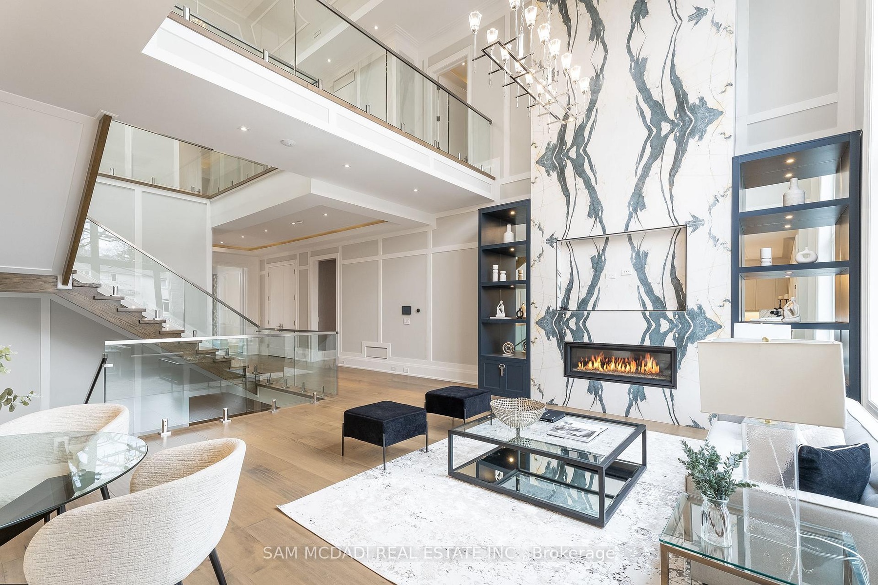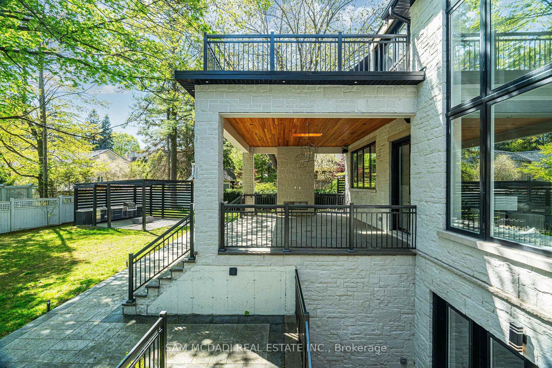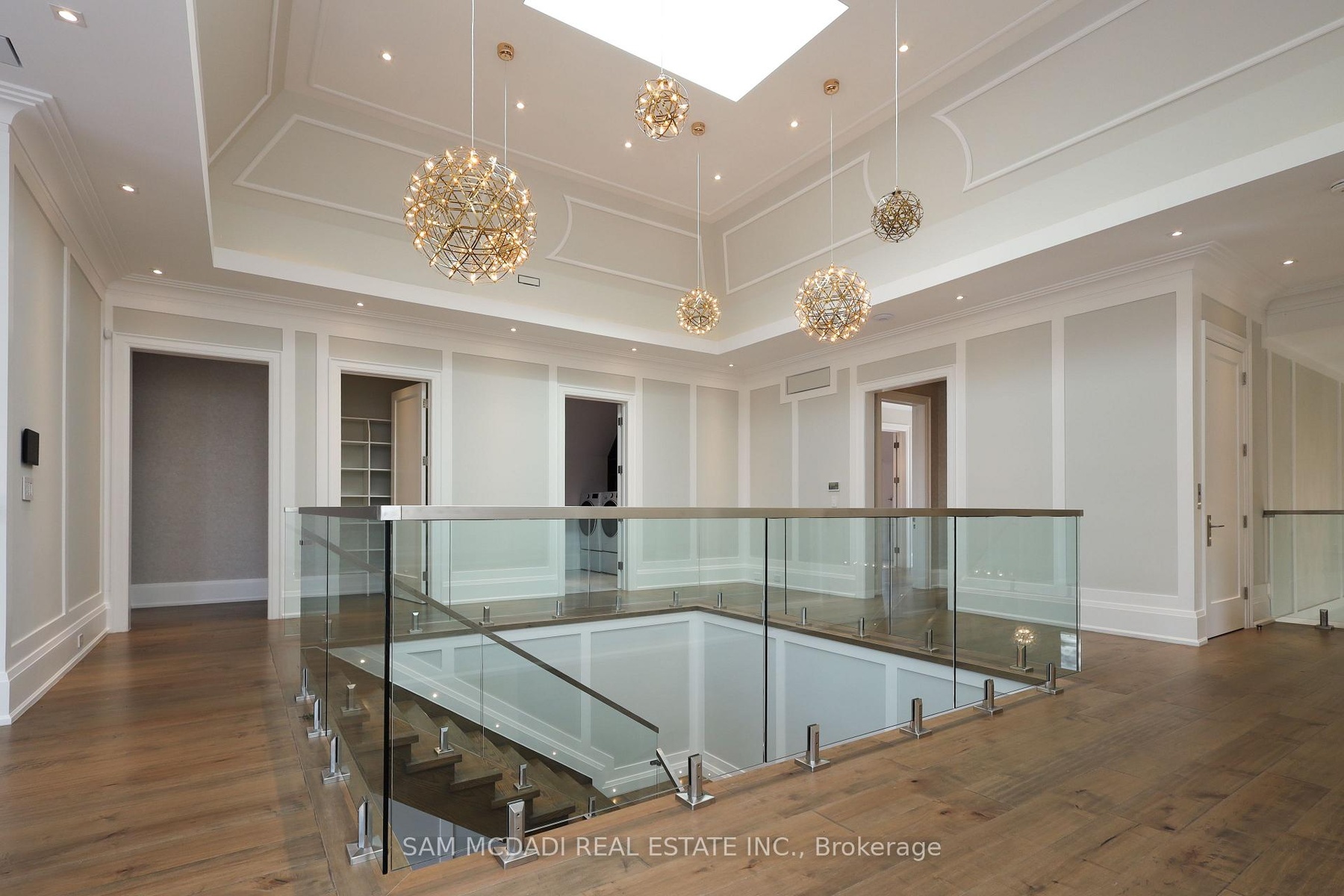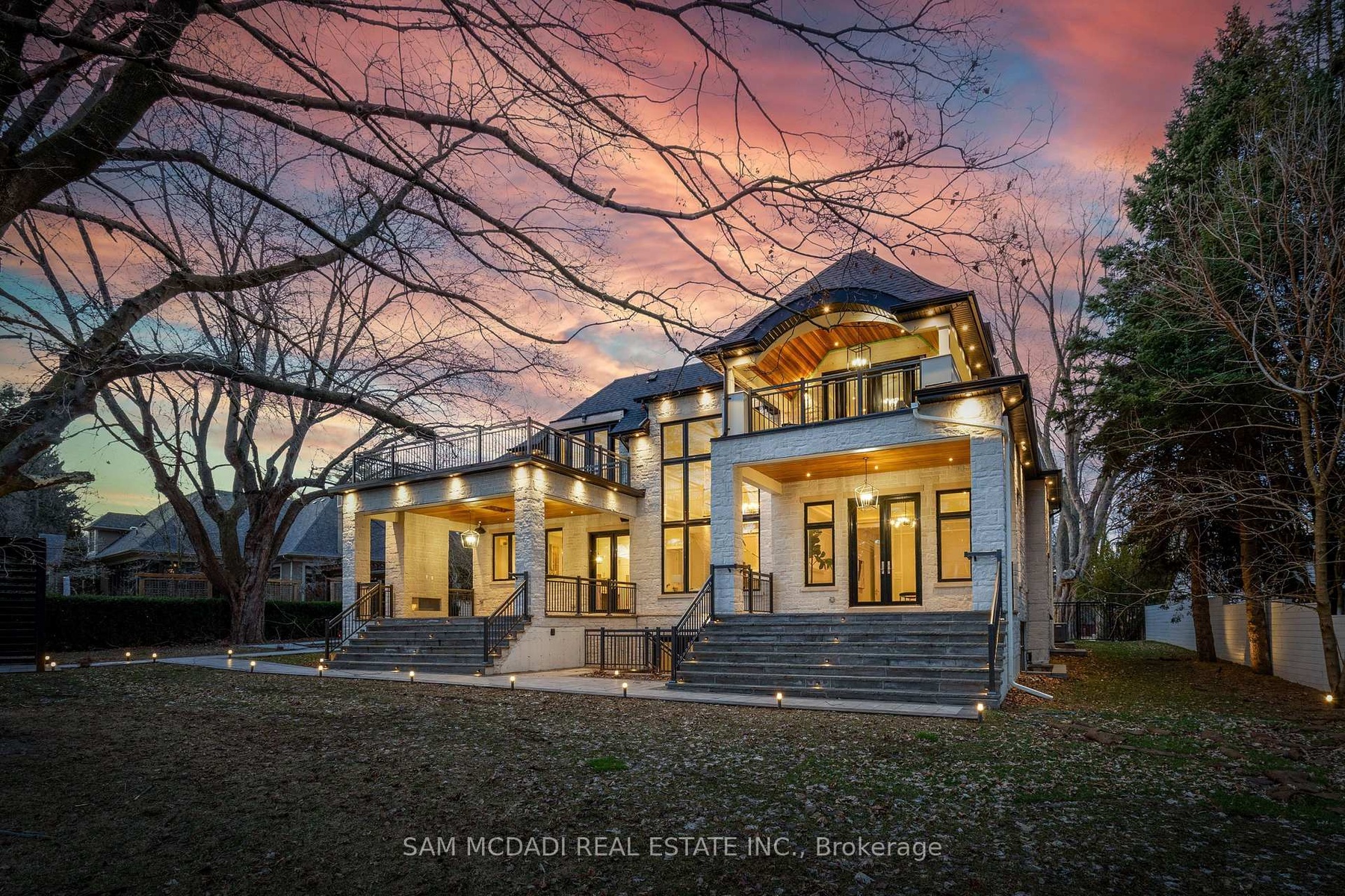Meticulously designed on a sprawling 100' x 180' lot in the renowned Rattray Park Estates, this modern palatial beauty has been crafted with the utmost attention to detail. The well-manicured grounds encircle this home, offering 9,300 square feet of total living space with natural light radiating through expansive windows and skylights. The open-concept floor plan features prodigious living areas with soaring ceiling heights, enhanced by surround sound, illuminated LED lighting, hardwood and porcelain floors, and a Cambridge elevator accessible on all levels. Step into your gourmet kitchen, designed with a large centre island, honed porcelain counters, high-end appliances, and a butlers servery station with a walk-in pantry. The elegant family room is anchored by a striking porcelain gas fireplace that draws the eye upward, adding a sophisticated and intriguing touch. The main floor primary suite includes a luxurious five-piece ensuite with heated floors, a large walk-in closet, and a walk-out to your private patio. Upstairs, four well-appointed bedrooms each feature walk-in closets and private ensuites. This remarkable smart home also boasts: a dedicated office, a nanny and guest suite, a three-tier theatre, radiant heated floors in the basement, a second kitchen, a Control4 security system, a 400-amp electrical panel, a hot tub, multiple balconies, a twelve-car driveway, and more. The beautifully landscaped backyard is pool-sized, offering endless possibilities for outdoor living and entertaining!