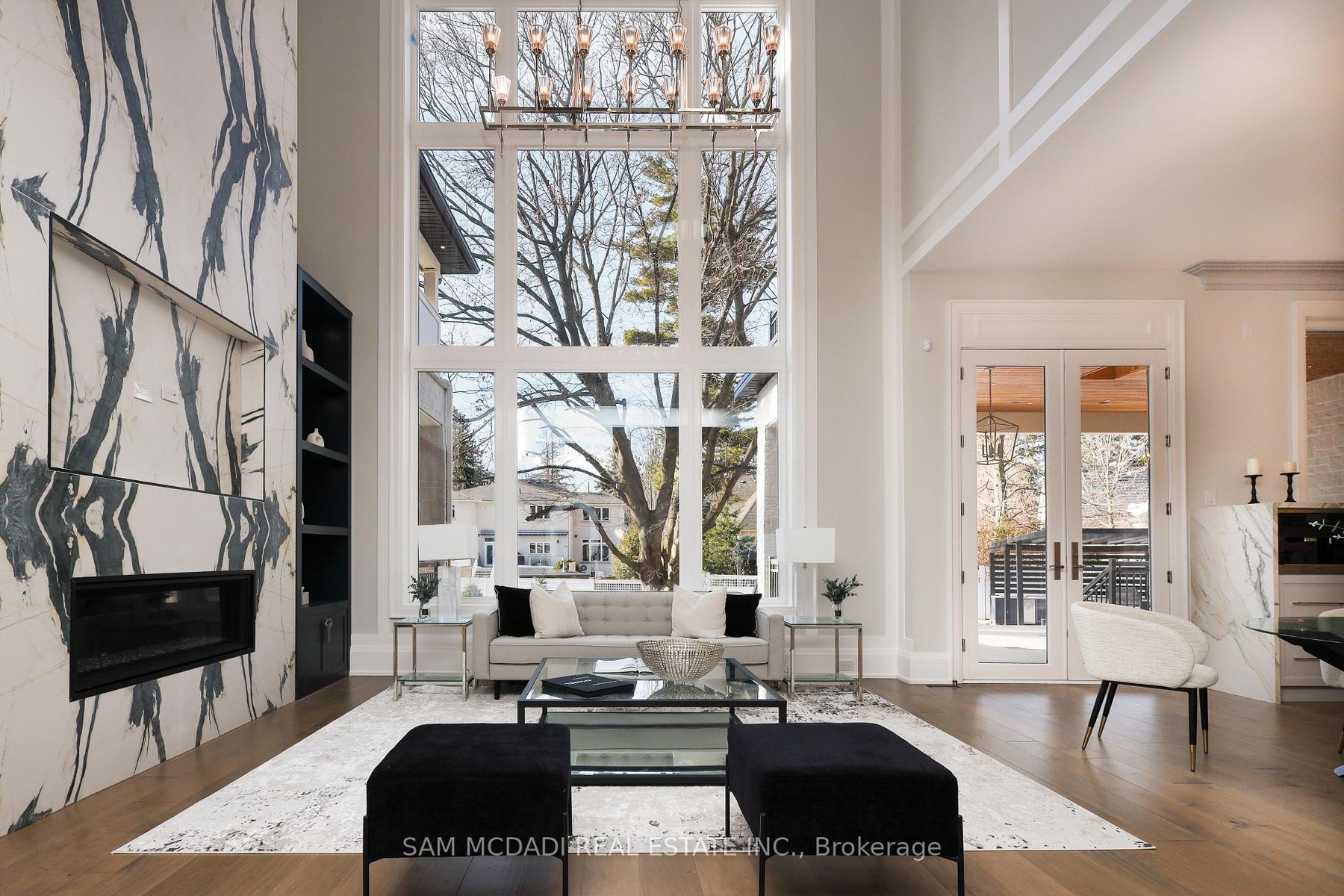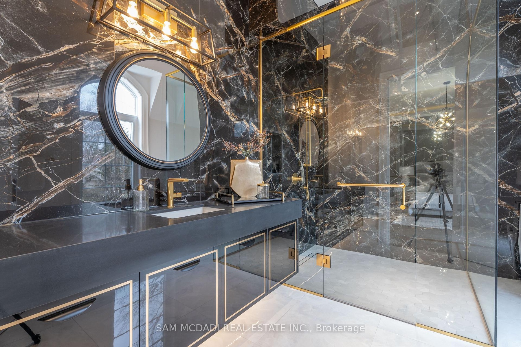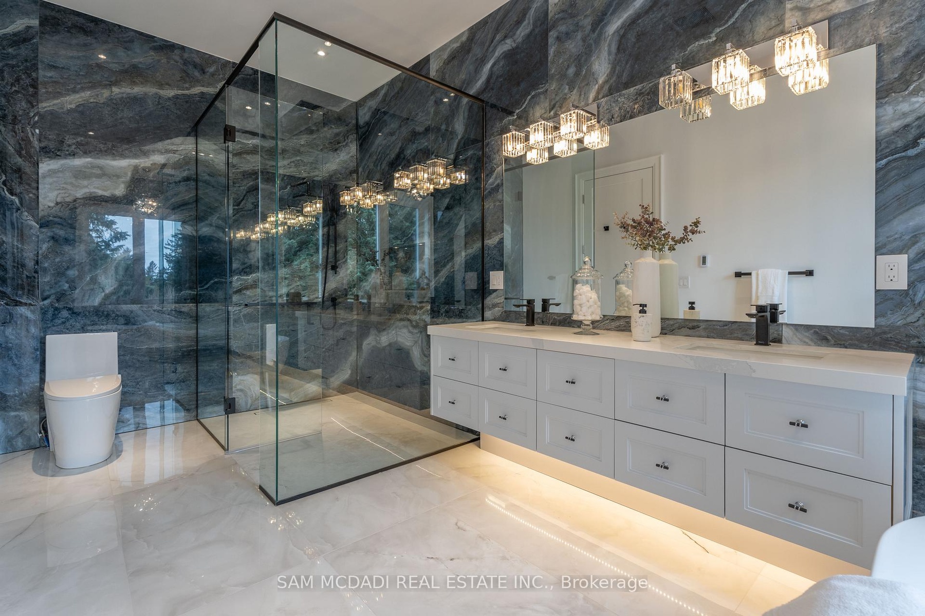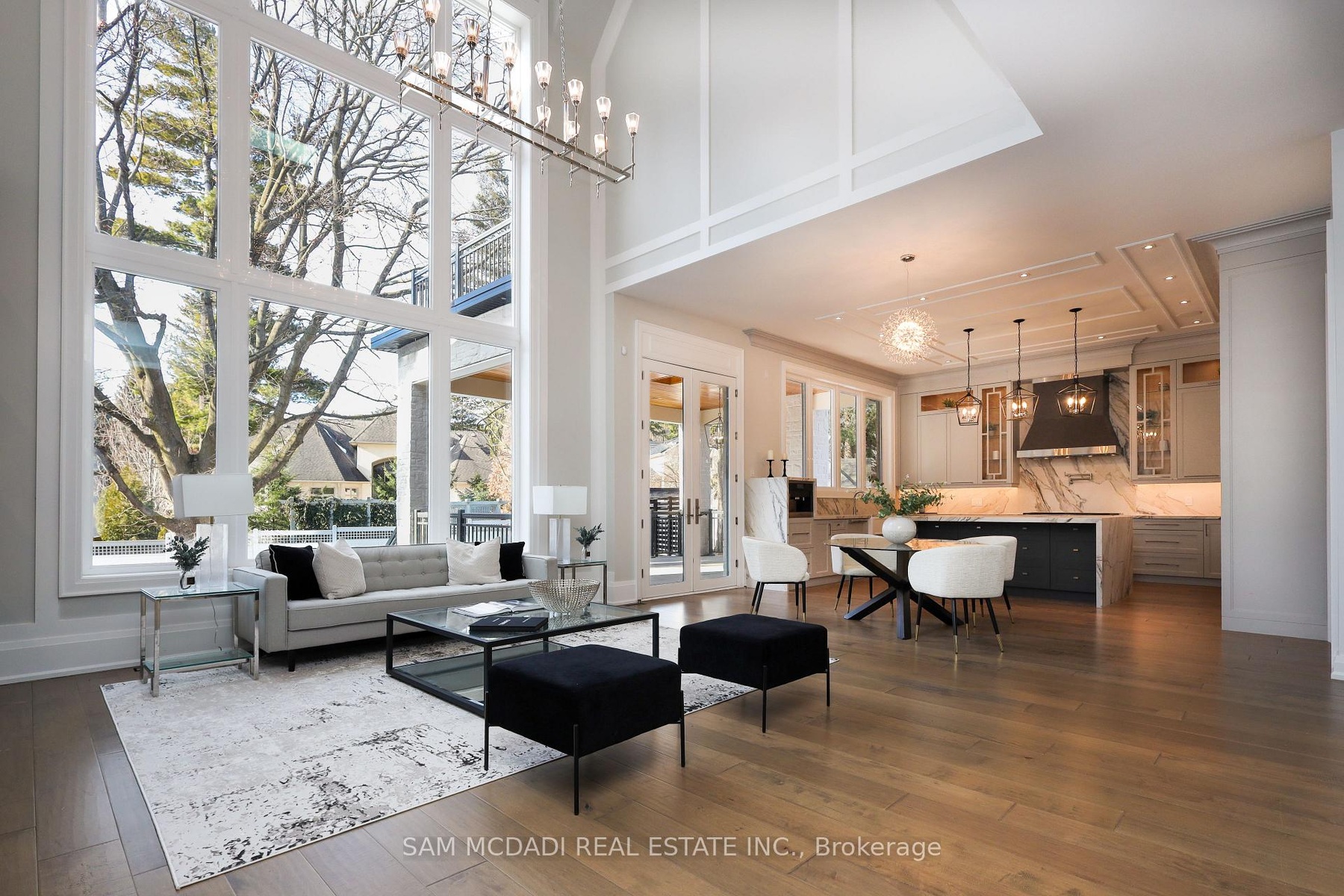 Meticulously designed on a sprawling 100' x 180' lot in the renowned Rattray Park Estates, this modern palatial beauty has been crafted with the utmost attention to detail. The well-manicured grounds encircle this home, offering 9,300 square feet of total living space with natural light radiating through expansive windows and skylights. The open-concept floor plan features prodigious living areas with soaring ceiling heights, enhanced by surround sound, illuminated LED lighting, hardwood and porcelain floors, and a Cambridge elevator accessible on all levels. Step into your gourmet kitchen, designed with a large centre island, honed porcelain counters, high-end appliances, and a butlers servery station with a walk-in pantry. The elegant family room is anchored by a striking porcelain gas fireplace that draws the eye upward, adding a sophisticated and intriguing touch. The main floor primary suite includes a luxurious five-piece ensuite with heated floors, a large walk-in closet, and a walk-out to your private patio. Upstairs, four well-appointed bedrooms each feature walk-in closets and private ensuites. This remarkable smart home also boasts: a dedicated office, a nanny and guest suite, a three-tier theatre, radiant heated floors in the basement, a second kitchen, a Control4 security system, a 400-amp electrical panel, a hot tub, multiple balconies, a twelve-car driveway, and more. The beautifully landscaped backyard is pool-sized, offering endless possibilities for outdoor living and entertaining!