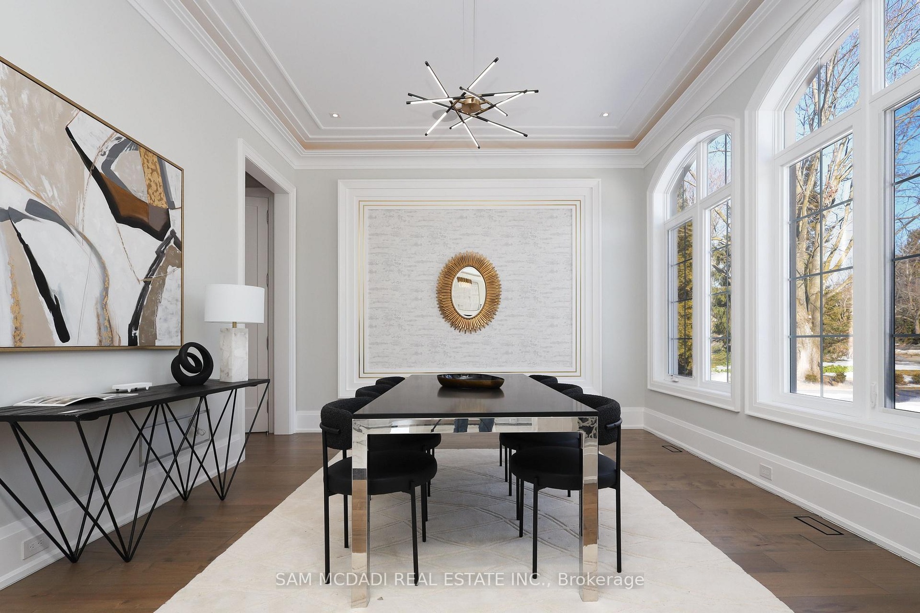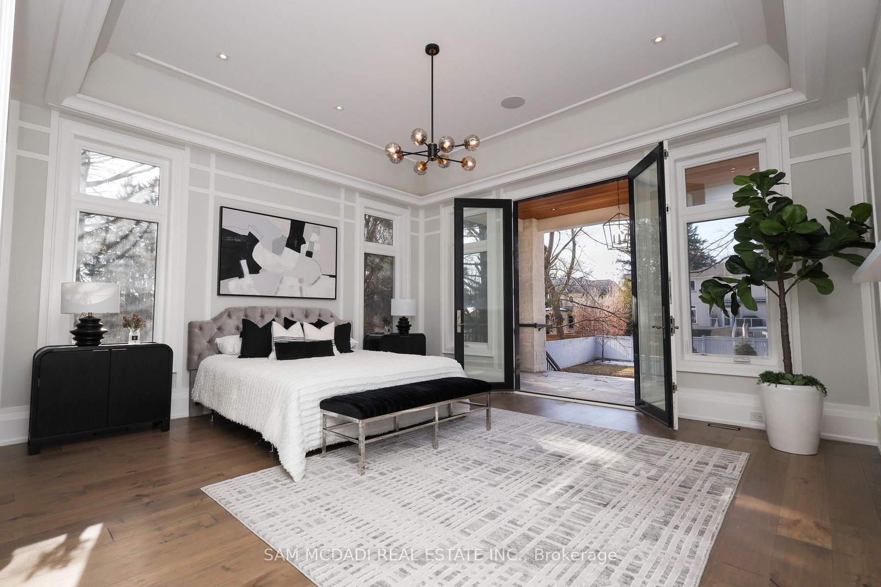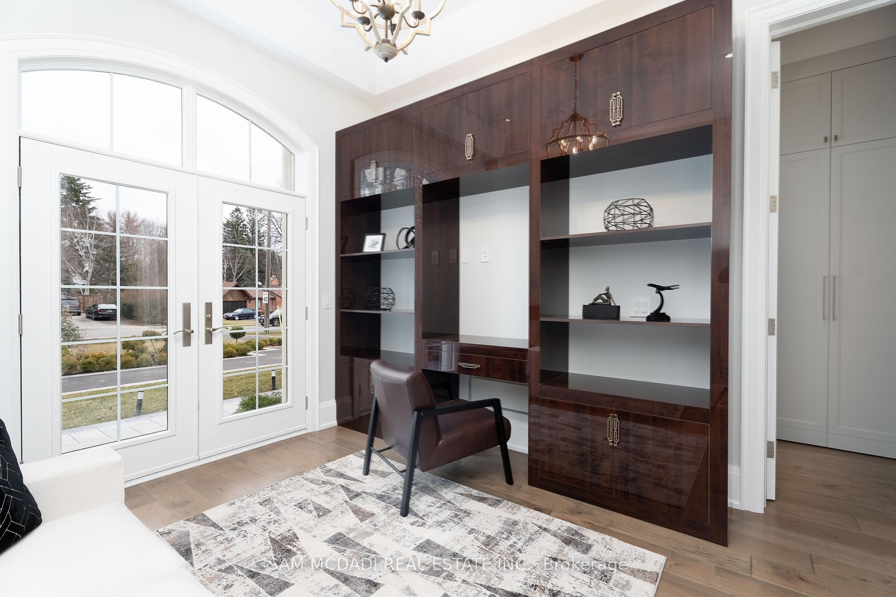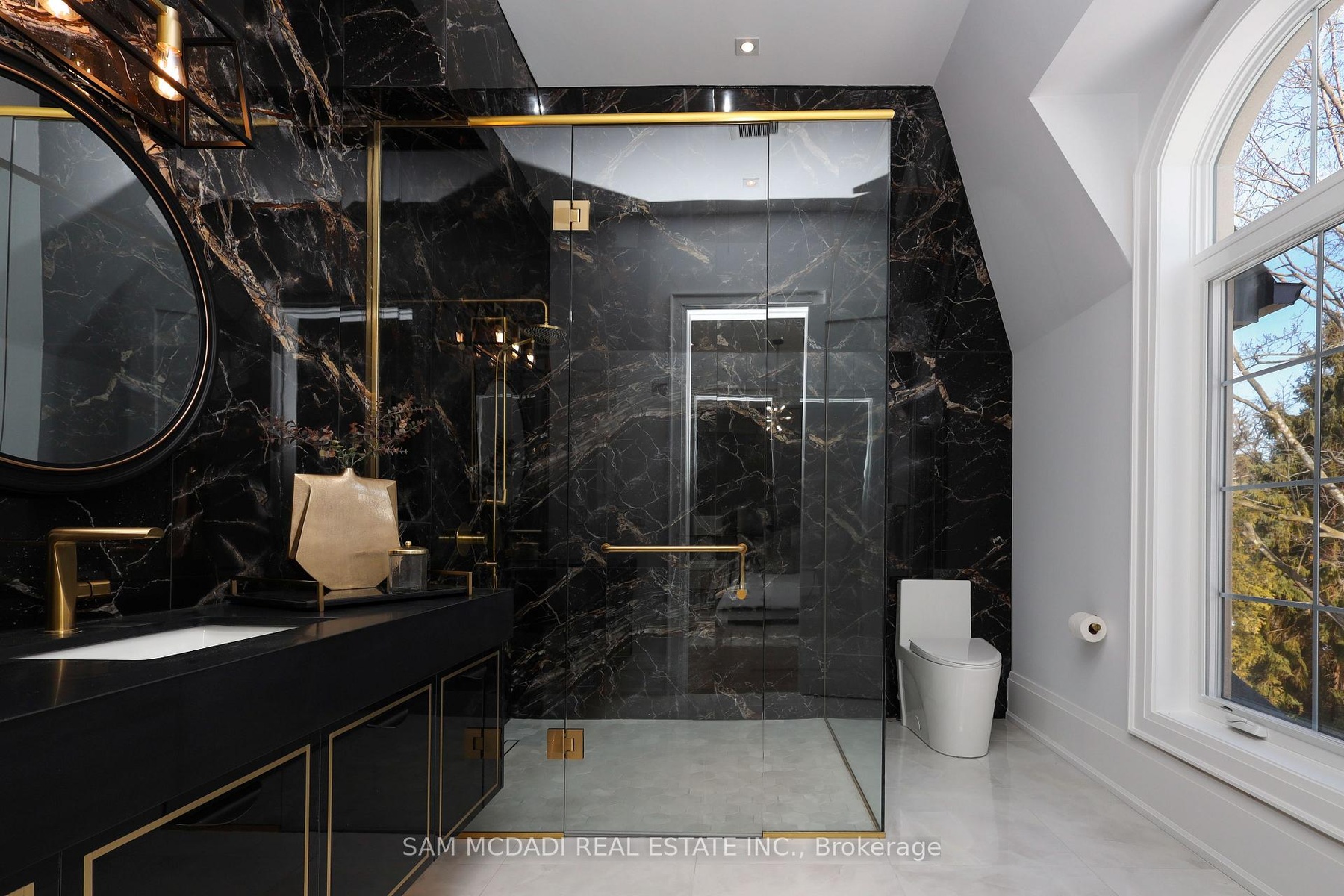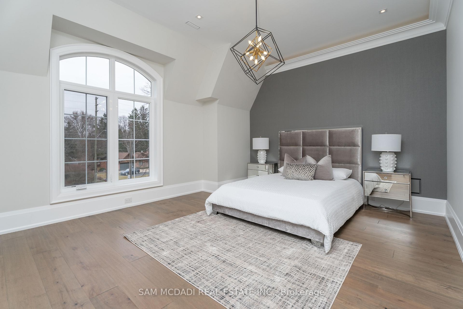 Meticulously designed on a sprawling 100' x 180' lot in the renowned Rattray Park Estates, this modern palatial beauty has been crafted with the utmost attention to detail. The well-manicured grounds encircle this home, offering 9,300 square feet of total living space with natural light radiating through expansive windows and skylights. The open-concept floor plan features prodigious living areas with soaring ceiling heights, enhanced by surround sound, illuminated LED lighting, hardwood and porcelain floors, and a Cambridge elevator accessible on all levels. Step into your gourmet kitchen, designed with a large centre island, honed porcelain counters, high-end appliances, and a butlers servery station with a walk-in pantry. The elegant family room is anchored by a striking porcelain gas fireplace that draws the eye upward, adding a sophisticated and intriguing touch. The main floor primary suite includes a luxurious five-piece ensuite with heated floors, a large walk-in closet, and a walk-out to your private patio. Upstairs, four well-appointed bedrooms each feature walk-in closets and private ensuites. This remarkable smart home also boasts: a dedicated office, a nanny and guest suite, a three-tier theatre, radiant heated floors in the basement, a second kitchen, a Control4 security system, a 400-amp electrical panel, a hot tub, multiple balconies, a twelve-car driveway, and more. The beautifully landscaped backyard is pool-sized, offering endless possibilities for outdoor living and entertaining!