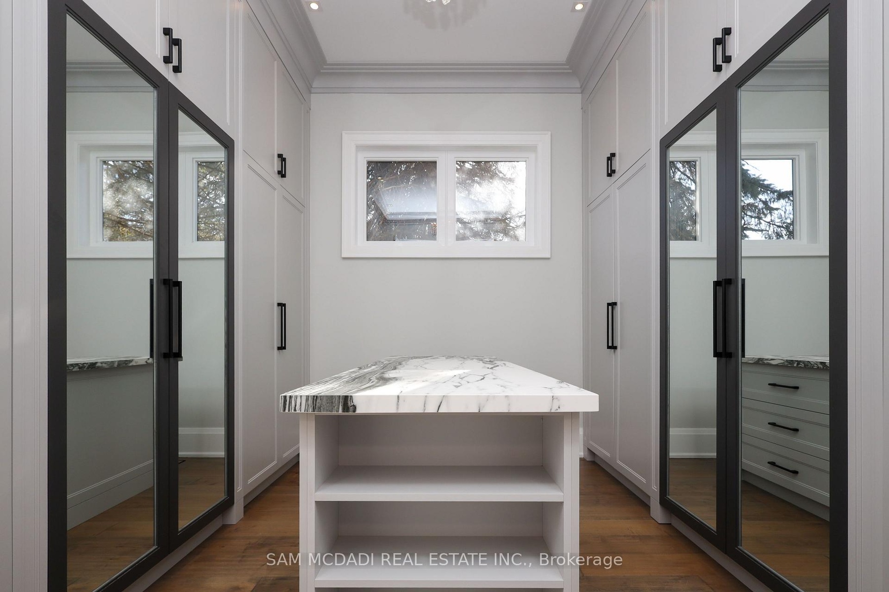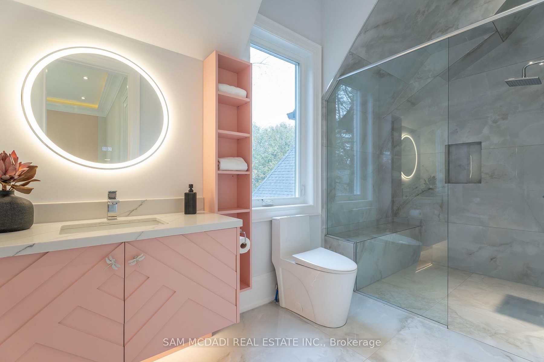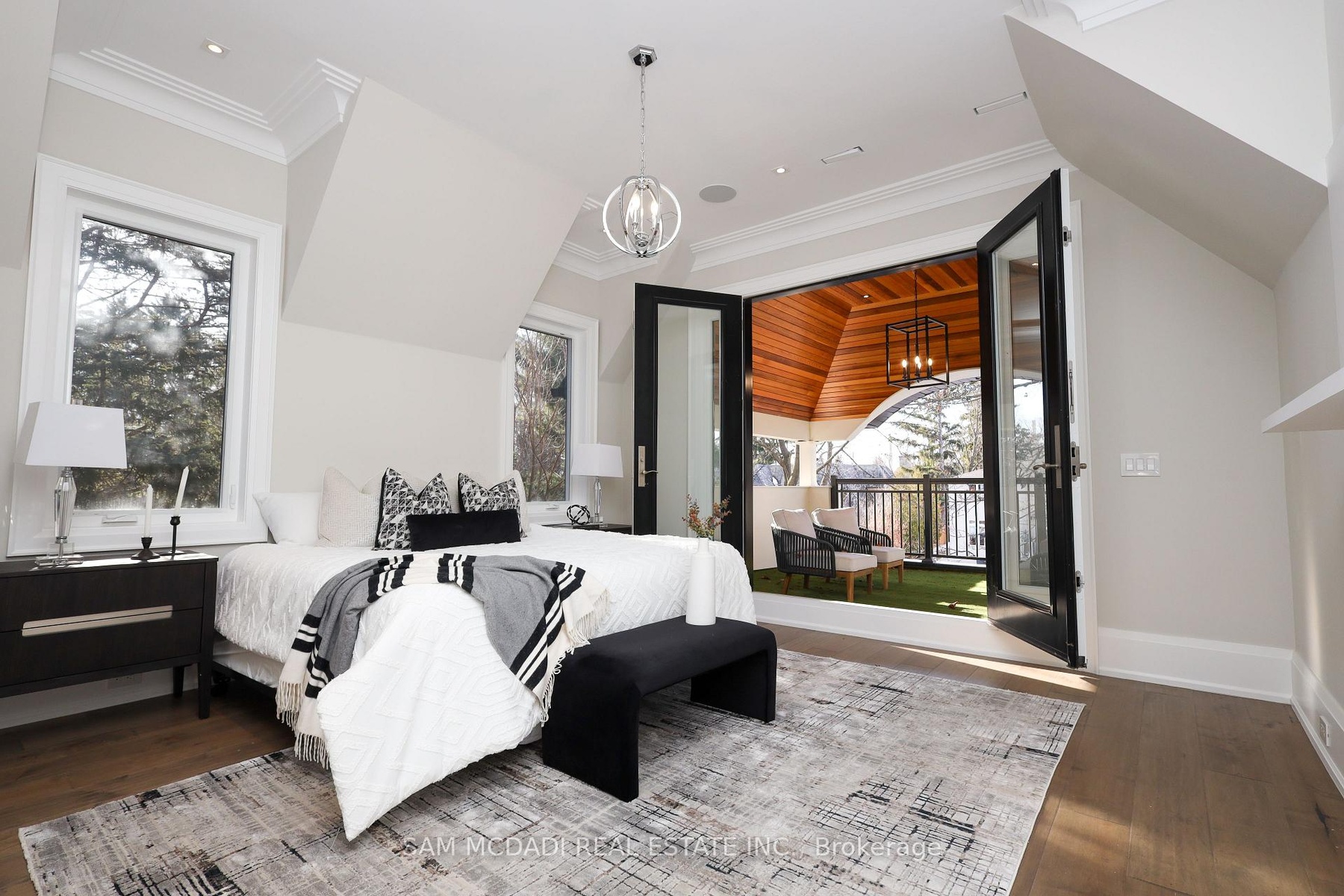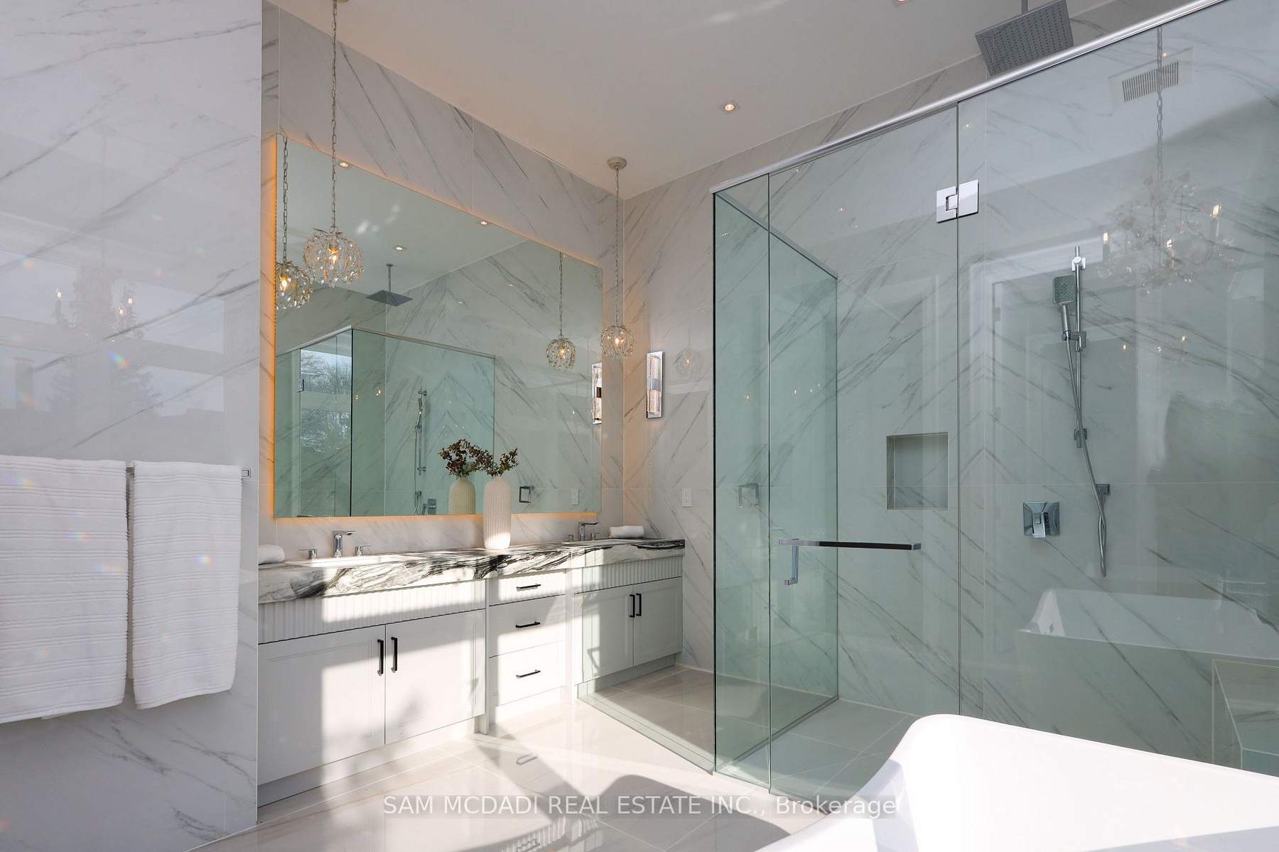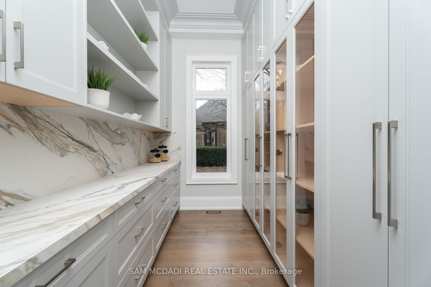 Meticulously designed on a sprawling 100' x 180' lot in the renowned Rattray Park Estates, this modern palatial beauty has been crafted with the utmost attention to detail. The well-manicured grounds encircle this home, offering 9,300 square feet of total living space with natural light radiating through expansive windows and skylights. The open-concept floor plan features prodigious living areas with soaring ceiling heights, enhanced by surround sound, illuminated LED lighting, hardwood and porcelain floors, and a Cambridge elevator accessible on all levels. Step into your gourmet kitchen, designed with a large centre island, honed porcelain counters, high-end appliances, and a butlers servery station with a walk-in pantry. The elegant family room is anchored by a striking porcelain gas fireplace that draws the eye upward, adding a sophisticated and intriguing touch. The main floor primary suite includes a luxurious five-piece ensuite with heated floors, a large walk-in closet, and a walk-out to your private patio. Upstairs, four well-appointed bedrooms each feature walk-in closets and private ensuites. This remarkable smart home also boasts: a dedicated office, a nanny and guest suite, a three-tier theatre, radiant heated floors in the basement, a second kitchen, a Control4 security system, a 400-amp electrical panel, a hot tub, multiple balconies, a twelve-car driveway, and more. The beautifully landscaped backyard is pool-sized, offering endless possibilities for outdoor living and entertaining!