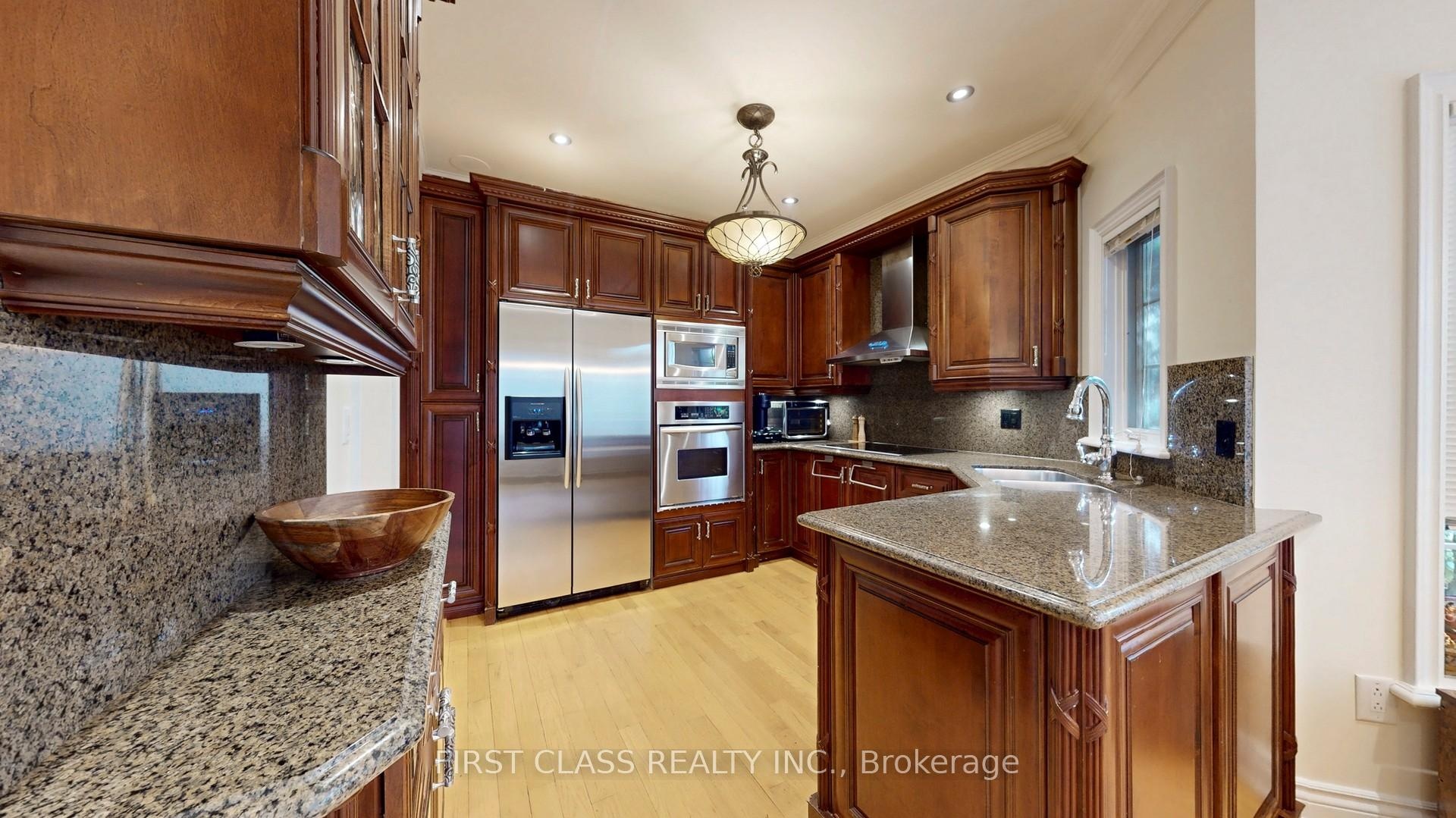 Welcome to 116 Kinloch Crescent, an exceptional home offering over 3,500 sq. ft. of finished living space on a serene, tree-lined street. This bright and elegant home features 18' cathedral ceilings and 9' ceilings on the main floor, creating a grand sense of space and light. Step inside to a spacious foyer leading to formal living and dining rooms with coffered ceilings and large windows that fill the home with natural light. The gourmet kitchen boasts granite countertops, stainless steel appliances, and opens to a cozy family room with a gas fireplace, perfect for entertaining or relaxing. The main-floor primary suite offers a large space with an ensuite bathroom. Upstairs, the loft level includes two additional bedrooms and a 4-piece bath. One currently showcased as a library with a gas fireplace. The fully finished basement with separate entrance, second kitchen, laundry, and bathroom provides flexibility for in-laws, guests, or potential rental income. Outside, enjoy the gardens, mature trees, large deck, and gazebo offering a peaceful and private backyard oasis. Located close to key amenities such as top-rated schools, parks, shopping, dining, transit, hospitals, and major highways making it an ideal choice for timeless charm and modern convenience right at your doorstep.