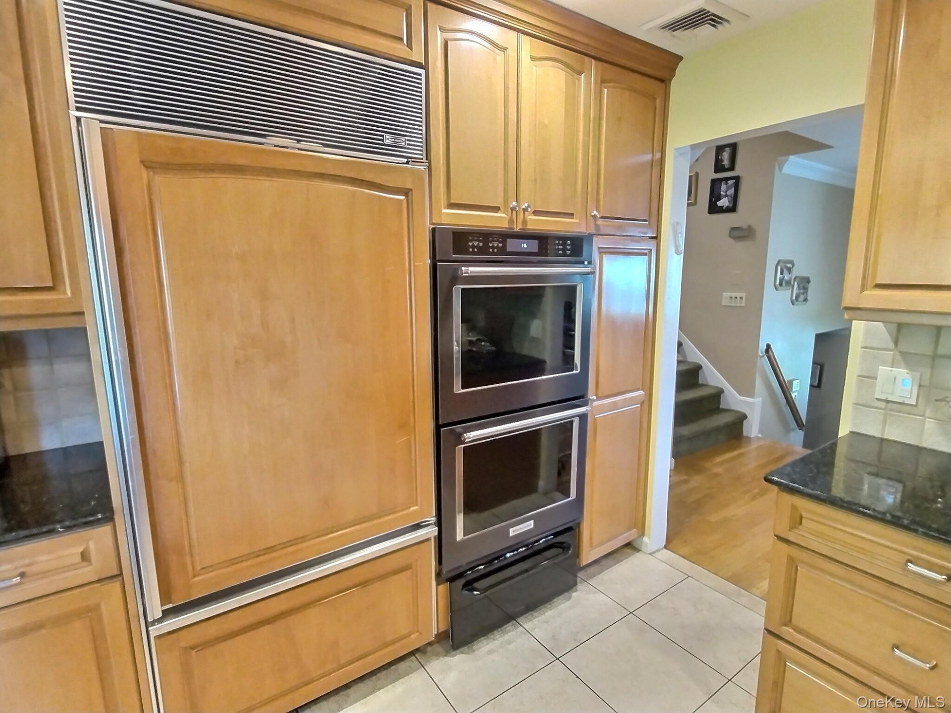 The main level features a formal living room, formal dining room, and an eat-in kitchen equipped with two sinks, two dishwashers, double oven with warming drawer, granite countertops, and direct access to the backyard – ideal for entertaining.