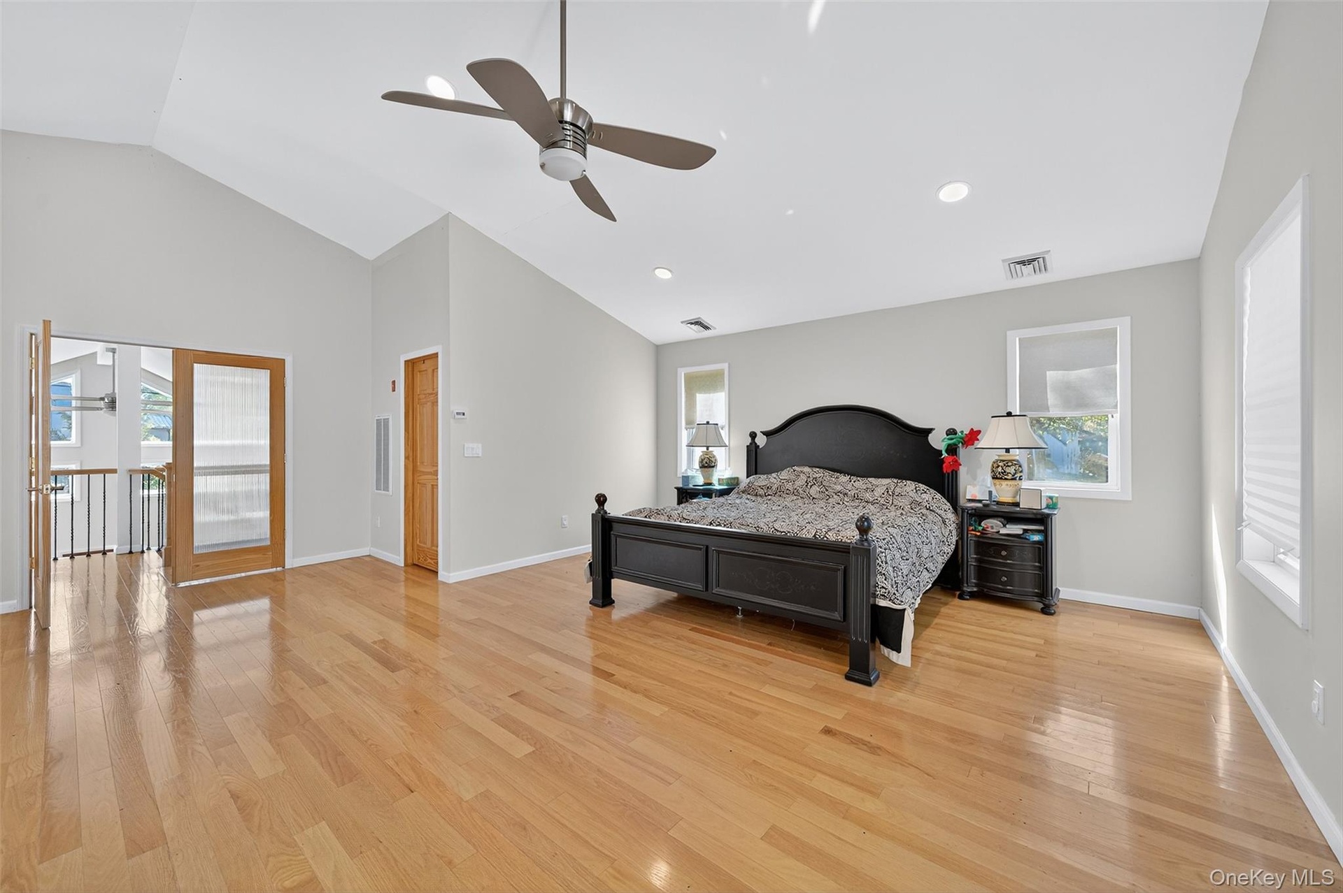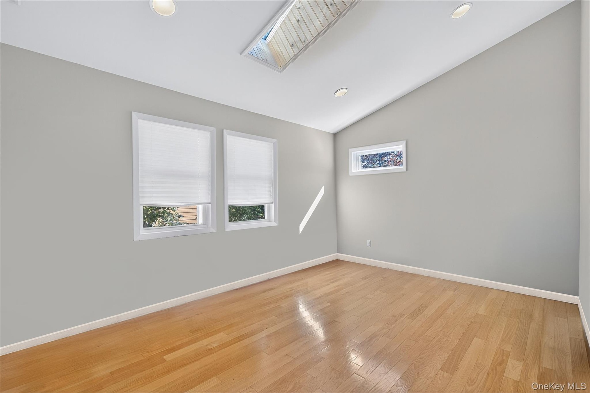 The entire upper level is comprised of the primary suite. It offers a massive bedroom area, a sitting area which has space for a home office, a walk-in closet, and a large en-suite bathroom with a soaking tub and separate shower. There is a private porch off the bedroom that overlooks the backyard.