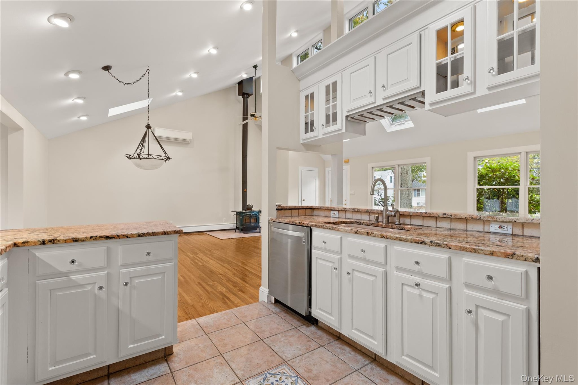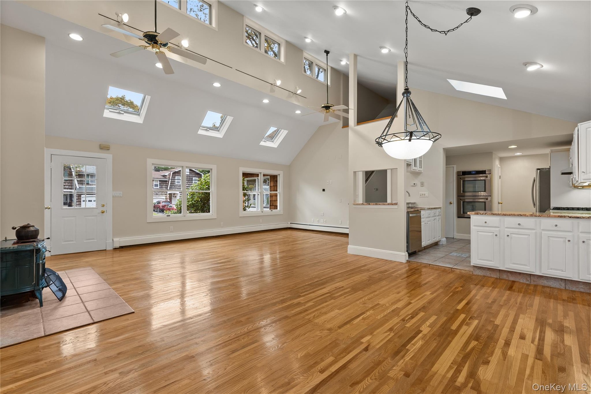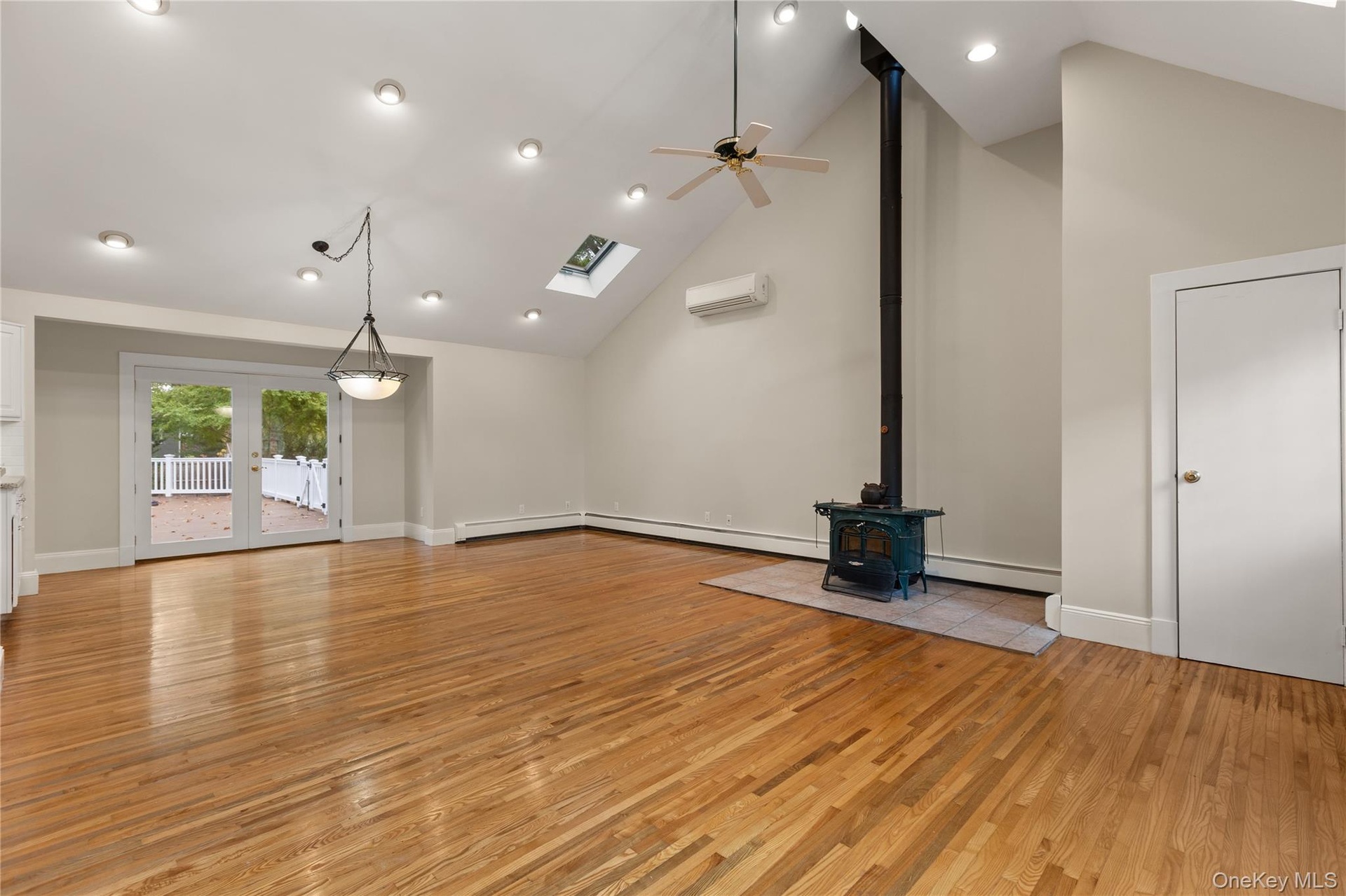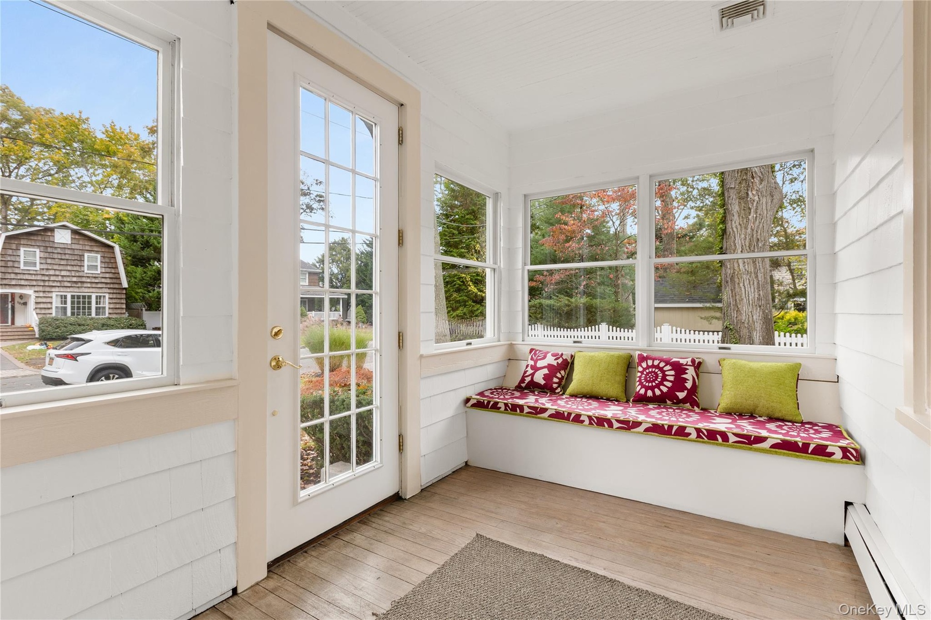 Move right into this beautifully updated Expanded Cape nestled in the heart of Northport Village on a spacious .34-acre lot. This charming home offers modern updates throughout while maintaining classic village appeal. Step into the enclosed front porch, perfect for relaxing year-round, and continue into a sun-filled family room featuring stunning cathedral ceilings, a Vermont Castings wood-burning stove, ash wood floors, and a mini-split system overlooking the updated kitchen with stainless steel appliances (including a double wall oven), granite countertops, new subway tile backsplash, and new cooktop exhaust fan. The main floor also includes a living room, two bedrooms, a full bath with radiant heated floors, new vanity, sink, and faucet, plus a powder room with new vanity and toilet. Upstairs retreat to your primary suite featuring a full bathroom, generous closet space and additional storage. Additional highlights include refinished hardwood floors, a freshly painted interior and finished basement with large cedar closet and new LED lighting throughout. Central air conditioning services the three bedrooms, full bath, front porch, and living room. The first-floor laundry area is equipped with water and electric hookups ready for washer and dryer installation. Step outside to enjoy the semi in-ground pool and newly resurfaced rear deck made of low-maintenance synthetic materials, surrounded by new PVC fencing with double self-closing, latching gates on both ends and Igs.  The recently painted exterior enhances this home’s crisp curb appeal. A perfect blend of modern upgrades, energy efficiency, and timeless charm—all just minutes from Northport Village shops, restaurants, harbor, and schools. Taxes $9334 plus village $3484