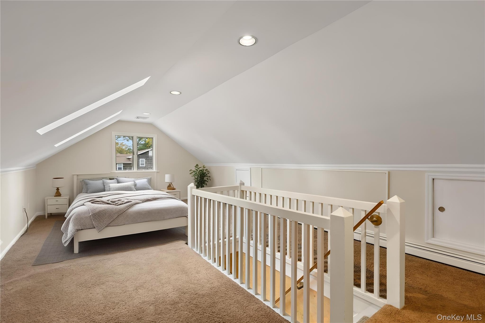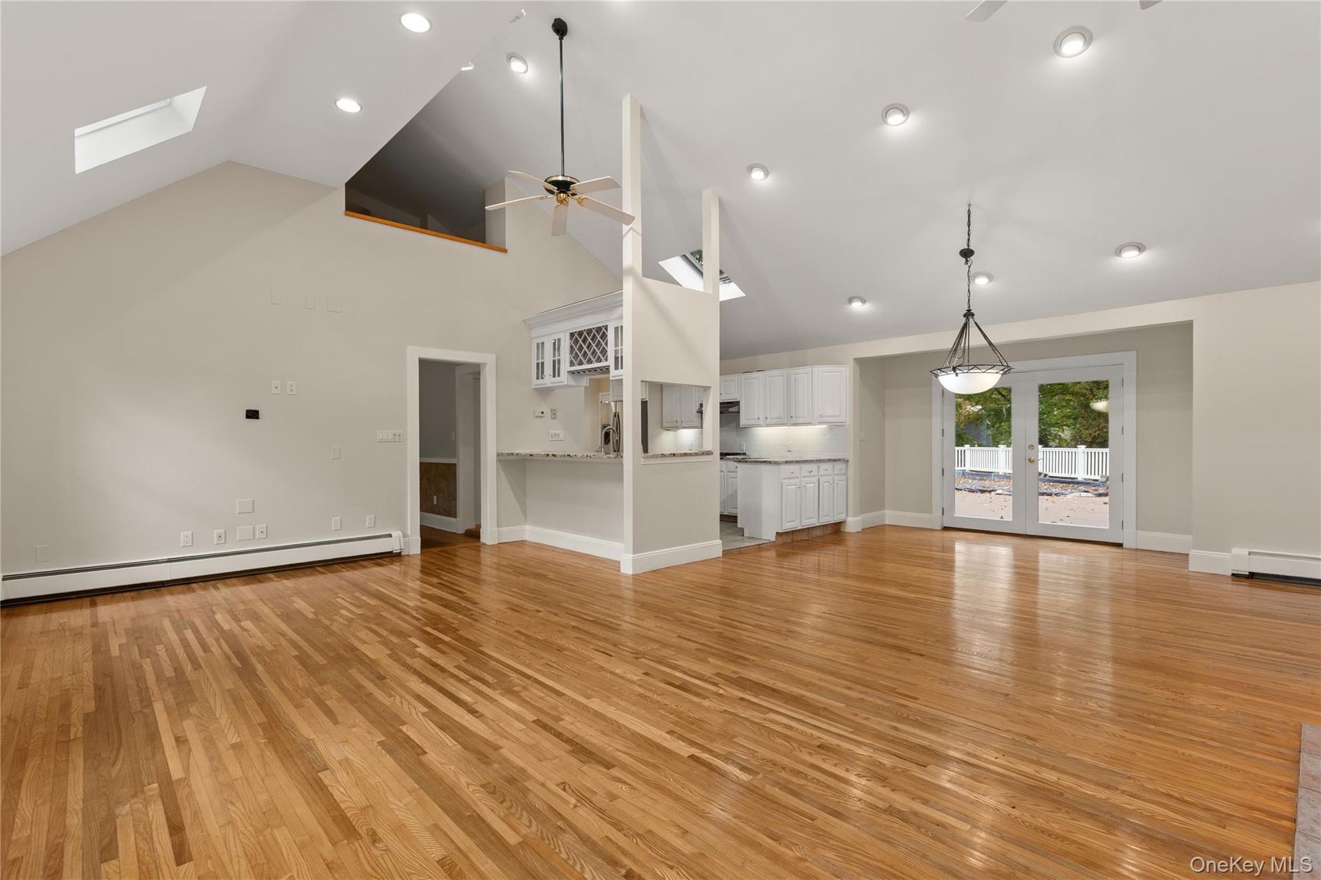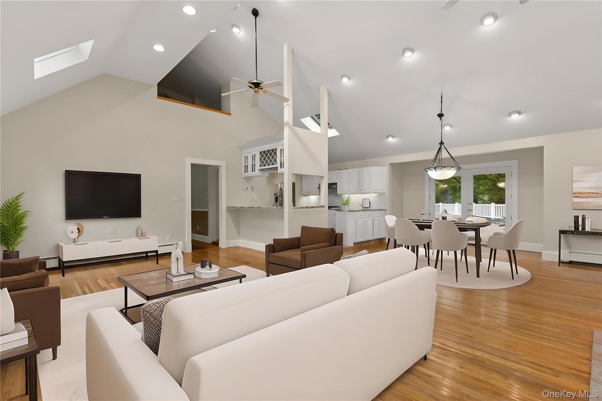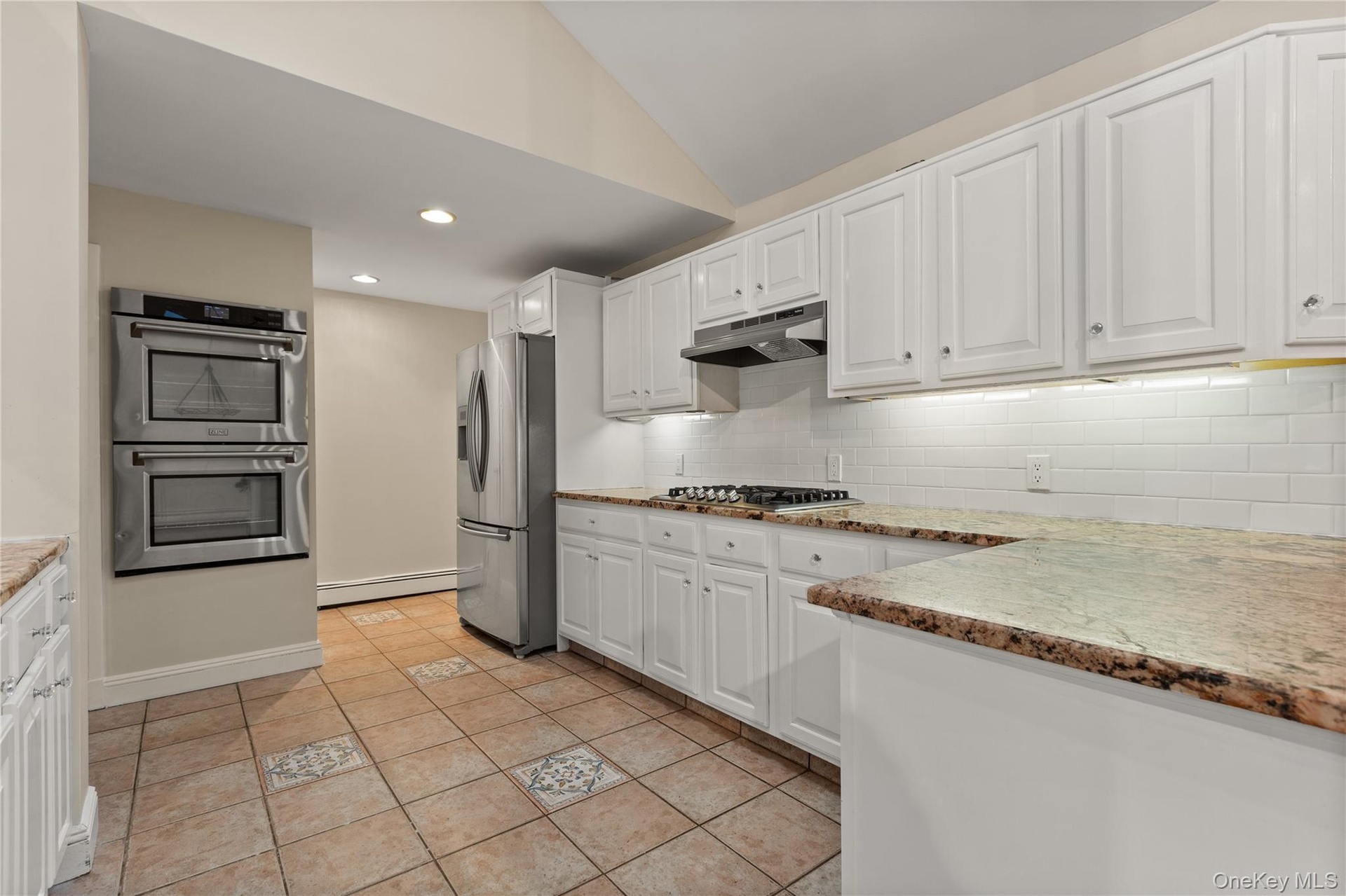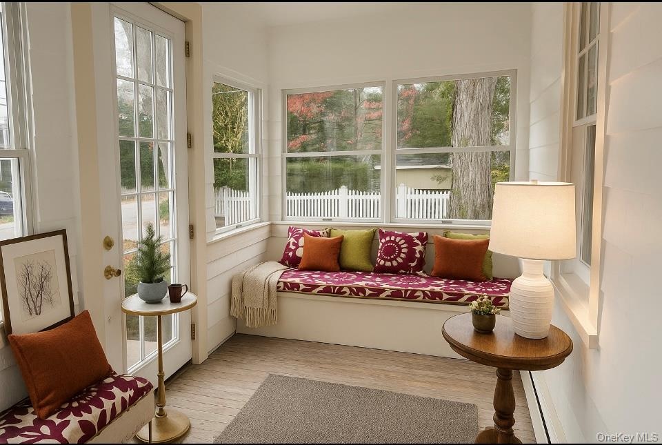 Move right into this beautifully updated Expanded Cape nestled in the heart of Northport Village on a spacious .34-acre lot. This charming home offers modern updates throughout while maintaining classic village appeal. Step into the enclosed front porch, perfect for relaxing year-round, and continue into a sun-filled family room featuring stunning cathedral ceilings, a Vermont Castings wood-burning stove, ash wood floors, and a mini-split system overlooking the updated kitchen with stainless steel appliances (including a double wall oven), granite countertops, new subway tile backsplash, and new cooktop exhaust fan. The main floor also includes a living room, two bedrooms, a full bath with radiant heated floors, new vanity, sink, and faucet, plus a powder room with new vanity and toilet. Upstairs retreat to your primary suite featuring a full bathroom, generous closet space and additional storage. Additional highlights include refinished hardwood floors, a freshly painted interior and finished basement with large cedar closet and new LED lighting throughout. Central air conditioning services the three bedrooms, full bath, front porch, and living room. The first-floor laundry area is equipped with water and electric hookups ready for washer and dryer installation. Step outside to enjoy the semi in-ground pool and newly resurfaced rear deck made of low-maintenance synthetic materials, surrounded by new PVC fencing with double self-closing, latching gates on both ends and Igs.  The recently painted exterior enhances this home’s crisp curb appeal. A perfect blend of modern upgrades, energy efficiency, and timeless charm—all just minutes from Northport Village shops, restaurants, harbor, and schools. Taxes $9334 plus village $3484