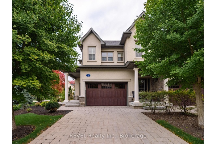 Luxury Living in the Heart of Niagara-on-the-Lake. Welcome to 7 Aberdeen Lane S, an elegant executive townhome offering sophisticated, low-maintenance living just steps from the charm of Old Town. This beautifully designed residence combines modern comfort, timeless style, and an unbeatable location in one of Ontario's most desirable communities. The bright open-concept main floor features hardwood flooring, high ceilings, and oversized windows that flood the space with natural light. The gourmet kitchen showcases premium cabinetry, stainless-steel appliances, quartz countertops, and a large island perfect for entertaining. The adjoining dining and living areas flow seamlessly to a private balcony overlooking the landscaped courtyard - ideal for relaxing with morning coffee or evening wine. Upstairs, the spacious primary suite offers a walk-in closet and spa-inspired ensuite with glass shower and double vanity. A second bedroom and full bath provide comfort for guests or family. The lower level includes a versatile space perfect for a home office, media room, or guest suite, complete with a full bathroom. Enjoy the convenience of an in-home elevator connecting all levels, a private garage with interior access, and low condo maintenance that lets you focus on enjoying the Niagara lifestyle. Situated within walking distance of boutique shops, renowned restaurants, world-class wineries, and the Shaw Festival Theatre, this property delivers exceptional living in an unbeatable location. Experience refined living, effortless comfort, and timeless Niagara-on-the-Lake charm at 7 Aberdeen Lane S.