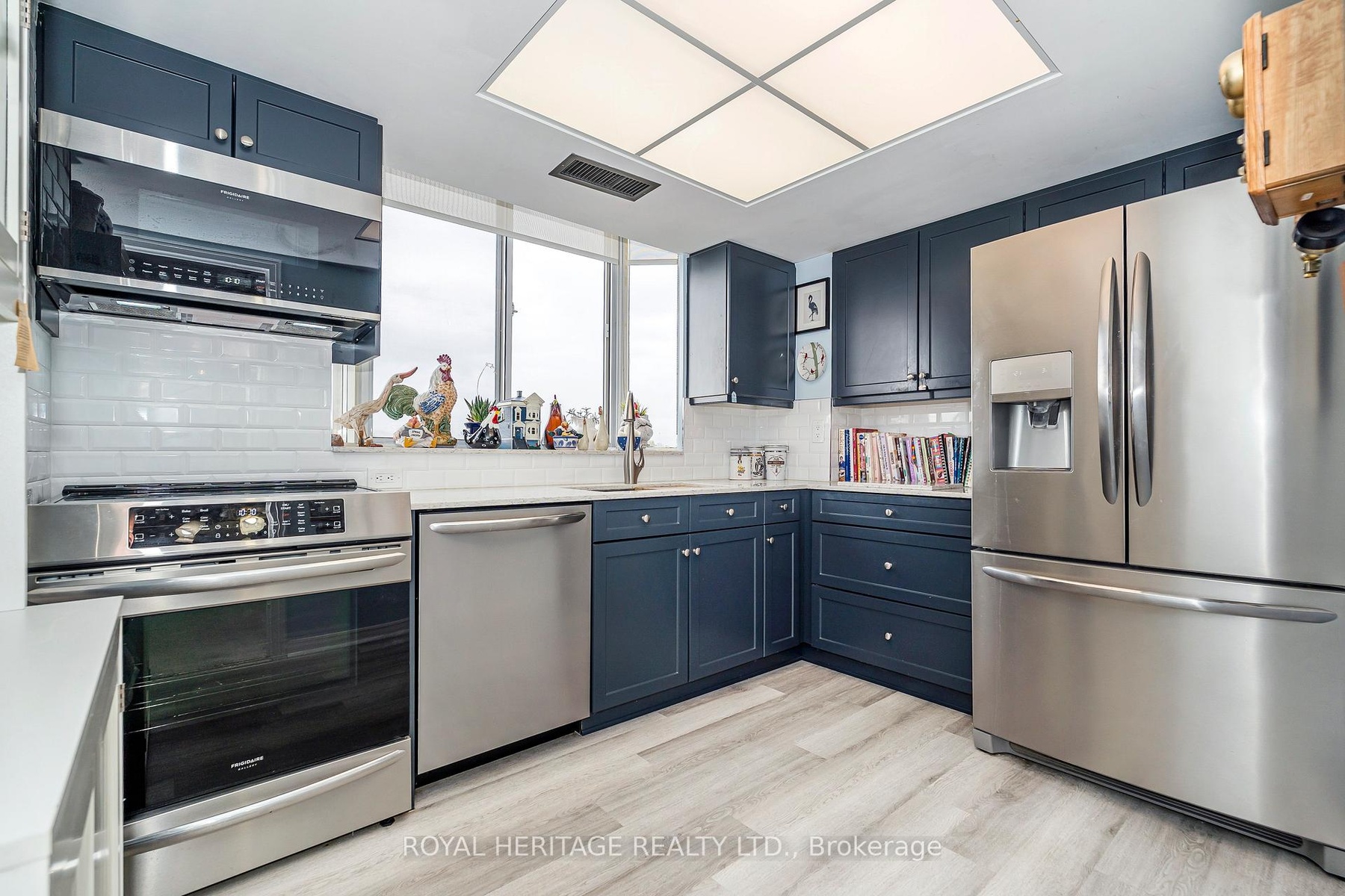 Sunfilled corner unit with beautiful southeast views above the trees and located in the heart of Newmarket. Prime location in this building, 2 bedroom, 2 bathroom with over 1000 square feet of living space. Generous room sizes, updated kitchen with stainless steel appliances, full sized laundry units, separate utility closet, blinds throughout. Conveniently located close to transit, GO, Upper Canada Mall, restaurants, boutique & box stores, hospital and more. Pool is currently not in use and to be refurbished as per mgmt.