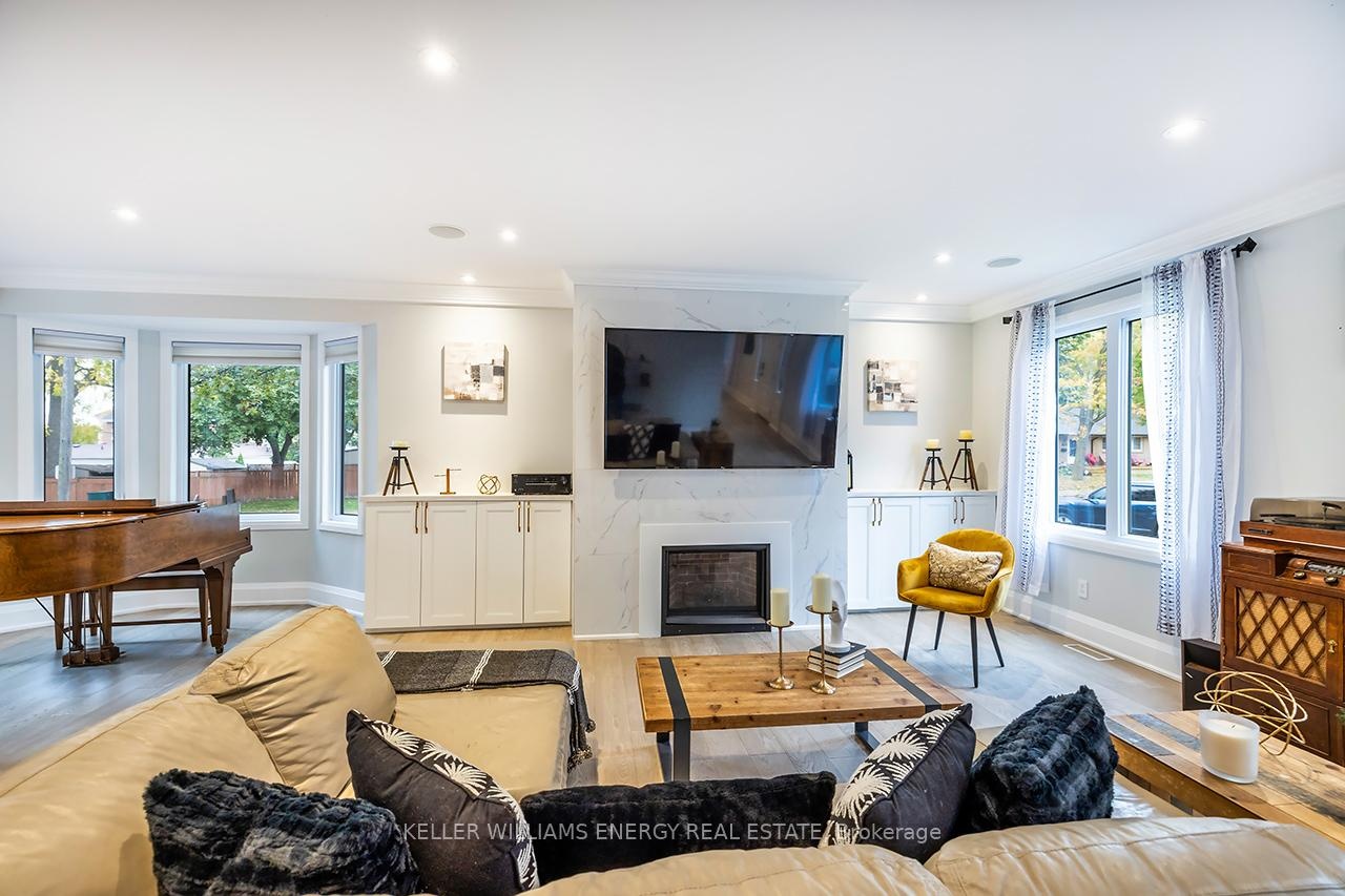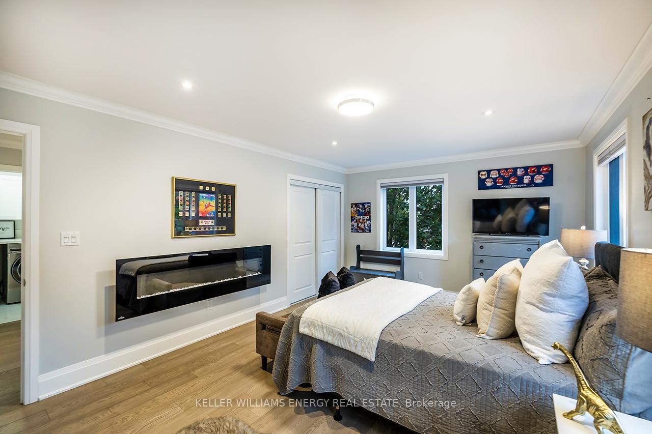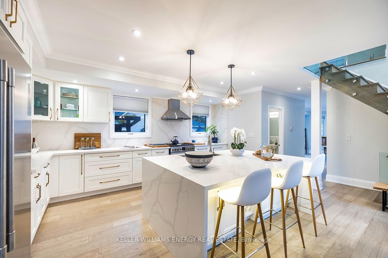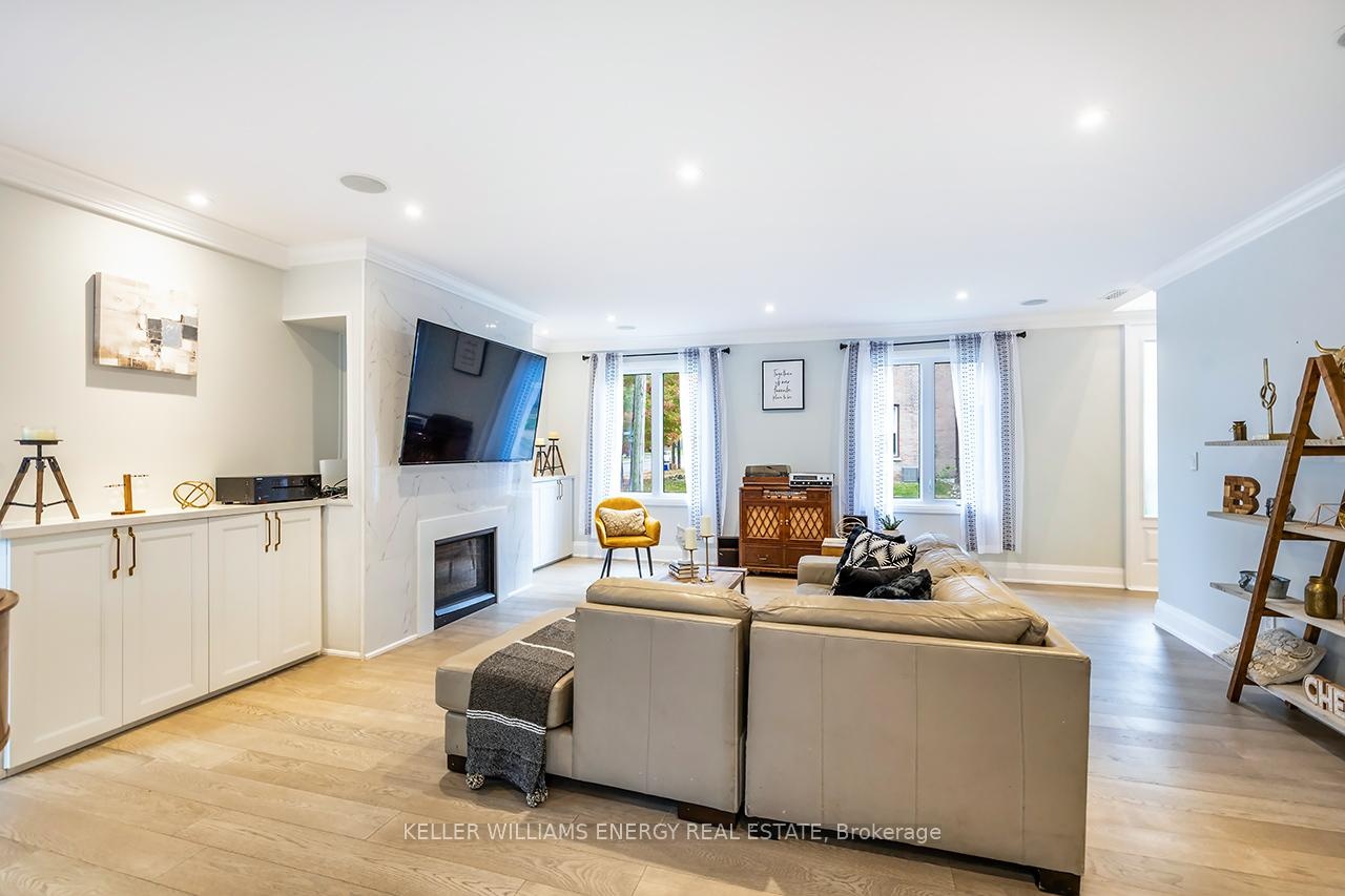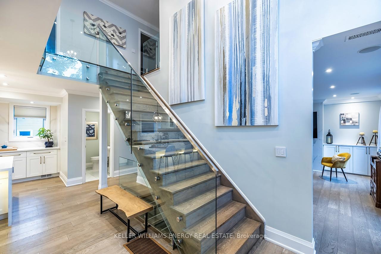 A space you'll fall for! This custom-built 4+1 bedrm, 4-bath home blends timeless design with modern comfort, offering an unparalleled living experience, ideal for families or multi-generational living. Fr the moment you enter, the stunning 20 ft foyer where a breathtaking glass staircase serves as the centerpiece, leading gracefully to the upper level & setting the tone for the modern elegance found throughout. The chef-inspired kitchen is a showstopper, featuring quartz counters, backsplash, waterfall island, gas stove, custom cabinetry, professional b/i fridge & freezer, under-cabinet lighting & integrated surround sound-perfect for everyday living or entertaining. The spacious living room offers a separate entrance, gas fireplace, b/i cabinetry & an abundance of natural light, blending comfort & style. Upstairs, you'll find 4 generous bedrms & a convenient 2nd flr laundry rm with motion-sensor lighting. The primary suite is a true retreat with cathedral ceilings, a spa-inspired ensuite & w/i closet. One of the additional bedrms includes a sleek electric fireplace, adding warmth & charm. The lower level offers exceptional versatility for extended family or guests, boasting a large Open concept family rm, fifth bedrm with w/i closet & a 3 pc ensuite. With pot lights, hardwood flring & above-grade windows, the space feels bright, open, & inviting. Step outside to a professionally landscaped, low-maintenance backyard designed for privacy & relaxation. Featuring interlocked stamped concrete, custom gardens & a hot tub, every element of the outdoor space has been thoughtfully curated for year-round enjoyment. Parking is unmatched with both a private triple driveway & a separate private double driveway, offering exceptional space & flexibility.With unparalleled upgrades, a functional multi-generational layout & a prime location this rare gem combines luxury, lifestyle & comfort in one extraordinary package.Don't miss your chance to call this truly unique property home!