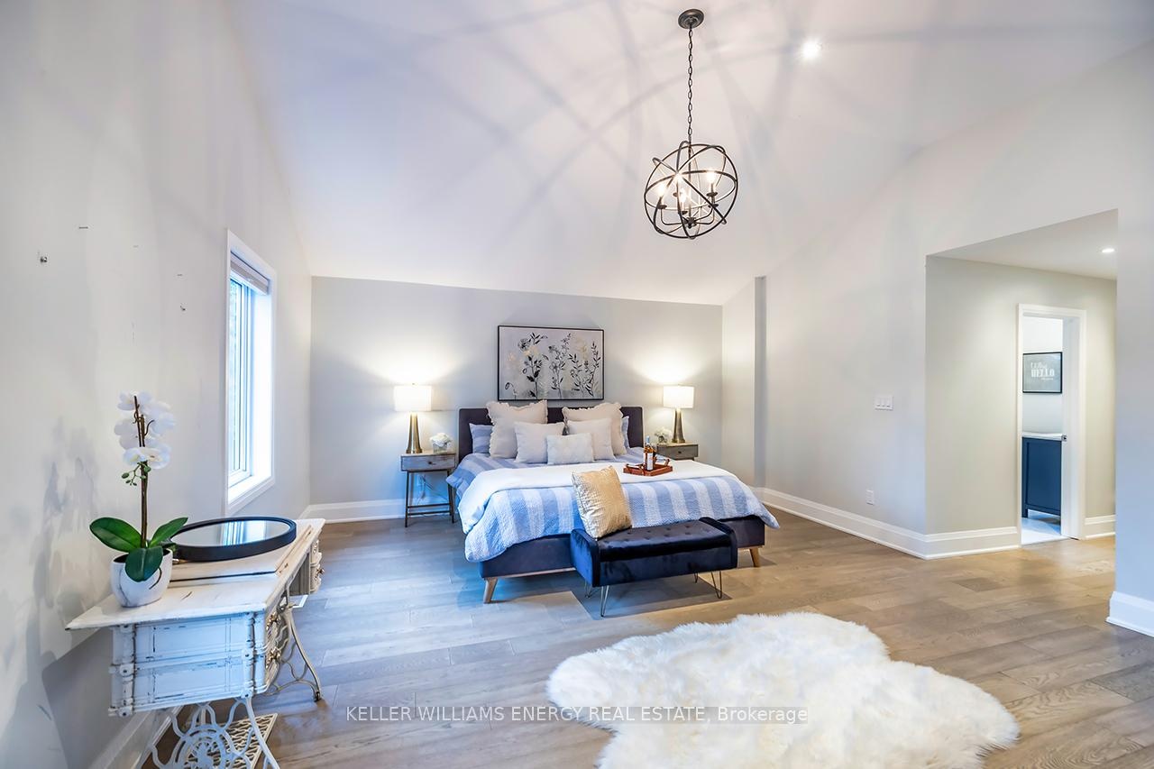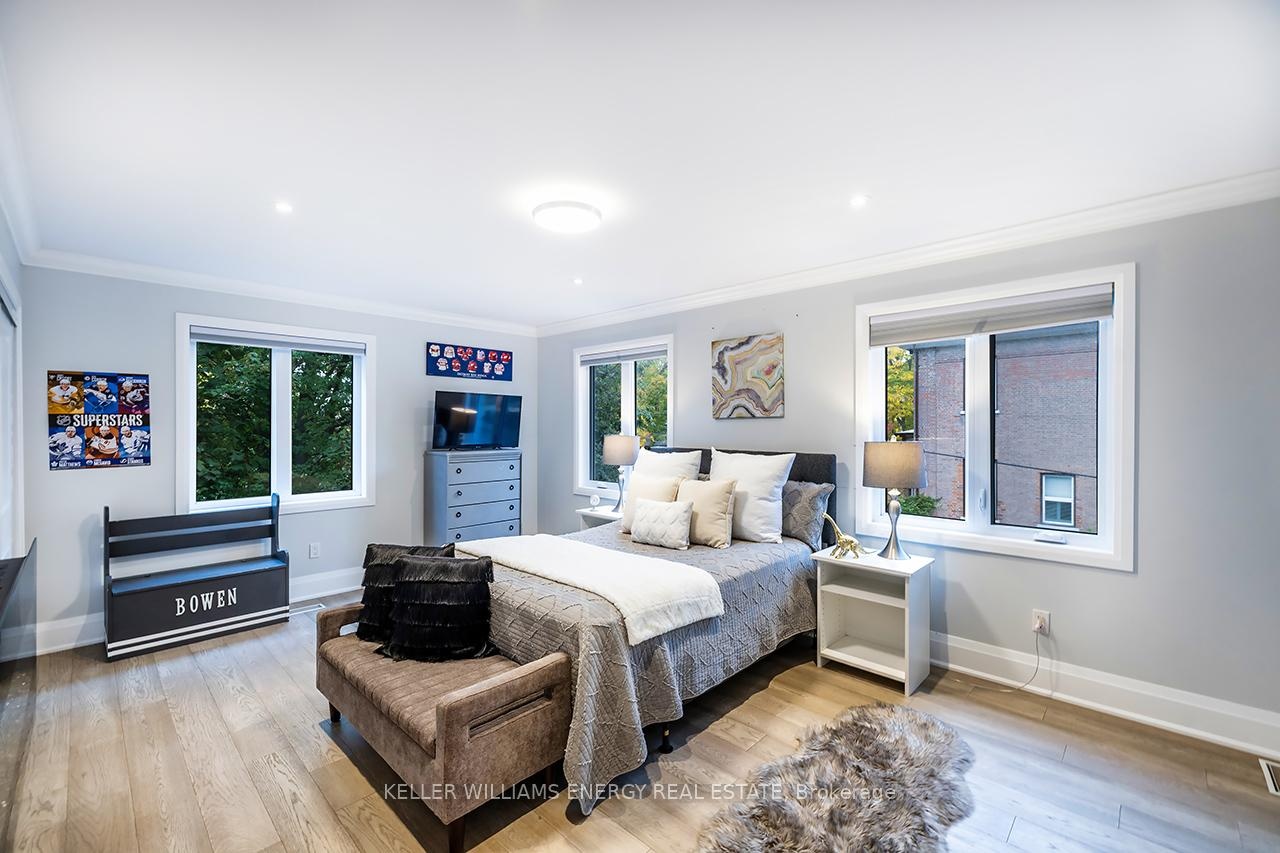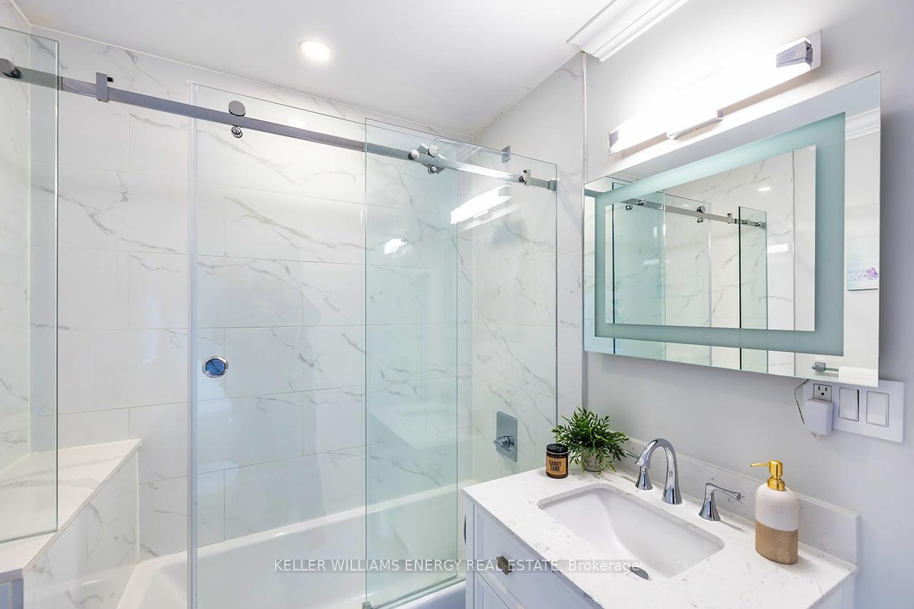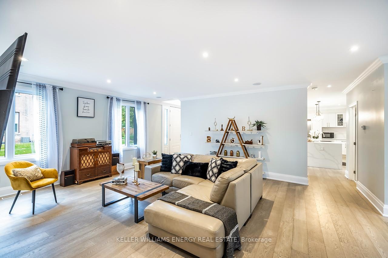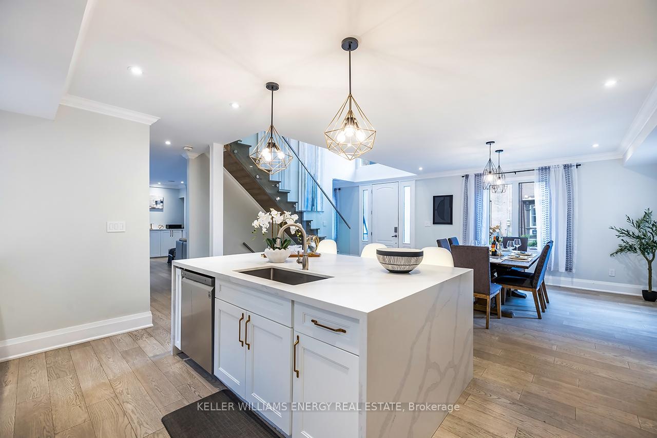 A space you'll fall for! This custom-built 4+1 bedrm, 4-bath home blends timeless design with modern comfort, offering an unparalleled living experience, ideal for families or multi-generational living. Fr the moment you enter, the stunning 20 ft foyer where a breathtaking glass staircase serves as the centerpiece, leading gracefully to the upper level & setting the tone for the modern elegance found throughout. The chef-inspired kitchen is a showstopper, featuring quartz counters, backsplash, waterfall island, gas stove, custom cabinetry, professional b/i fridge & freezer, under-cabinet lighting & integrated surround sound-perfect for everyday living or entertaining. The spacious living room offers a separate entrance, gas fireplace, b/i cabinetry & an abundance of natural light, blending comfort & style. Upstairs, you'll find 4 generous bedrms & a convenient 2nd flr laundry rm with motion-sensor lighting. The primary suite is a true retreat with cathedral ceilings, a spa-inspired ensuite & w/i closet. One of the additional bedrms includes a sleek electric fireplace, adding warmth & charm. The lower level offers exceptional versatility for extended family or guests, boasting a large Open concept family rm, fifth bedrm with w/i closet & a 3 pc ensuite. With pot lights, hardwood flring & above-grade windows, the space feels bright, open, & inviting. Step outside to a professionally landscaped, low-maintenance backyard designed for privacy & relaxation. Featuring interlocked stamped concrete, custom gardens & a hot tub, every element of the outdoor space has been thoughtfully curated for year-round enjoyment. Parking is unmatched with both a private triple driveway & a separate private double driveway, offering exceptional space & flexibility.With unparalleled upgrades, a functional multi-generational layout & a prime location this rare gem combines luxury, lifestyle & comfort in one extraordinary package.Don't miss your chance to call this truly unique property home!
