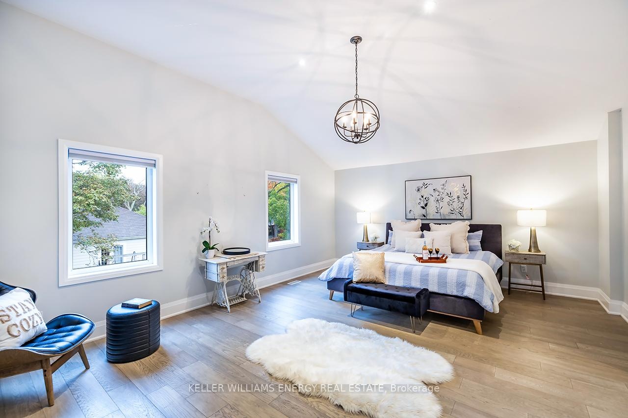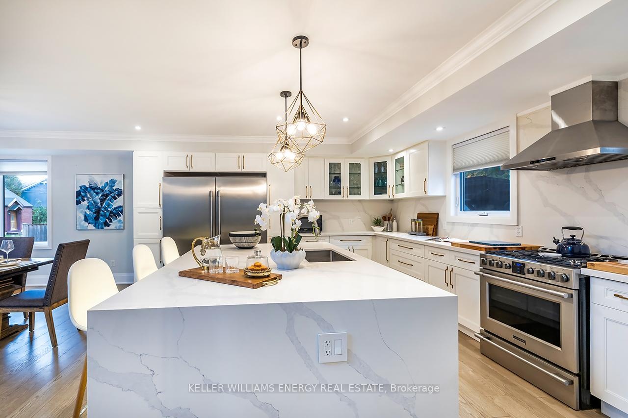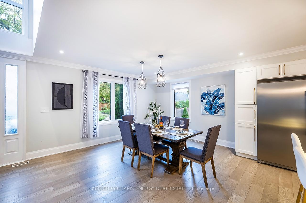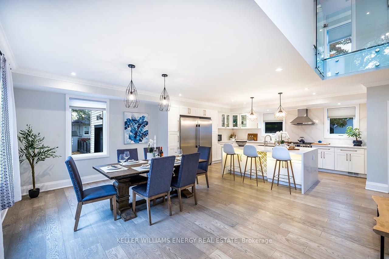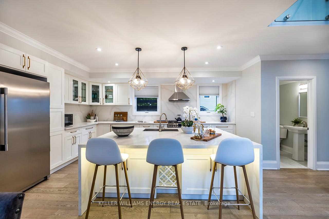 A space you'll fall for! This custom-built 4+1 bedrm, 4-bath home blends timeless design with modern comfort, offering an unparalleled living experience, ideal for families or multi-generational living. Fr the moment you enter, the stunning 20 ft foyer where a breathtaking glass staircase serves as the centerpiece, leading gracefully to the upper level & setting the tone for the modern elegance found throughout. The chef-inspired kitchen is a showstopper, featuring quartz counters, backsplash, waterfall island, gas stove, custom cabinetry, professional b/i fridge & freezer, under-cabinet lighting & integrated surround sound-perfect for everyday living or entertaining. The spacious living room offers a separate entrance, gas fireplace, b/i cabinetry & an abundance of natural light, blending comfort & style. Upstairs, you'll find 4 generous bedrms & a convenient 2nd flr laundry rm with motion-sensor lighting. The primary suite is a true retreat with cathedral ceilings, a spa-inspired ensuite & w/i closet. One of the additional bedrms includes a sleek electric fireplace, adding warmth & charm. The lower level offers exceptional versatility for extended family or guests, boasting a large Open concept family rm, fifth bedrm with w/i closet & a 3 pc ensuite. With pot lights, hardwood flring & above-grade windows, the space feels bright, open, & inviting. Step outside to a professionally landscaped, low-maintenance backyard designed for privacy & relaxation. Featuring interlocked stamped concrete, custom gardens & a hot tub, every element of the outdoor space has been thoughtfully curated for year-round enjoyment. Parking is unmatched with both a private triple driveway & a separate private double driveway, offering exceptional space & flexibility.With unparalleled upgrades, a functional multi-generational layout & a prime location this rare gem combines luxury, lifestyle & comfort in one extraordinary package.Don't miss your chance to call this truly unique property home!