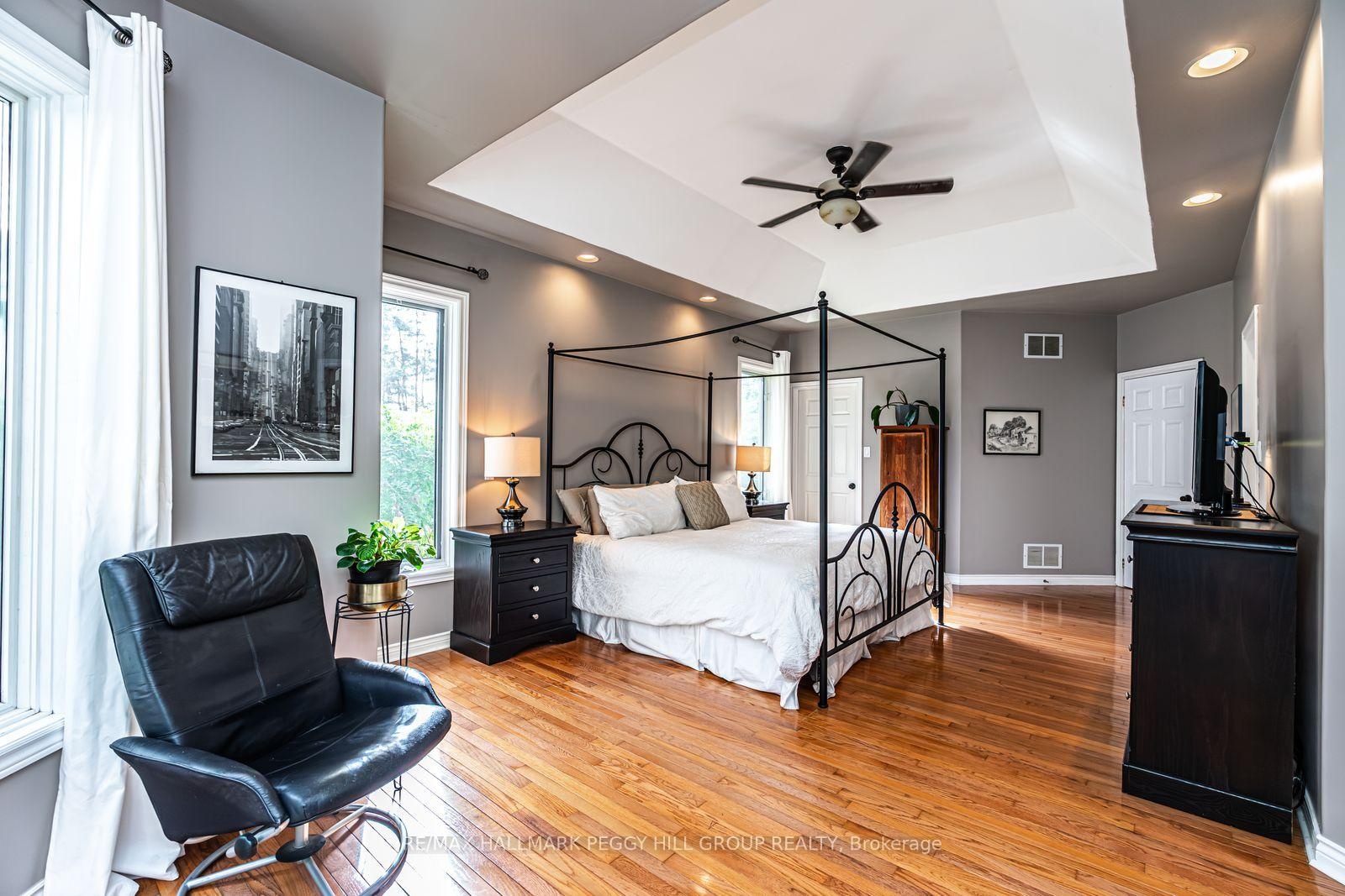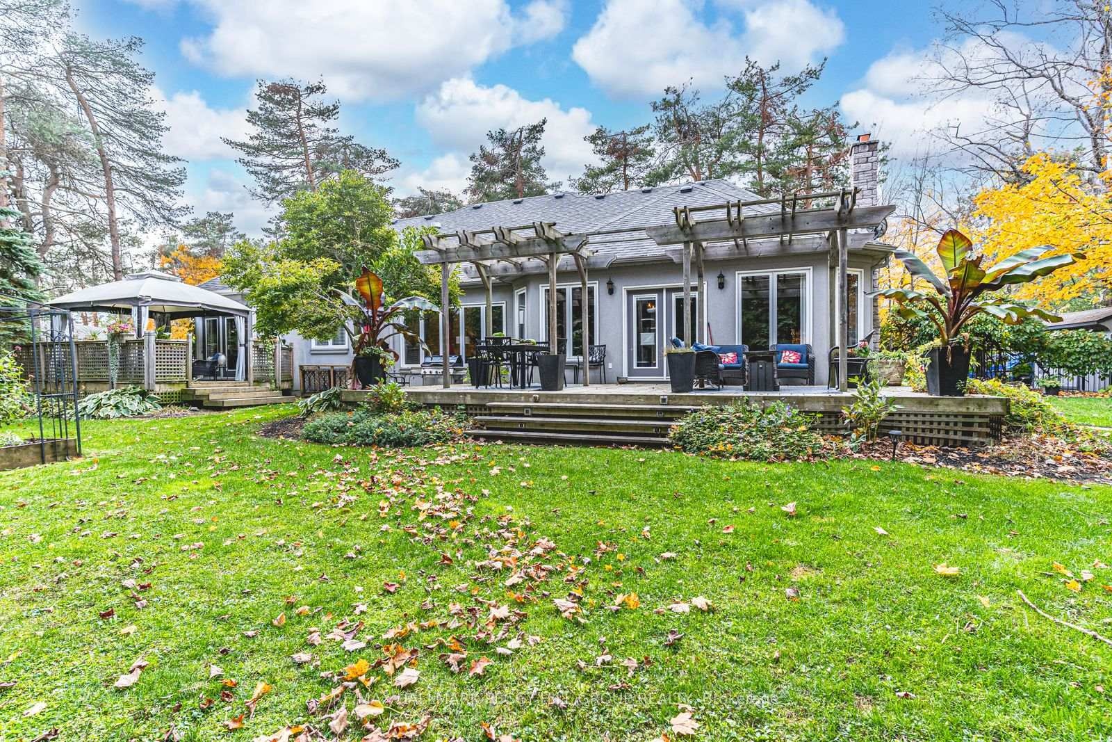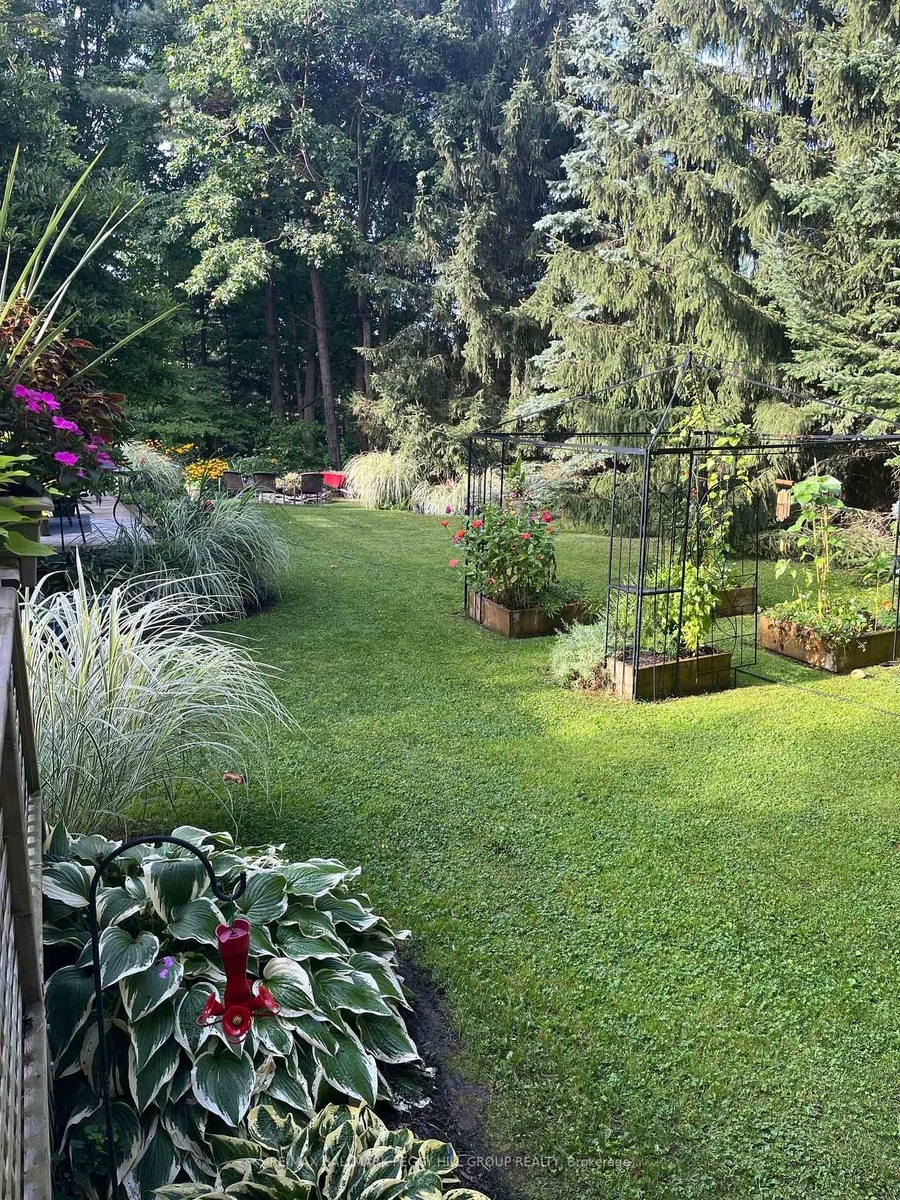 DISTINGUISHED HORSESHOE HIGHLANDS ESTATE ON A SERENE CUL-DE-SAC SETTING! Nestled on a quiet cul-de-sac in the prestigious Horseshoe Highlands, this elegant home offers over 3,650 finished sq ft of timeless style and thoughtful design, backing onto a former golf course surrounded by mature trees and manicured gardens. Sunlight fills every corner of the open-concept layout, where large windows, rounded corners, and refined lighting create an atmosphere of understated luxury. The bright kitchen features wood cabinetry, stainless steel appliances, a gas cooktop, a breakfast bar, and a breakfast area overlooking the yard. A formal dining room with soaring ceilings and dramatic arched windows creates a stunning backdrop for elegant gatherings, while the sunken family room with a tray ceiling and gas fireplace, and the living room with a wood-burning fireplace and wet bar, offer warm and inviting spaces to unwind. The primary suite feels like a private retreat with dual walk-in closets, a five-piece ensuite featuring a dual-sink vanity, a glass-walled shower, a soaker tub, and a walkout to its own secluded deck through double garden doors. Two additional bedrooms share a stylish three-piece bath, while a convenient main-floor laundry adds everyday ease. The partially finished lower level offers a generous recreation room, office, wine cellar, and three-piece bath, providing versatility for any lifestyle. Outdoors, a fully fenced yard with two decks, including one featuring dual pergolas, is framed by lush landscaping, vibrant gardens, and vegetable beds. A double-car garage with inside entry and driveway parking for up to ten vehicles completes this exceptional property. Perfectly positioned within minutes of the new elementary school, community centre, medical clinic, park, and tennis courts, and under 20 minutes from Barrie's RVH and Georgian College, with year-round recreation close at hand, including skiing, golf, hiking, and Vetta Nordic Spa.
