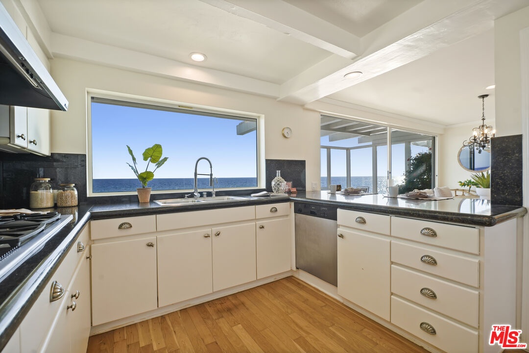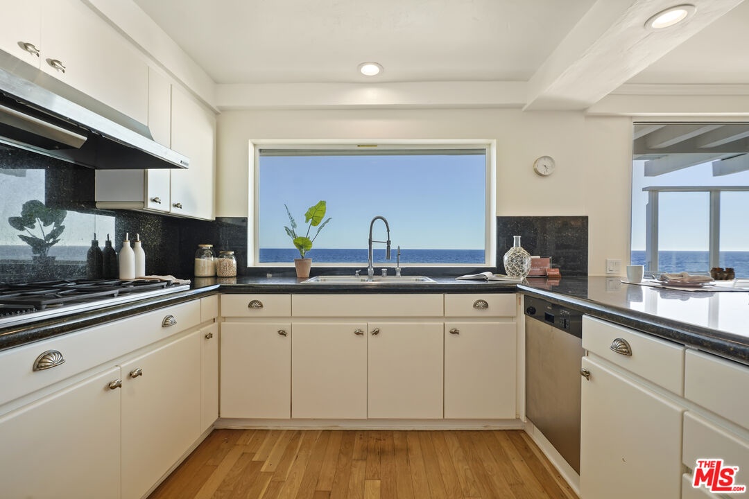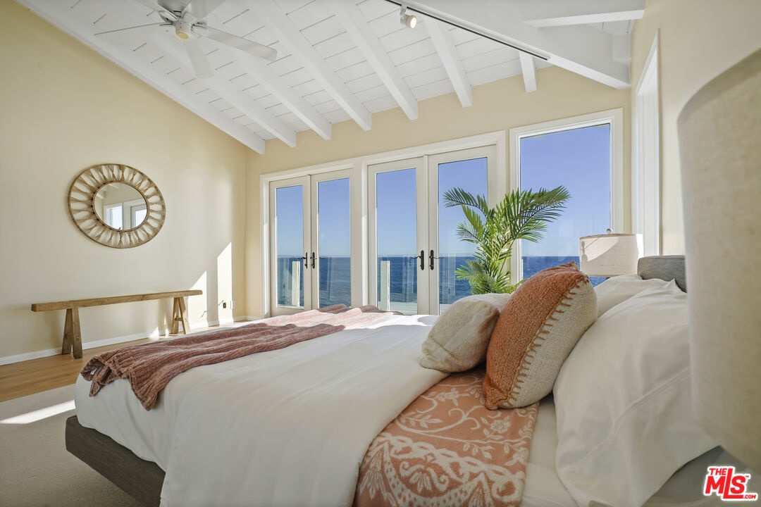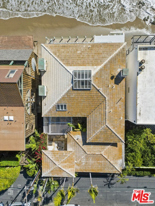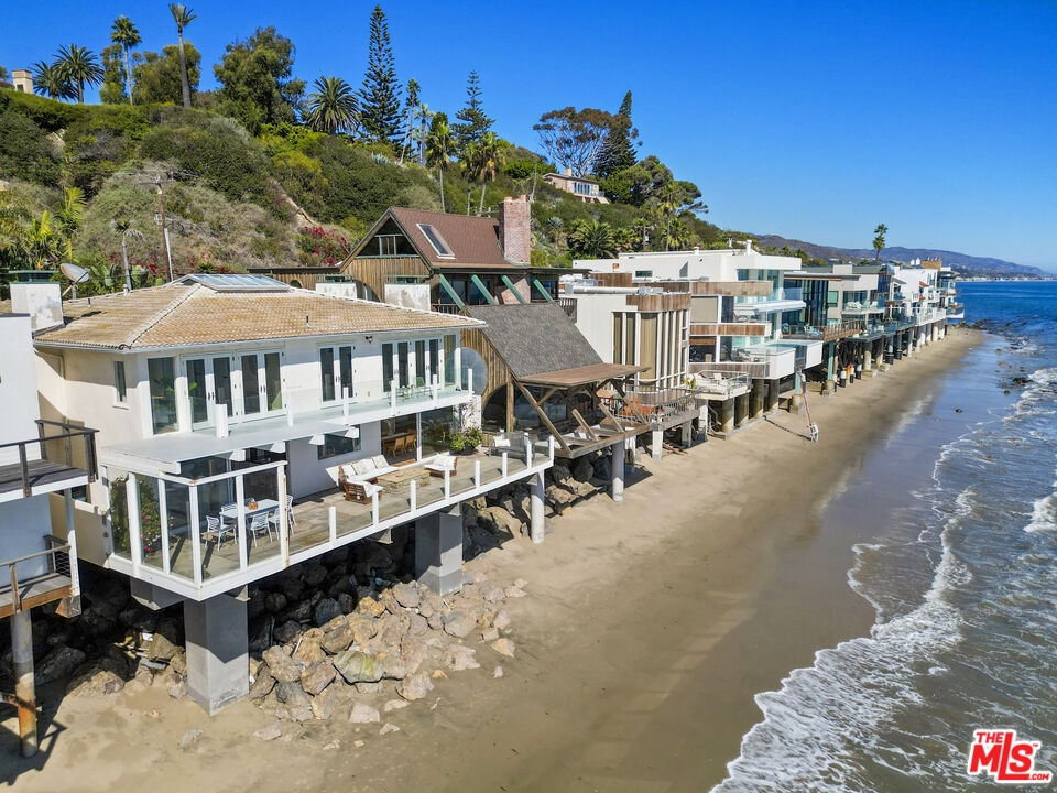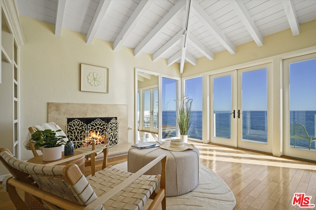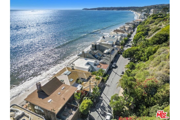 Enjoy the art of beachfront living in this elegant five-bedroom home, ideally situated on a guard-gated street for the ultimate in exclusivity and peace of mind. A serene courtyard entry welcomes you into a covered loggia with a soothing spa, outdoor fireplace, and lush greenery creating a tranquil oasis before you even step inside. Upon entering, rich hardwood floors flow seamlessly throughout the home's sunlit, open-concept layout. Both the living and family rooms feature fireplaces, sweeping ocean, coastline and city light views, opening directly onto an expansive seaside deck with a fire pit perfect for effortless entertaining and sunset gatherings. The main level includes a private en-suite bedroom with its own entrance, ideal for guests. Upstairs, the oceanfront primary suite offers a private balcony, fireplace, and walk-in closet, creating a true sanctuary with panoramic views of the Pacific. Three additional bedrooms complete the upper level, each bright and spacious. Three additional bedrooms complete the upper level, and all feature vaulted, beamed ceilings that enhance their bright, airy, coastal charm. Set directly on the sand, the entertainer's deck offers direct access to the water's edge and your own charming surf shack. Modern comforts include an electric car charger, a three-car garage, and additional private parking. Blending luxury with relaxed coastal living, this home perfectly captures the essence of life at the beach.