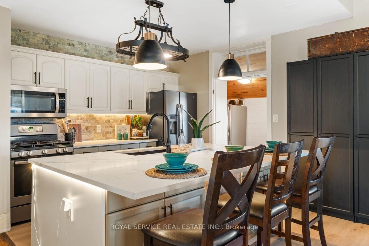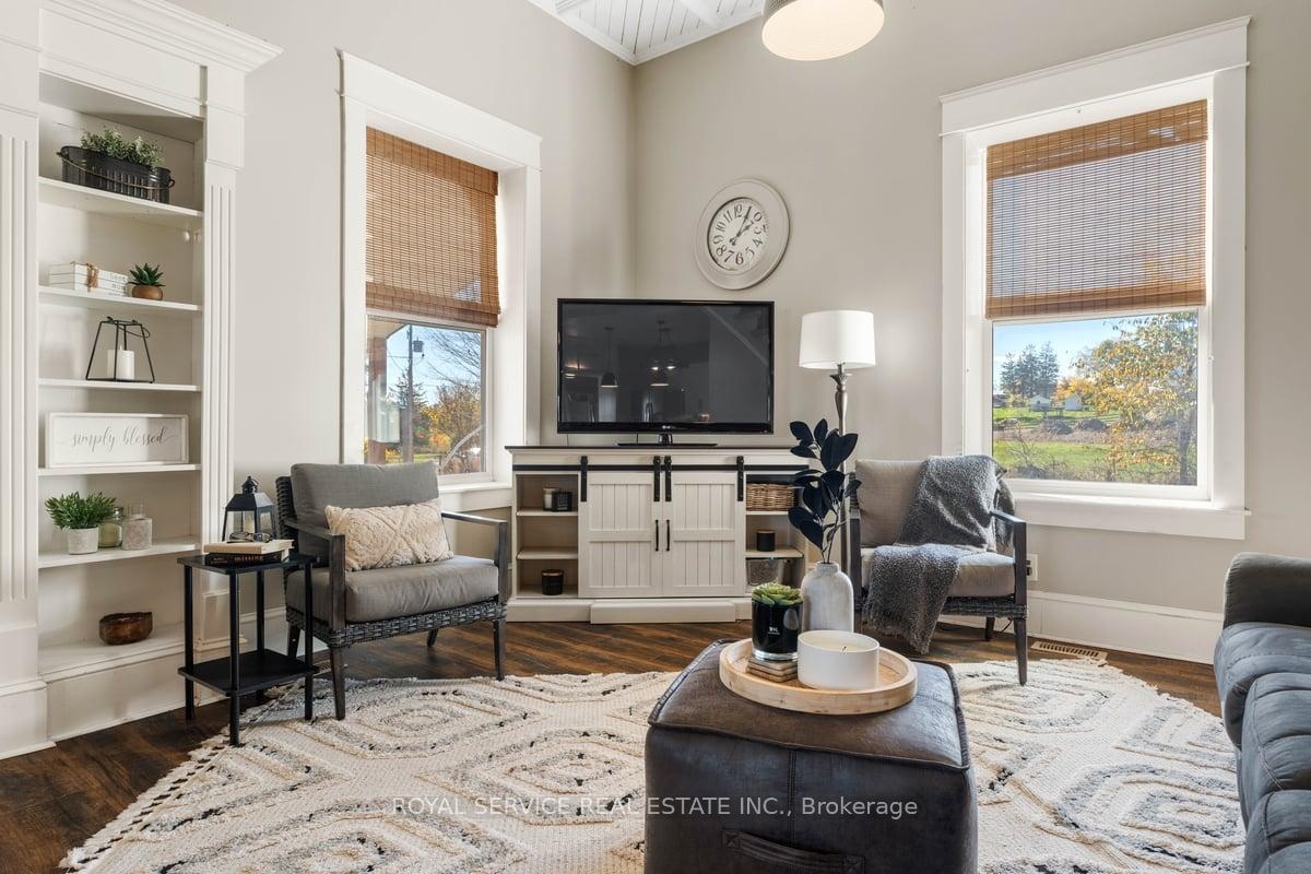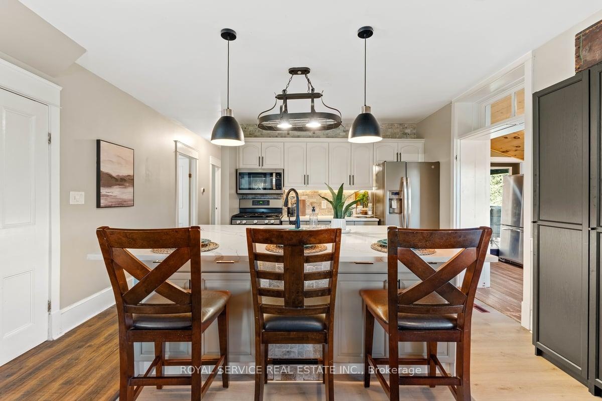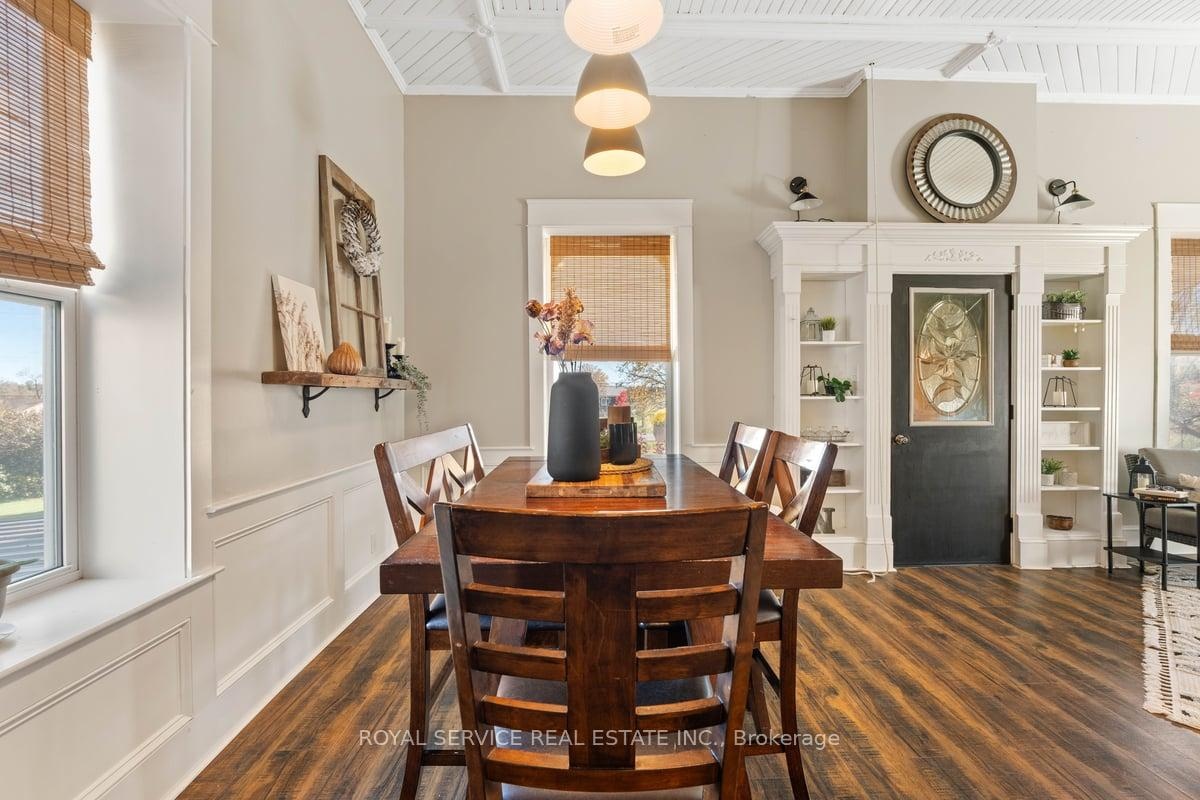 Historic Schoolhouse Turned Dream Home! Built in 1904, Harold School S.S. No. 14 has been beautifully transformed into a truly unique residence. From the original school bell still resting in the belfry to the character-filled hardwood floors, history is alive here - yet perfectly balanced with thoughtful modern updates. A recently built gorgeous covered front porch enhances the exterior and offers the ideal spot for morning coffee or evening drinks in a peaceful country setting where you can often watch the neighbours pass by in their horse-drawn buggies. Step inside to soaring 11' ceilings and oversized windows that flood the open living and dining areas with natural light. The updated kitchen boasts a massive quartz island designed for entertaining, leading seamlessly to a large bright pantry with a walkout to a 12' x 12' deck. The main floor also features a 4-piece bath with soaker tub, two spacious bedrooms, and convenient laundry. Upstairs, in the loft, a private suite awaits with skylights, stunning inlay hardwood floors, a 2-piece ensuite, and walk-in closet. The lower level expands your living space with a freshly painted rec room, office, and plenty of storage. Outside, a 24' x 30' insulated garage (built in 2020) with hydro, 10' ceilings, woodstove, and lean-to delivers incredible versatility for hobbies, storage, or workshop use. With modern upgrades, efficient utilities, and high-speed internet, this rare offering blends historic charm with everyday comfort in a welcoming country setting.
