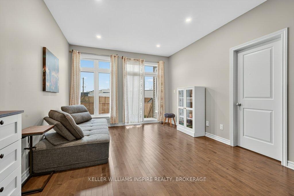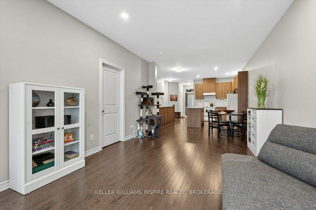 Welcome to 1305 Demers Avenue! Located in Kingston's growing West Village community, this 3-year-old brick bungalow townhouse offers low-maintenance living close to all west-end amenities. Featuring hardwood floors throughout the main level, a bright front office with large windows, and an open-concept kitchen, living, and dining area - perfect for everyday living. The kitchen includes a spacious island with great counter space, and the living room walks out to a fully fenced backyard. The main level also includes a 3-piece powder room and a large primary bedroom with a walk-in closet and 4-piece ensuite. The finished lower level offers a rec room, additional bedroom, 4-piece bath, laundry, and utility room. Attached single-car garage with inside entry, on-demand hot water heater, and HRV system complete this lovely home. A great opportunity to own a newer home in a convenient west-end location!