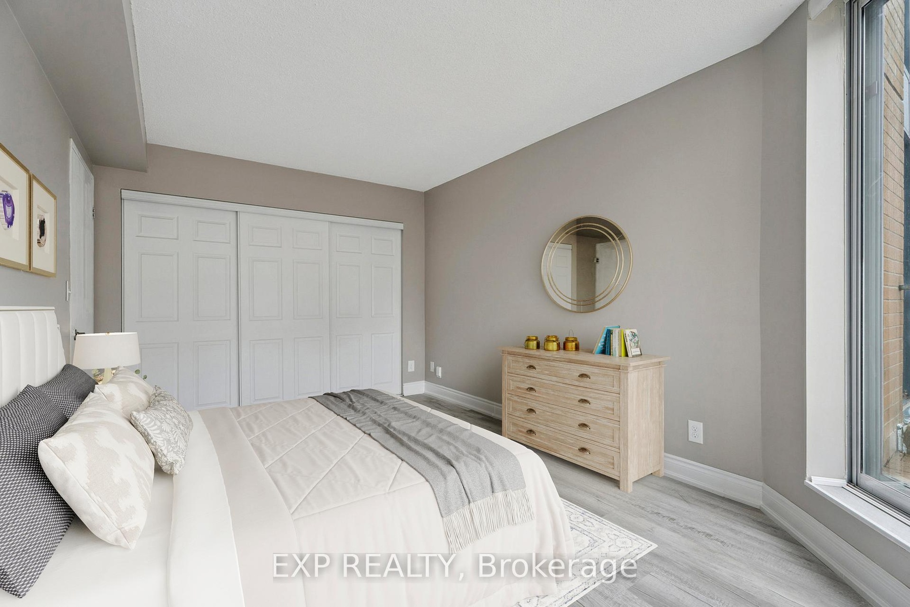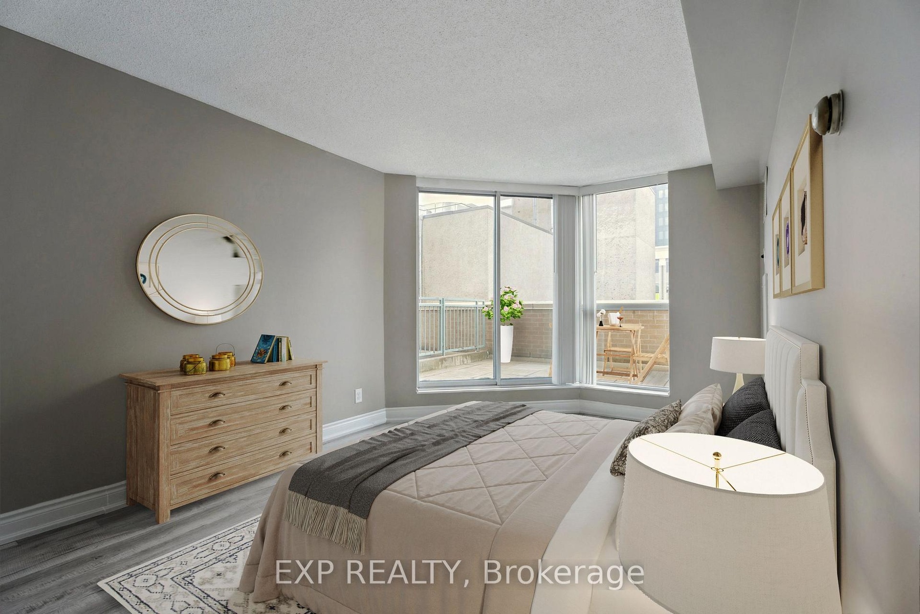 Welcome to Bayshore Landing, one of downtown Barrie's most distinctive and recognizable condo residences-known for its unique architecture, arched design, and inviting entrance. Ideally situated near Kempenfelt Bay, this sought-after building is just a short walk to the beach, marina, waterfront trails, restaurants, cafés, and shops, offering a vibrant and convenient downtown lifestyle.This bright and connected 1-bedroom, 1-bath suite offers approximately 620 sq. ft. of functional living space, featuring floor-to-ceiling windows, laminate flooring, and freshly painted interiors for a move-in-ready feel. Enjoy a rare, oversized private terrace balcony measuring (33.5 ft x 10.4 ft) perfect for morning coffee, summer BBQs, or simply relaxing outdoors.The kitchen includes a breakfast bar for casual dining and an efficient layout for everyday living. Additional highlights include a large storage locker, exclusive underground parking, and evening security for peace of mind.Residents enjoy premium amenities such as an indoor pool, hot tub, sauna, fitness centre, and party room. Condo fees conveniently cover heat, hydro, water, insurance, and exterior maintenance, ensuring truly stress-free living.Ideal for first-time buyers, downsizers, or investors seeking comfort and convenience in the heart of downtown Barrie.Please note: Some photos have been virtually staged to show the potential of the unit.