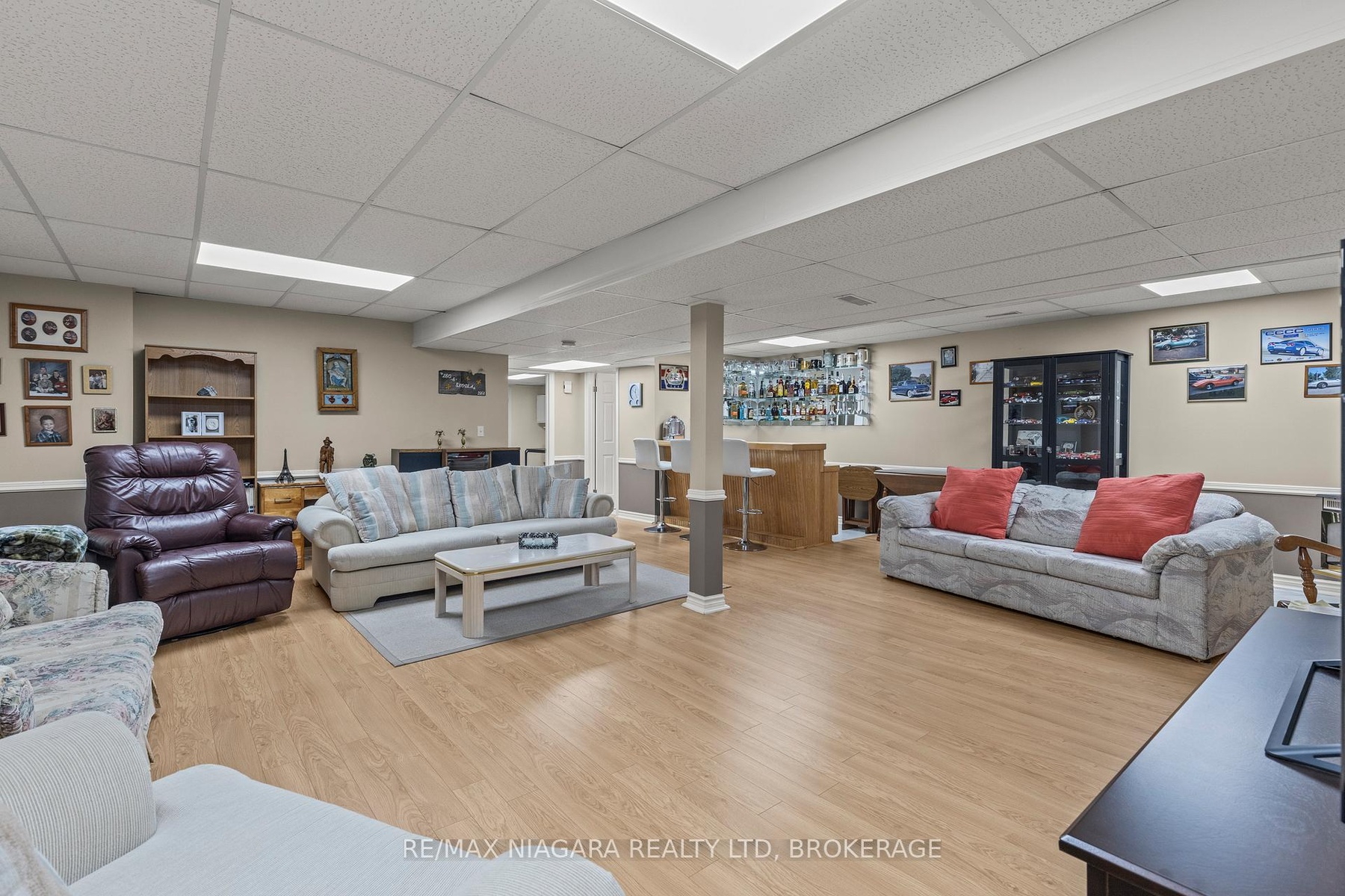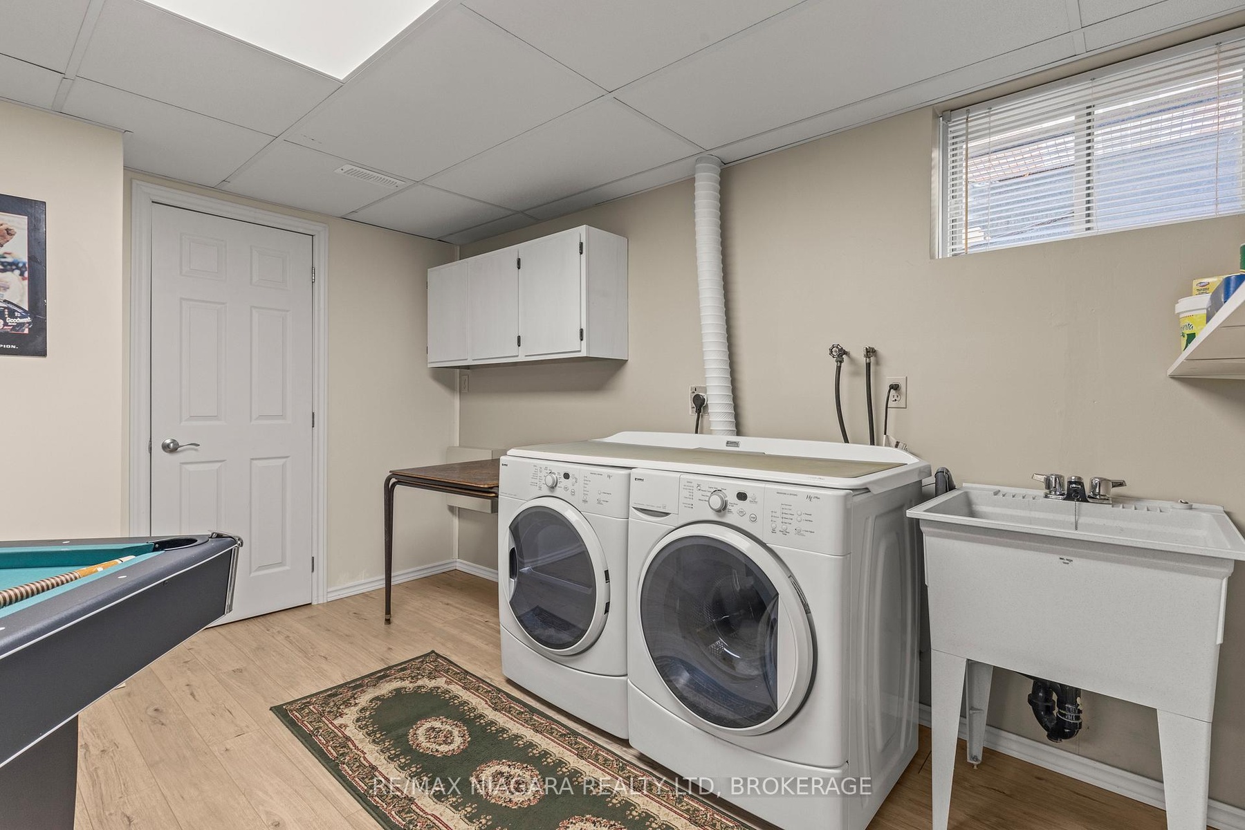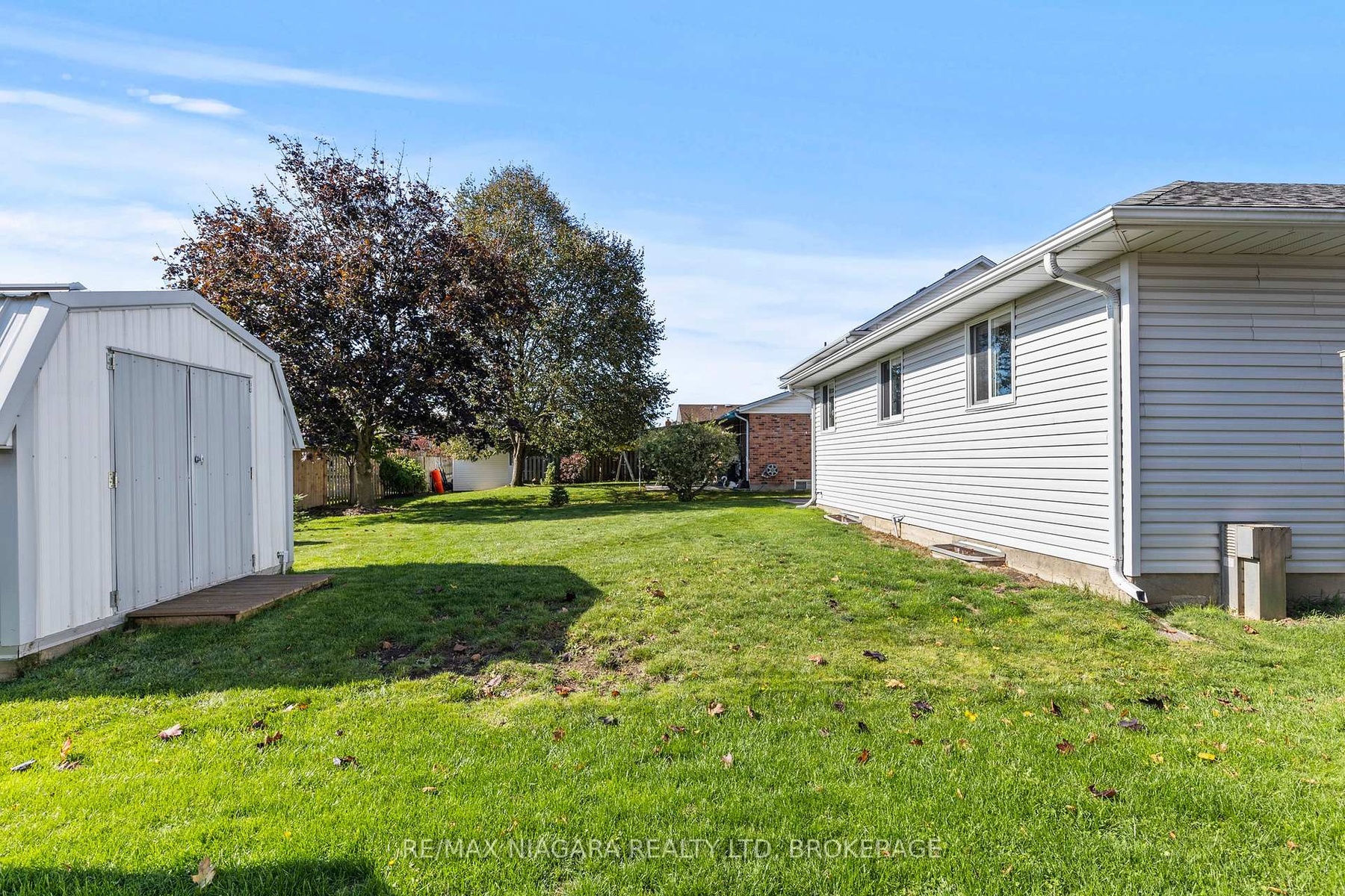 North Welland bungalow offering convenient main floor living with 3 bedrooms, 2 baths, and a finished basement. Make your way through the covered front porch into the welcoming foyer, where you'll be greeted by an open-concept living and dining area featuring gleaming hardwood floors and large, sun-filled windows. The eat-in kitchen is perfectly situated to make meal prep a breeze. The main floor includes three spacious bedrooms, including a generous primary that overlooks the backyard. The main floor 4-piece bathroom is complete with the added bonus of laundry facilities for everyday convenience. Downstairs, the fully finished basement provides even more living space with a large family room, a bar for entertaining, and a cozy gas fireplace. You'll also find a second bathroom, an additional laundry area, and plenty of storage. Outside you'll enjoy the large backyard with a concrete patio, perfect for gatherings, plus a storage shed for all your outdoor needs. Additional features include a single attached garage and a double-wide concrete driveway. Located close to schools, shopping, parks, and quick access to Highway 406, this home is ideal for families or retirees looking to downsize without compromise.