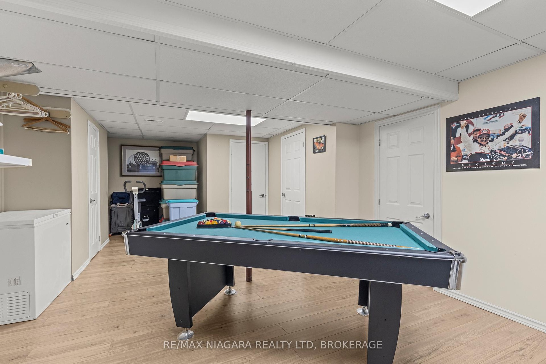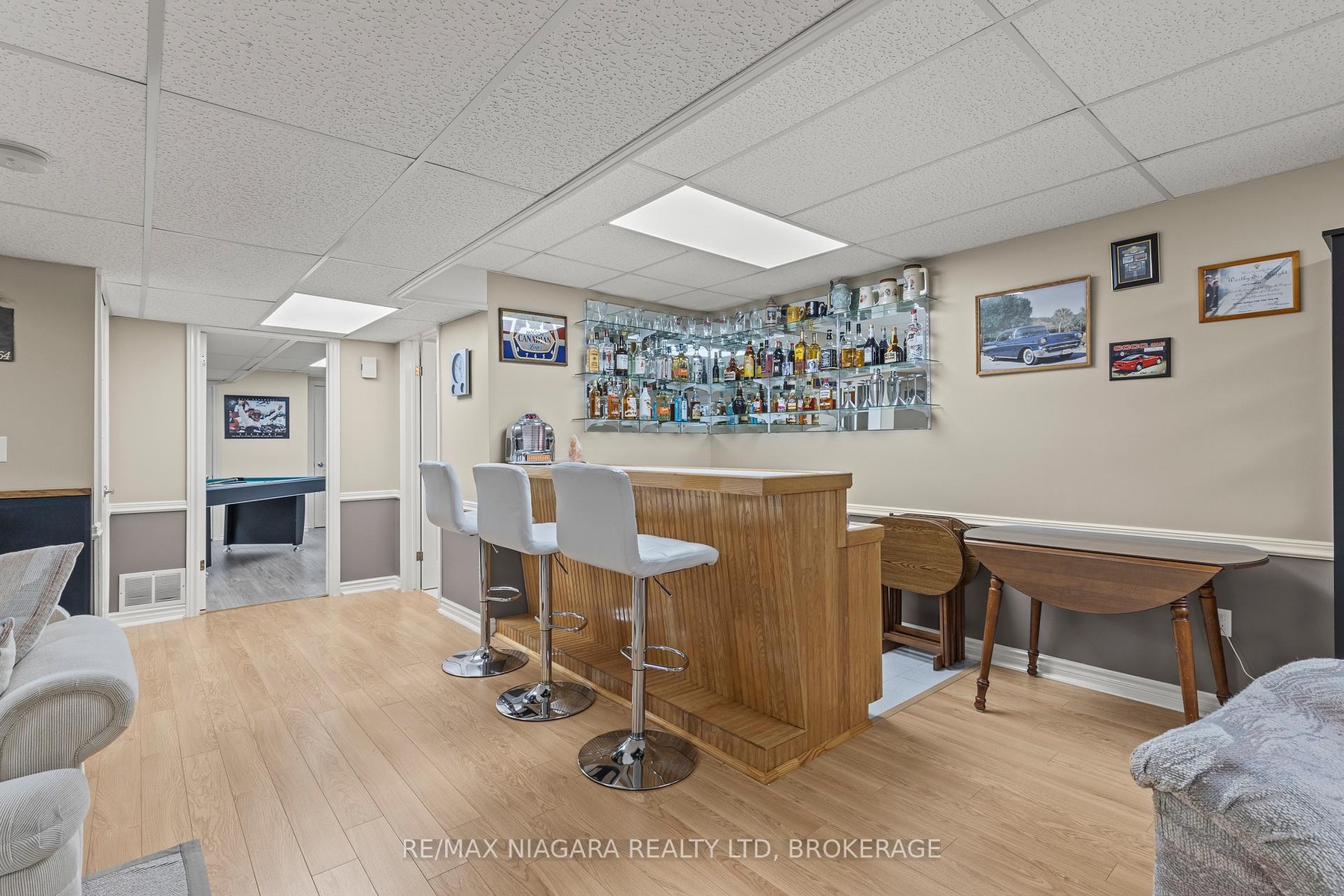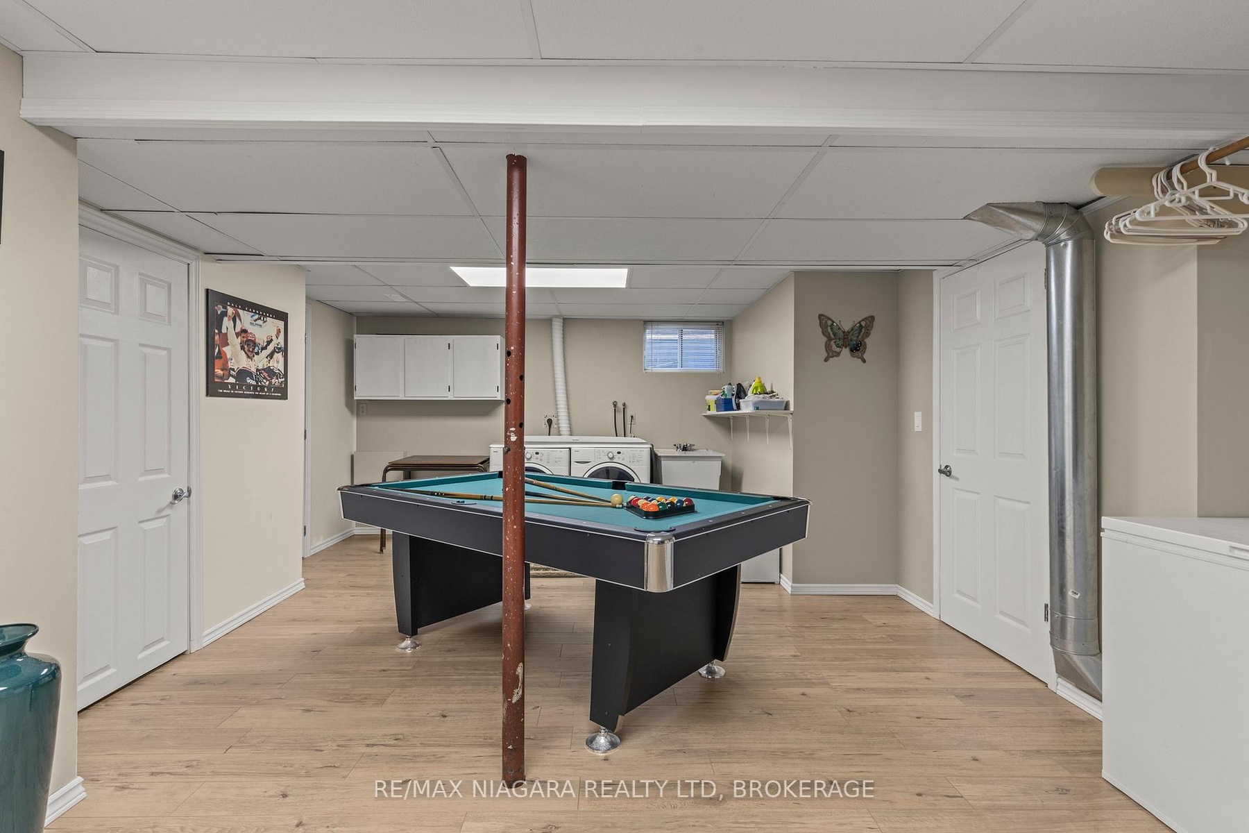 North Welland bungalow offering convenient main floor living with 3 bedrooms, 2 baths, and a finished basement. Make your way through the covered front porch into the welcoming foyer, where you'll be greeted by an open-concept living and dining area featuring gleaming hardwood floors and large, sun-filled windows. The eat-in kitchen is perfectly situated to make meal prep a breeze. The main floor includes three spacious bedrooms, including a generous primary that overlooks the backyard. The main floor 4-piece bathroom is complete with the added bonus of laundry facilities for everyday convenience. Downstairs, the fully finished basement provides even more living space with a large family room, a bar for entertaining, and a cozy gas fireplace. You'll also find a second bathroom, an additional laundry area, and plenty of storage. Outside you'll enjoy the large backyard with a concrete patio, perfect for gatherings, plus a storage shed for all your outdoor needs. Additional features include a single attached garage and a double-wide concrete driveway. Located close to schools, shopping, parks, and quick access to Highway 406, this home is ideal for families or retirees looking to downsize without compromise.