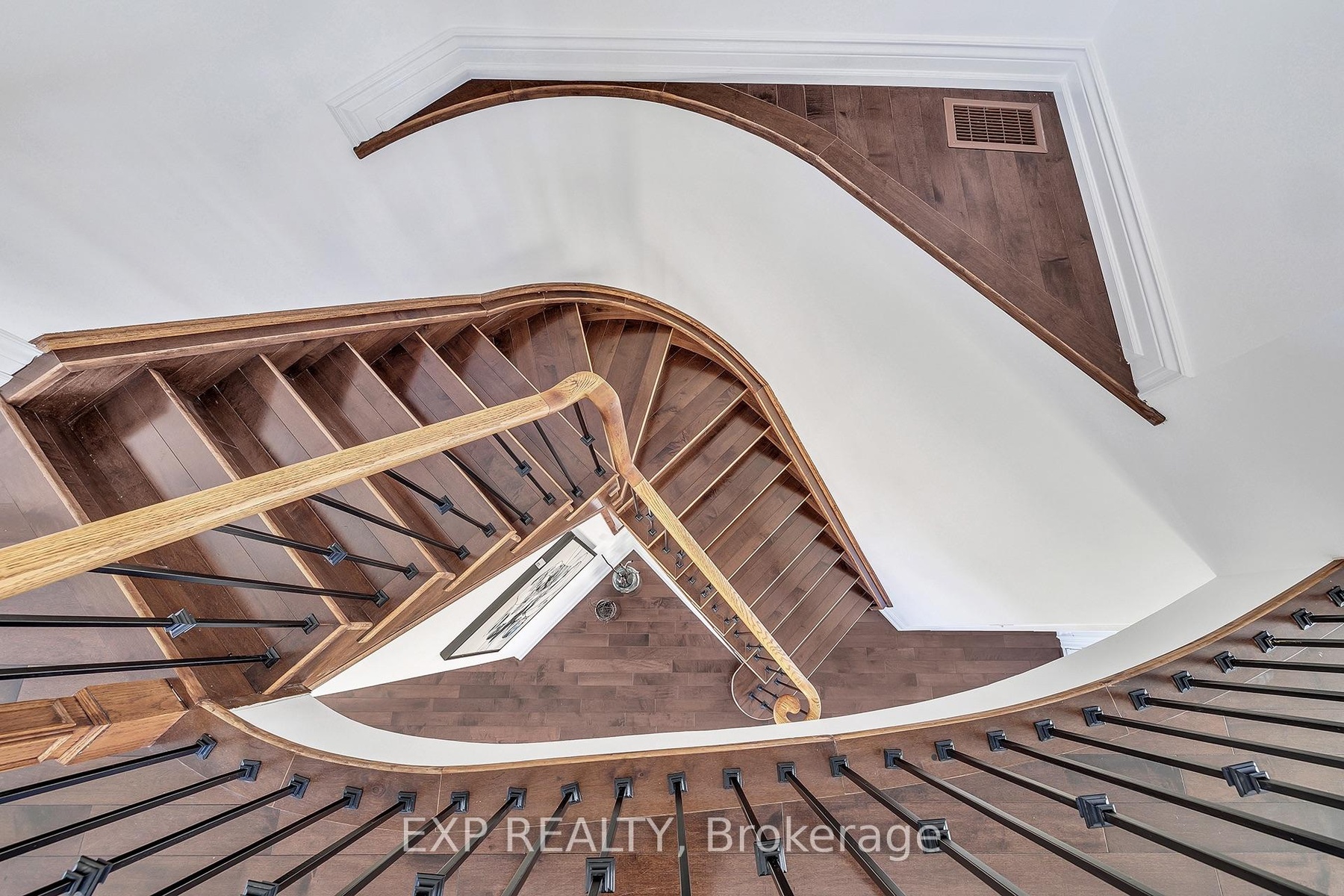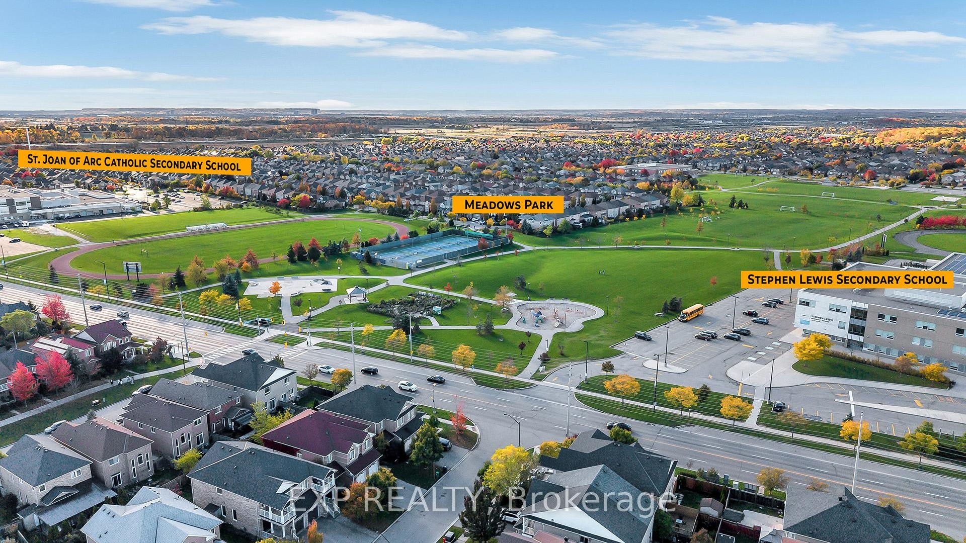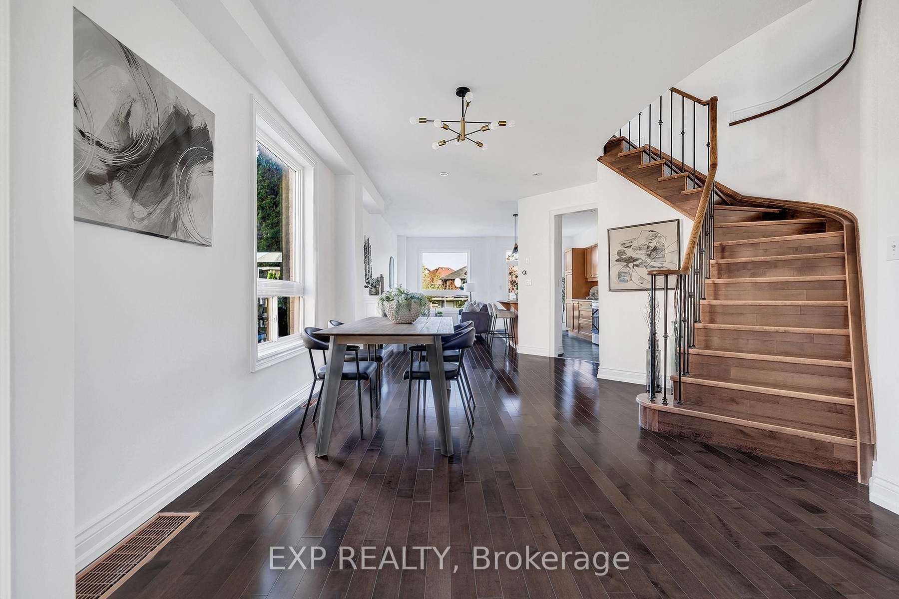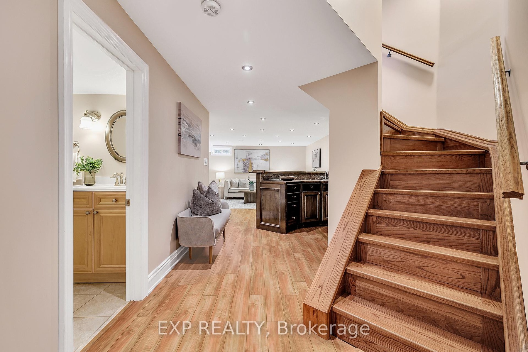 Welcome to this exquisite all-brick semi-detached residence, offering 3 spacious bedrooms + an elegant office/media room, gracefully positioned on a premium pie-shaped lot. Thoughtfully designed with exceptional craftsmanship and luxury finishes throughout, this home truly impresses at every turn. Step into a grand sunken foyer highlighted by 9 ft ceilings on the main floor, seamless inside garage access, and refined hardwood flooring that flows throughout the principal spaces. The extended maple kitchen cabinetry provides both sophistication and functionality, creating a perfect culinary setting. The primary suite is a serene retreat, featuring a spa-inspired 4-piece ensuite and a walk-in closet, offering the ultimate in comfort and style. The fully finished lower level is an entertainer's dream, showcasing a custom marble-top bar, integrated sink, and built-in wine rack-perfect for hosting intimate gatherings or elegant events. Outdoors, the property continues to impress with a widened 2-car driveway, a beautiful cedar deck, and a stamped concrete patio and walkway, creating a stunning setting for both relaxation and entertainment. A solid 9' x 12' designer shed completes this exceptional outdoor space. Don't let this one get away, book your showing today or drop by our Open House!