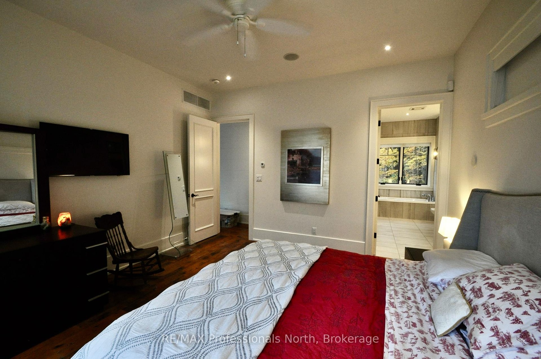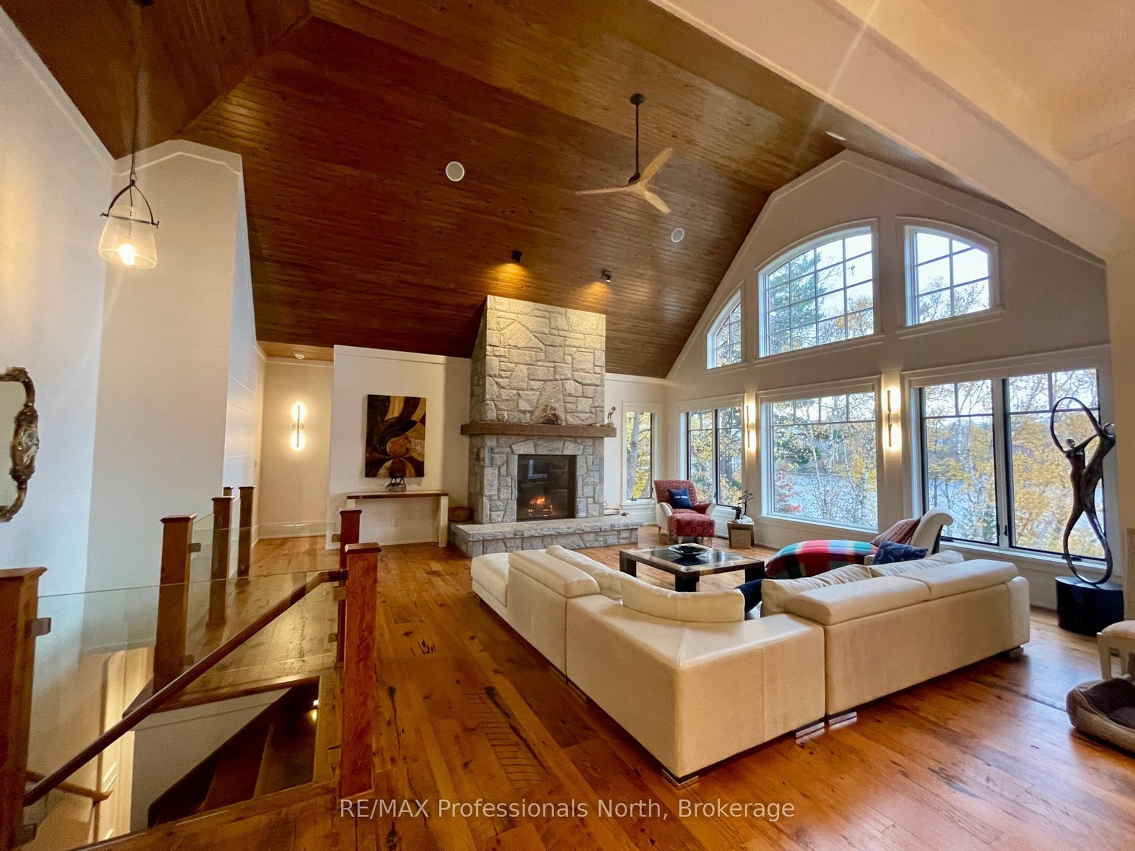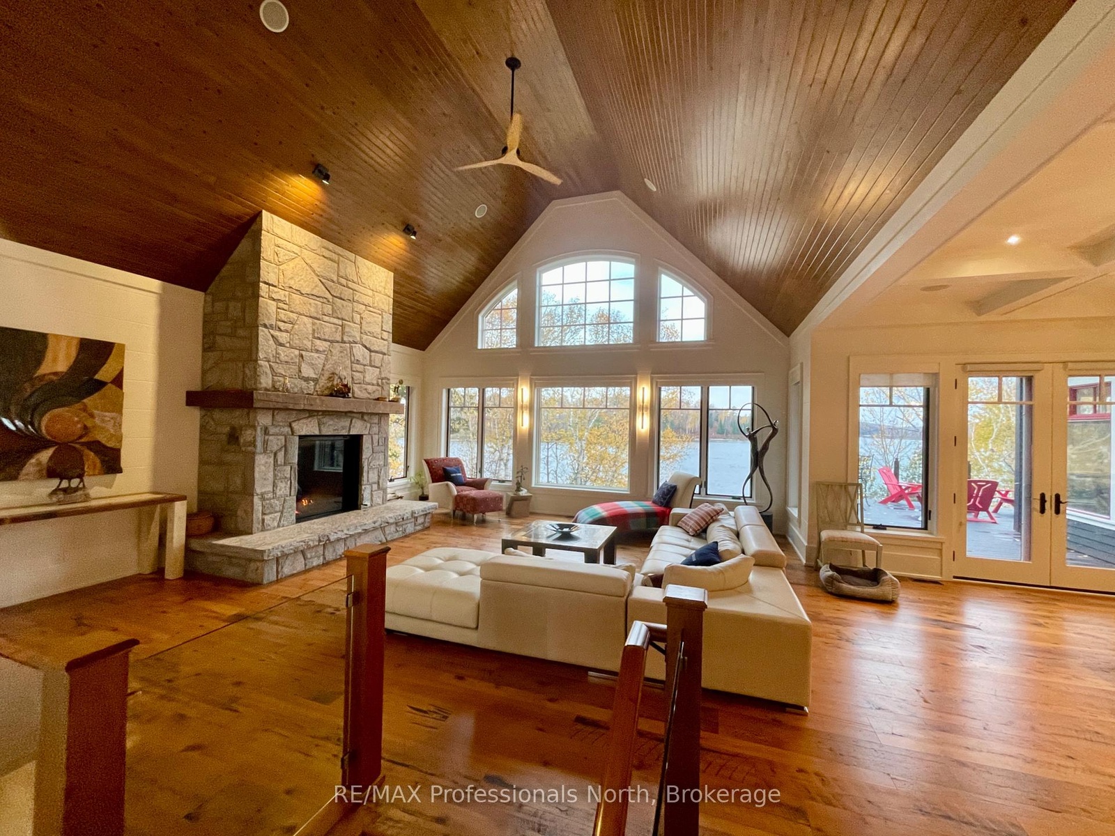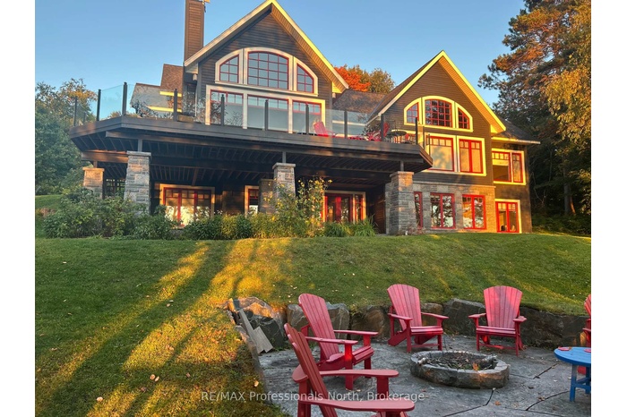 A visit to this unmatched property set on a wooded and remarkable 4.5 acre lot boasts South West facing views of Lake Vernon with a gentle sloping lot to the hard pack sand Beach. Enjoy privacy, space and easy access to the lake for the entire family. This fabulous home/cottage built by Lovegrove Construction in 2017 offers all the amenities your heart would desire. Six bedrooms, seven bathrooms, and loads of room for the guests. Enjoy stunning perennial gardens with automatic irrigation, picturesque inside and out. Embrace year round Muskoka from every window. Enjoy outdoor fires and SUNSETS! Inside there's more than 5000 square feet of spacious living area exquisitely designed and built incorporating elements that will enhance your day to day. Walk in the front door and keep on looking, take in that scene of sweeping & peaceful vistas & surroundings. Lower level walks out to the waterside haven. Includes a second laundry room with Dog washing station. Mechanicals, innovation and security have all been tended to. There's more! Dry dock Boathouse with wifi, two Separate Garages. One with two car parking & room for toys & tools and One Barn style building has parking for two or more cars, plenty of storage, cedar lined heated room (snowmobilers) and a large open area for games room or however you can dream. Being here is the best way to appreciate this gem. Details and features list available.