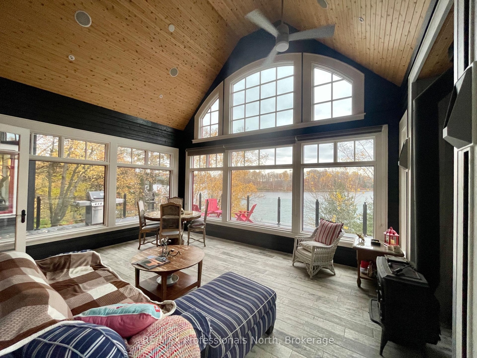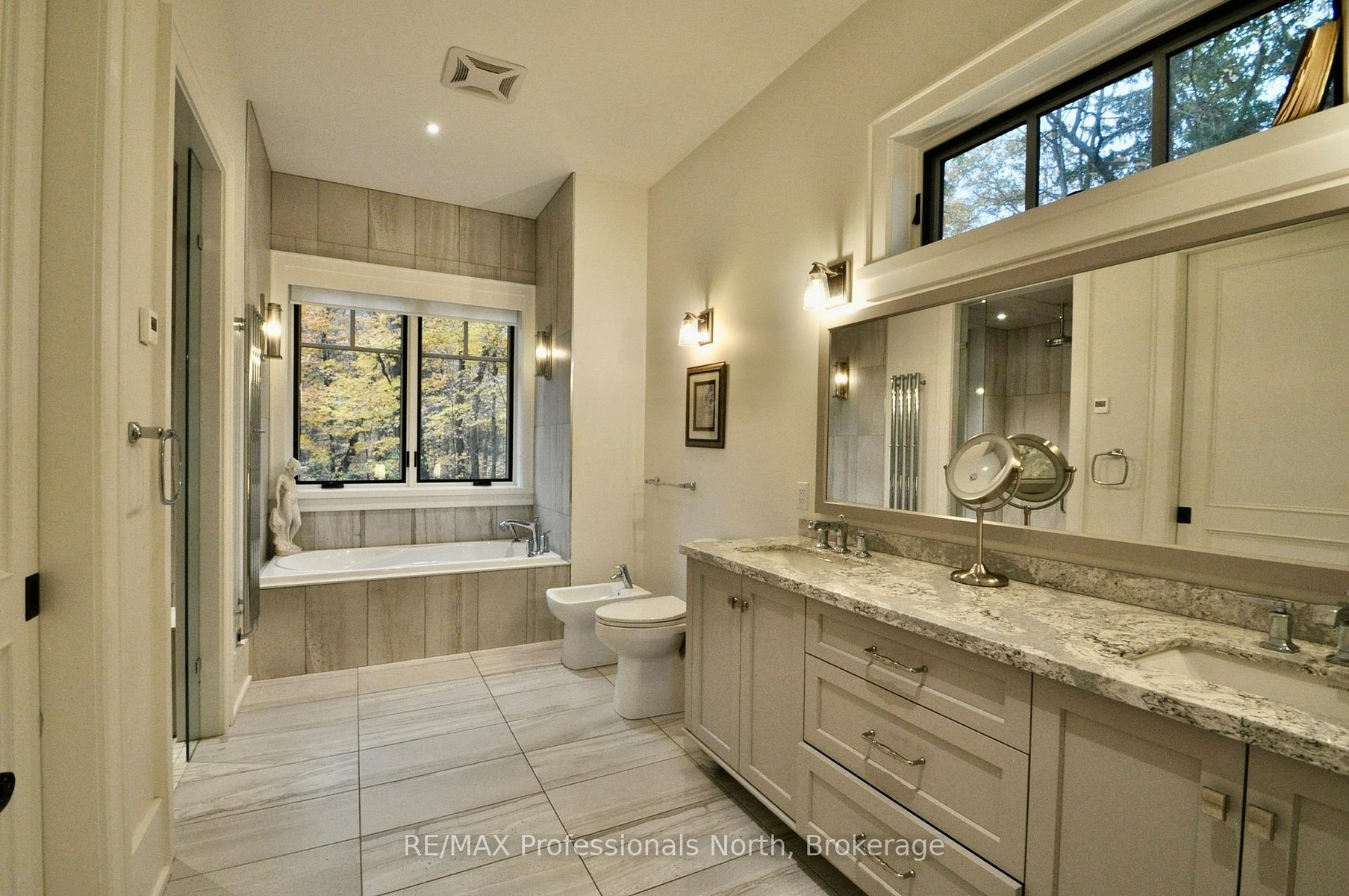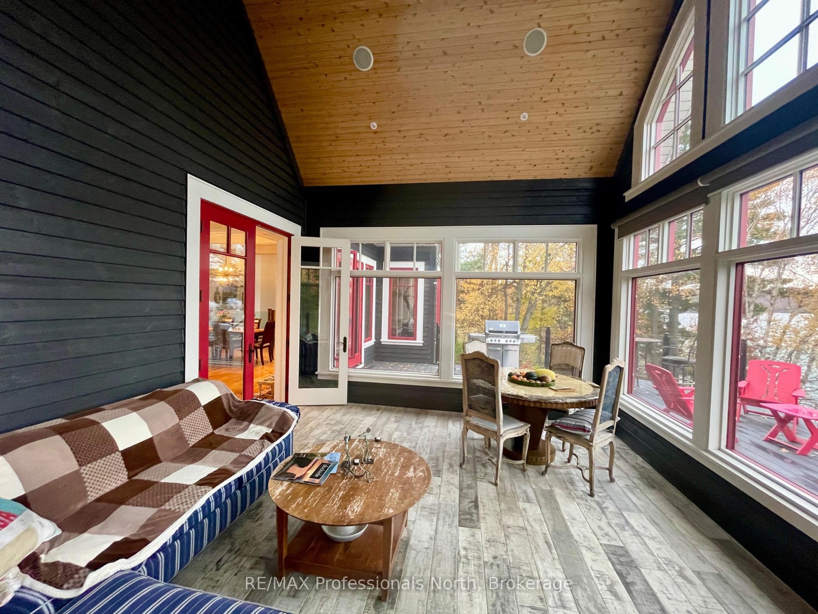 A visit to this unmatched property set on a wooded and remarkable 4.5 acre lot boasts South West facing views of Lake Vernon with a gentle sloping lot to the hard pack sand Beach. Enjoy privacy, space and easy access to the lake for the entire family. This fabulous home/cottage built by Lovegrove Construction in 2017 offers all the amenities your heart would desire. Six bedrooms, seven bathrooms, and loads of room for the guests. Enjoy stunning perennial gardens with automatic irrigation, picturesque inside and out. Embrace year round Muskoka from every window. Enjoy outdoor fires and SUNSETS! Inside there's more than 5000 square feet of spacious living area exquisitely designed and built incorporating elements that will enhance your day to day. Walk in the front door and keep on looking, take in that scene of sweeping & peaceful vistas & surroundings. Lower level walks out to the waterside haven. Includes a second laundry room with Dog washing station. Mechanicals, innovation and security have all been tended to. There's more! Dry dock Boathouse with wifi, two Separate Garages. One with two car parking & room for toys & tools and One Barn style building has parking for two or more cars, plenty of storage, cedar lined heated room (snowmobilers) and a large open area for games room or however you can dream. Being here is the best way to appreciate this gem. Details and features list available.