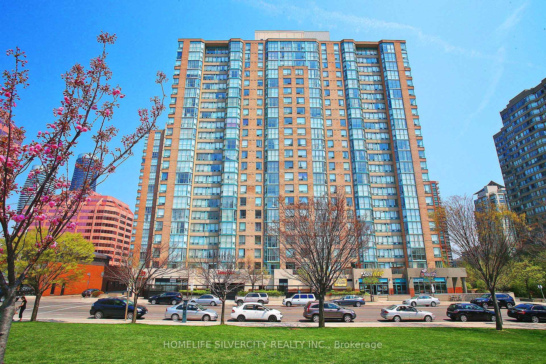 Spacious and bright end-unit condo in the heart of Mississauga! Features 2 large bedrooms, 2 full washrooms, and a versatile den/solarium. Modern kitchen with granite countertops and in-unit laundry. Maintenance fee includes all utilities: heat, hydro, water, cable & internet. Includes 1 parking and locker. Excellent amenities: 24-hr concierge, indoor pool, gym, squash court, outdoor patio, and visitor parking. Prime location-steps to Square One, GO Station, public transit, Living Arts Centre, City Hall, Central Library, schools, and future LRT. Easy access to Hwy 403/401/QEW. Don't miss this opportunity to make this condo your new home!