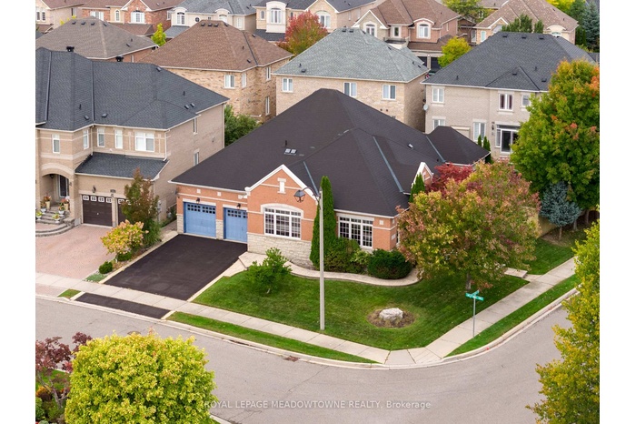 Gorgeous corner lot bungalow in the coveted Streetsville Glen Golf Course community. Elegant layout with soaring 10 ft and Gorgeous corner lot bungalow in the coveted Streetsville Glen Golf Course community. Elegant layout with soaring 10 ft and 12.5 ft ceilings and hardwood throughout. Sun filled interiors with abundance of windows. Living and dining rooms feature crown moulding, and the living room includes a gas fireplace. Spacious eat-in kitchen with stainless steel appliances, granite counters and a centre island, opening to the backyard. Front with patterned concrete walkways and curbs wrap the property. Rear interlock patio, beautifully landscaped and fully fenced with a gas line for the BBQ. Primary bedroom offers two closets and a five piece ensuite. Third bedroom is currently open as an office and van be converted back to a bedroom. Finished basement with a bedroom, a 3 piece bath, a dry bar, generous storage and a large open area with potential to create a second bedroom. Simply move in and enjoy. 12.5 ft ceilings and hardwood throughout. Sun filled interiors with abundance of windows. Living and dining rooms feature crown moulding, and the living room includes a gas fireplace. Spacious eat-in kitchen with stainless steel appliances, granite counters and a centre island, opening to the backyard. Front with patterned concrete walkways and curbs wrap the property. Rear interlock patio, beautifully landscaped and fully fenced with a gas line for the BBQ and a sprinkler system. Primary bedroom offers two closets and a five piece ensuite. Third bedroom is currently open as an office and van be converted back to a bedroom. Finished basement with a bedroom, a 3 piece bath, a dry bar, generous storage and a large open area with potential to create a second bedroom. Simply move in and enjoy.