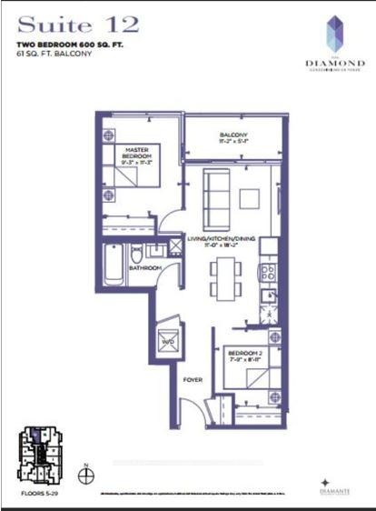 2 Bedrooms Luxury Condo With Floor To Ceiling Windows, Bright And Spacious, Functional Layout W Balcony.