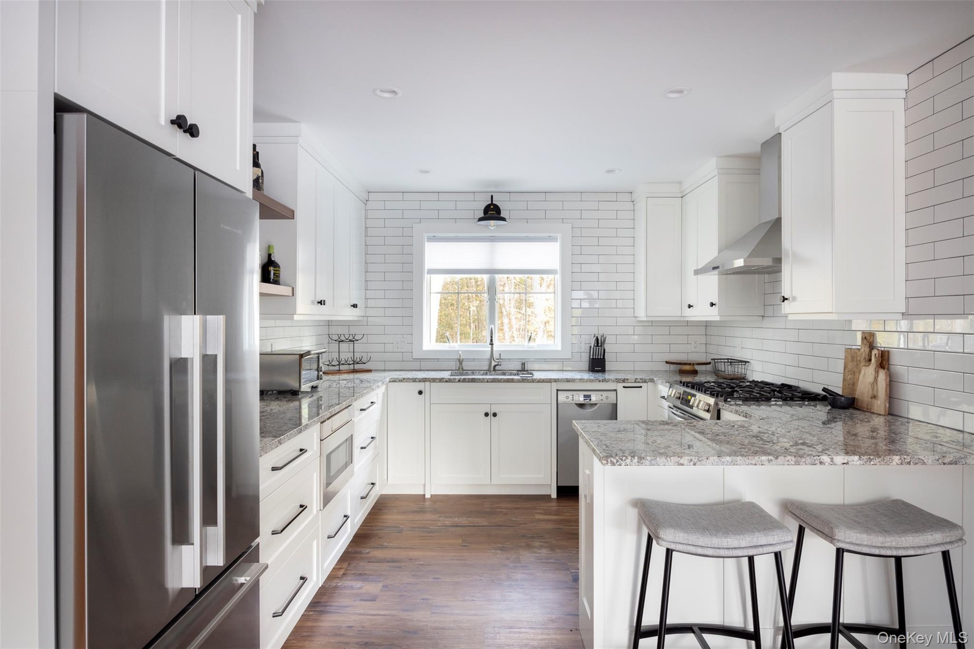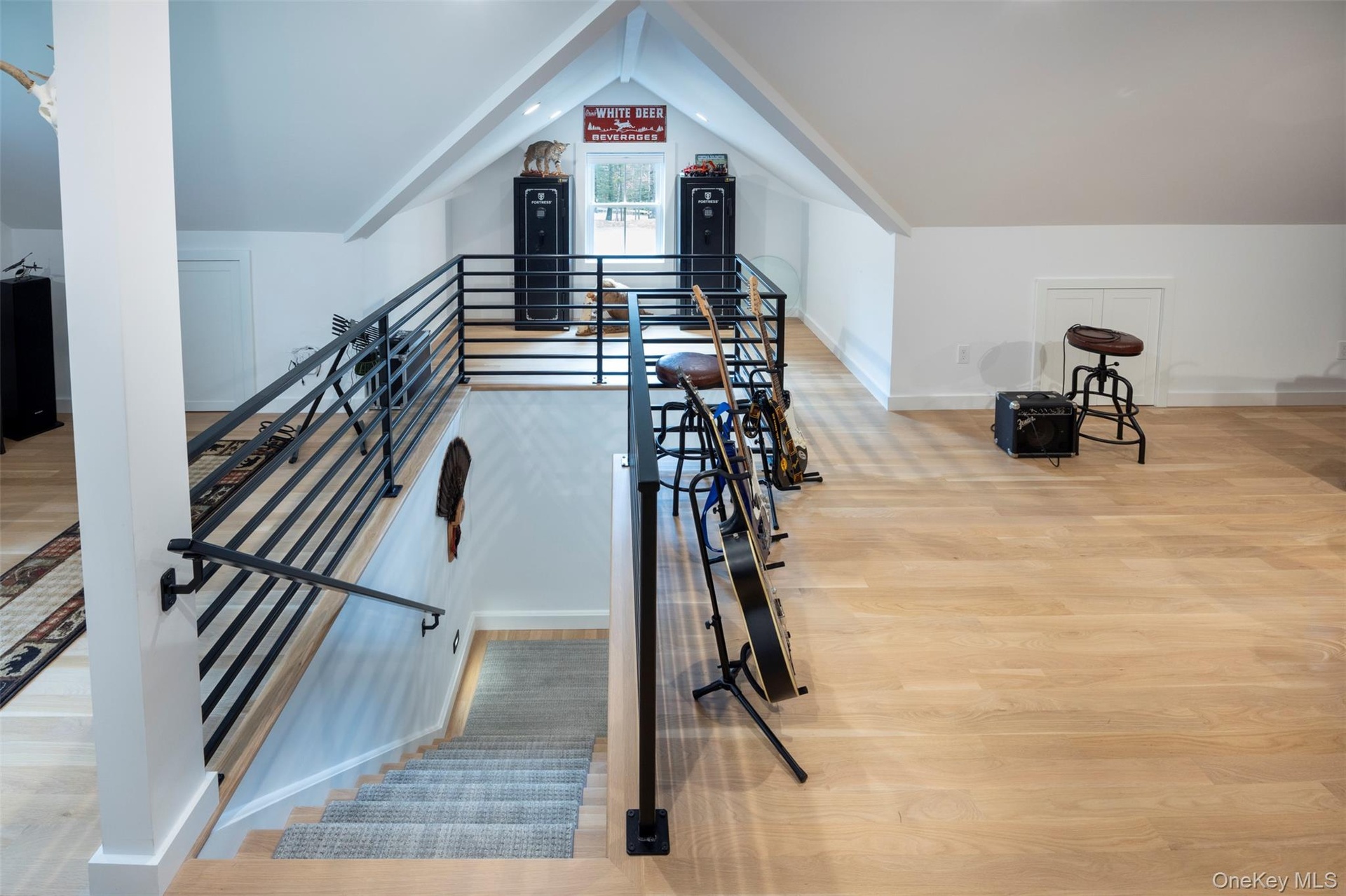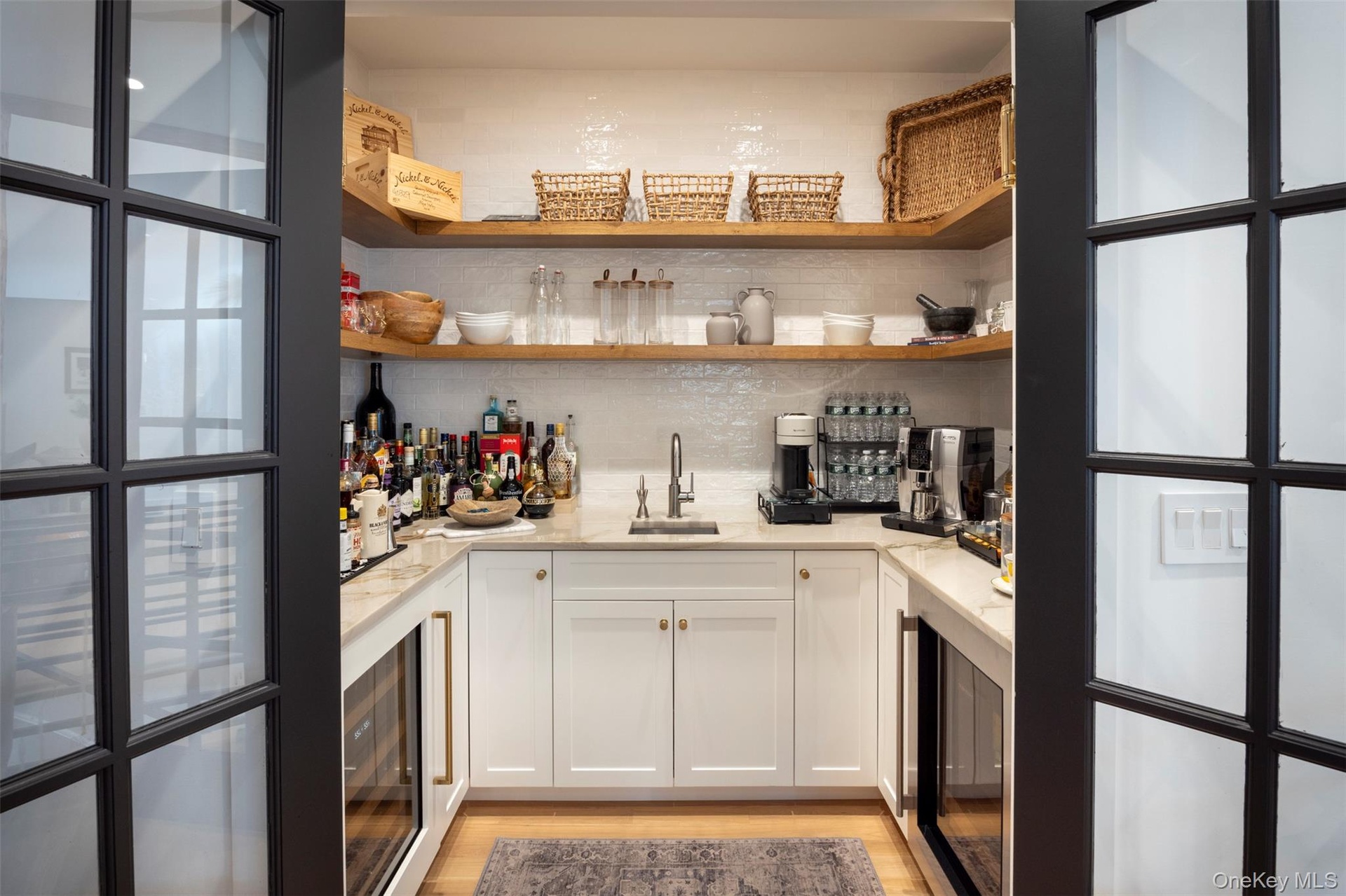 At the heart of the home is a chef’s kitchen that will delight cooks and onlookers as well. Highlights include quartzite countertops, an 8-burner Wolf Range with pot filler, Sub-Zero Refrigerator, Miele Dishwasher, and a wet bar with Sub-Zero Wine Cooler and beverage fridge—an elegant space to gather. The thoughtfully designed layout offers a private primary suite on one wing of the home, complete with a luxurious ensuite bath featuring a soaking tub, separate shower, and generous closet space. And a separate entrance/exit for early morning jaunts in the woods. There is also mud room filled with custom built in storage lockers for all your visitors. On the opposite wing, two additional bedrooms each enjoy their own ensuite baths, providing a perfect balance of comfort and privacy.