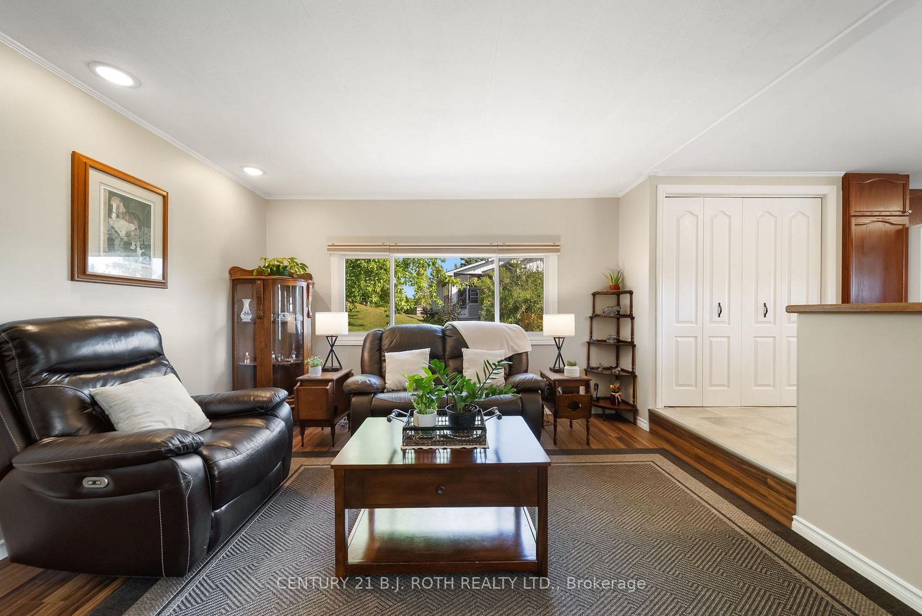 Enjoy relaxed adult living in Big Cedar Estates, a community between Orillia and Barrie. This well-cared-for Mailette model offers flexible 2- or 3-bedroom with a large primary bedroom with walk-in closet. It is an open-concept design, renovated kitchen, upgraded bath, newer laminate flooring, and updated lighting throughout as well as a large storage room and a pantry for convenience. Residents enjoy low-maintenance living with monthly fees of $345 covering water, sewer, lawn care, snow removal, clubhouse, walking trails, fibre optic internet, and Rogers TV, plus boat and RV parking when available. A welcoming home in a vibrant community!
