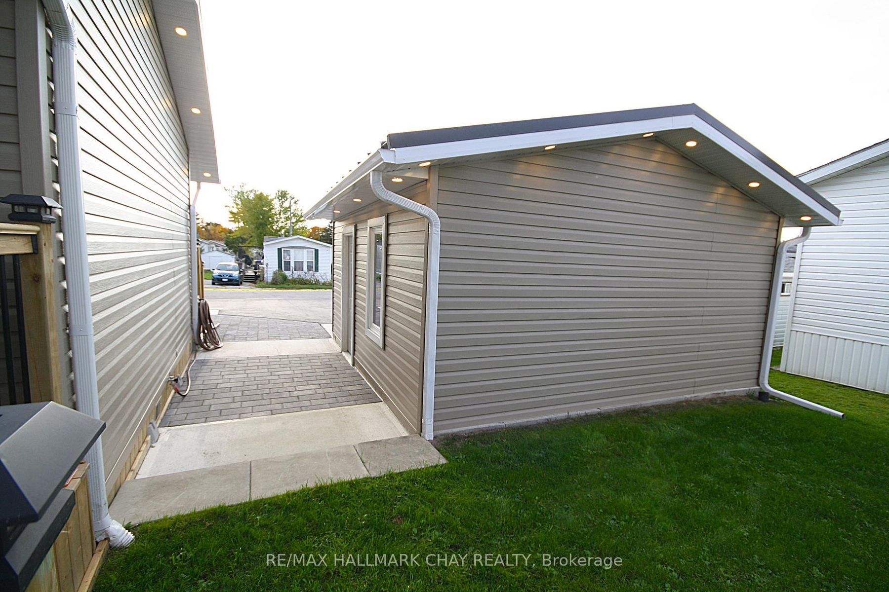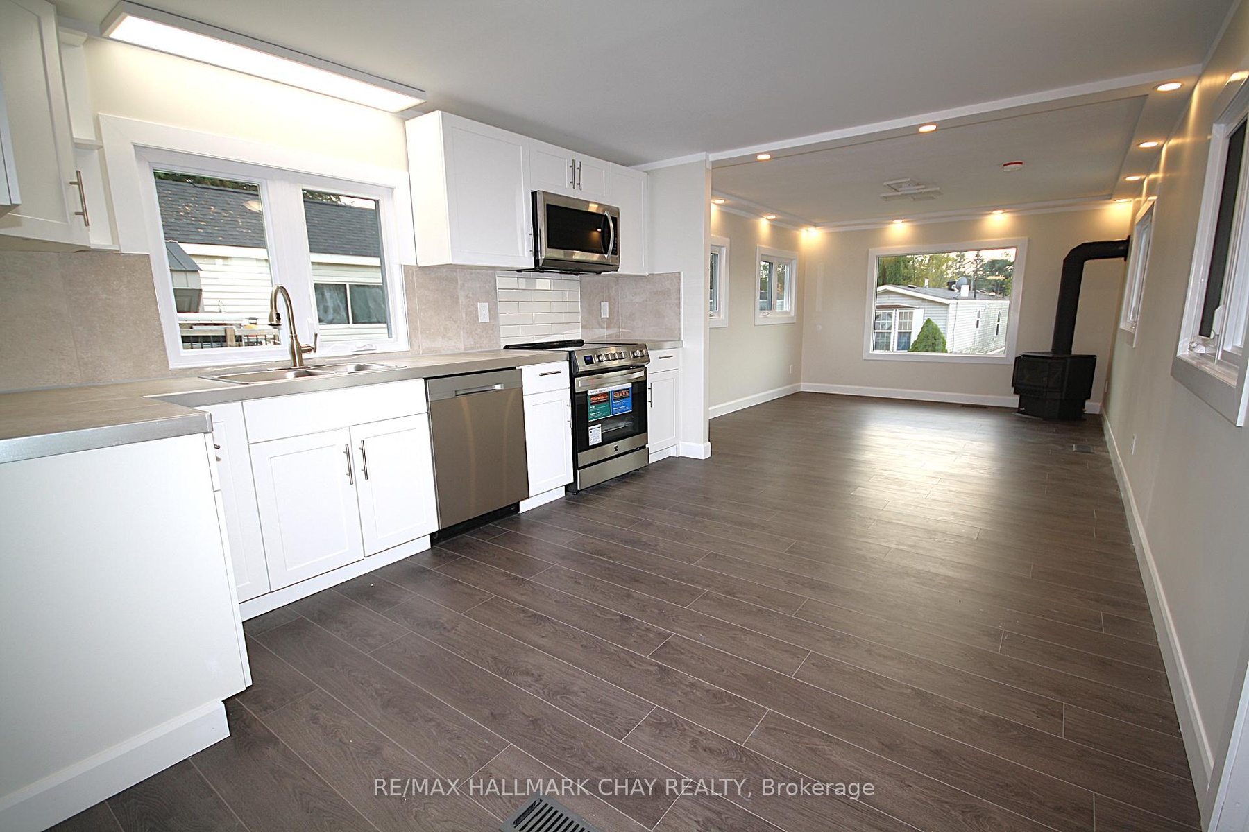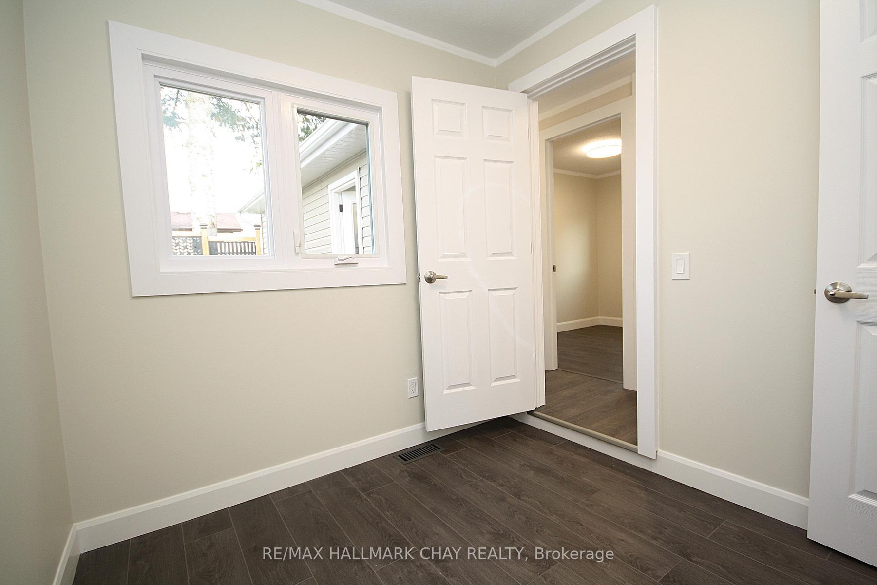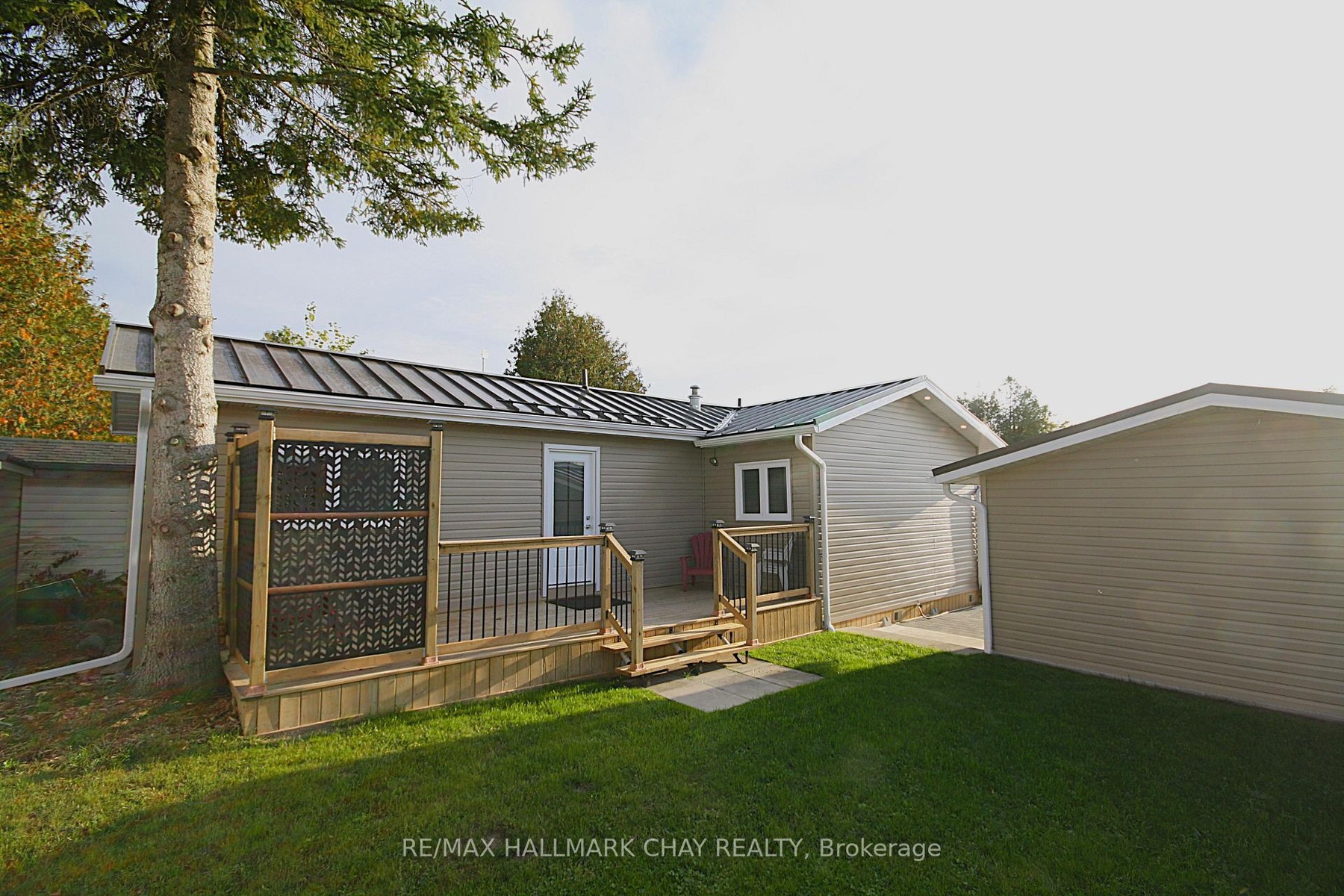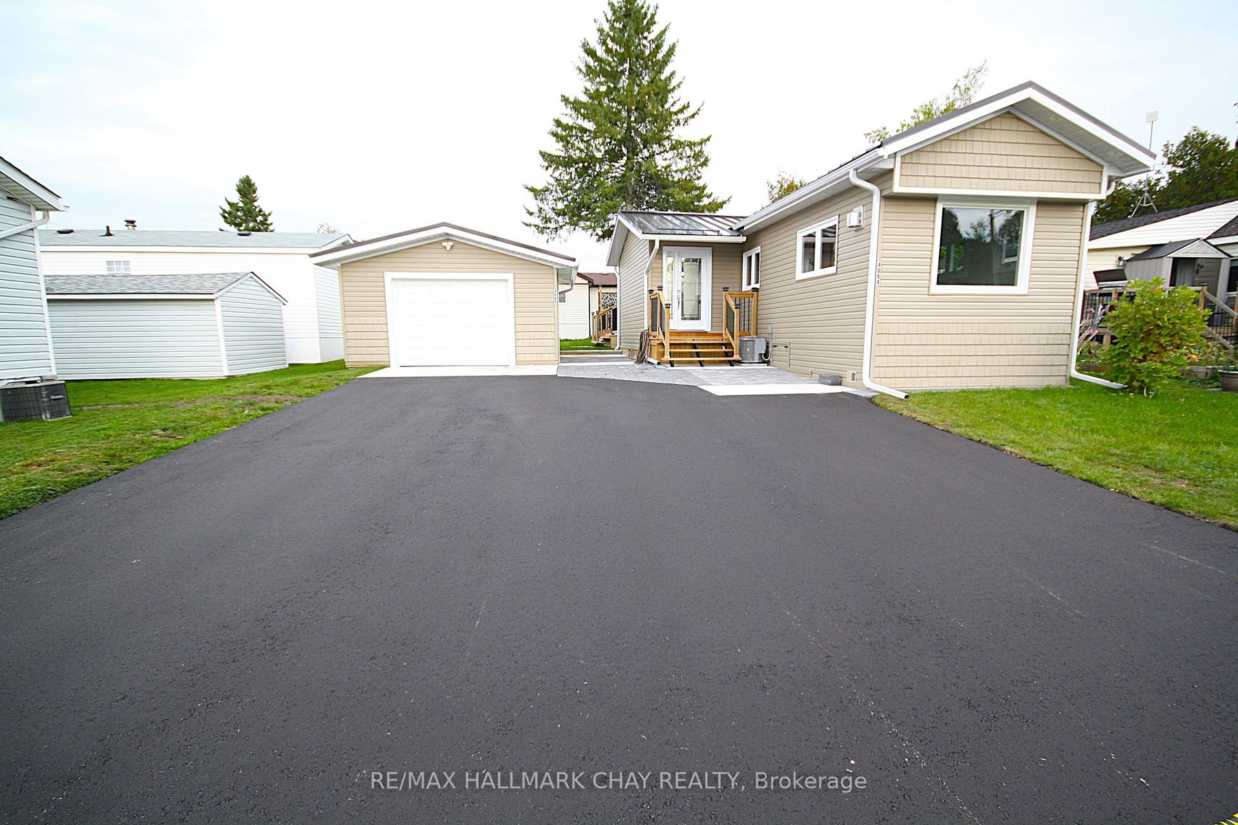 WOW! NEW, NEW, & MORE NEW! Completely renovated or rebuilt inside and out. This move in ready 2 bedroom 2 bathroom home has been recreated just for you to enjoy for many years to come. Excellent layout provides a walkout to large private deck off primary bedroom, bonus office with closet and attached 1/2 bath, large foyer with coat closet, covered porch, open concept kitchen with cozy gas fireplace. Too many upgrades to list...featuring all NEW in 2024/25; steel roofs on all 3 buildings, siding, soffit, fascia, troughs, exterior lighting, huge new asphalt driveway, paver stone, all new windows, and new exterior doors, new decks, upgraded insulation, new drywall, all new flooring, totally new bathroom, 5 brand new appliances, new kitchen, new central air unit, all interior trim & doors, and paint, new pot lighting and light fixtures, and much much more! Walk out to large private deck. Pride of ownership and attention to details abound. Garage was taken down to foundation and rebuilt with new framing, insulated walls and doors, windows, garage door opener, and hydro. Amazing opportunity. Located close to Orillia and major amenities. Land lease fee includes road maintenance, garbage removal.