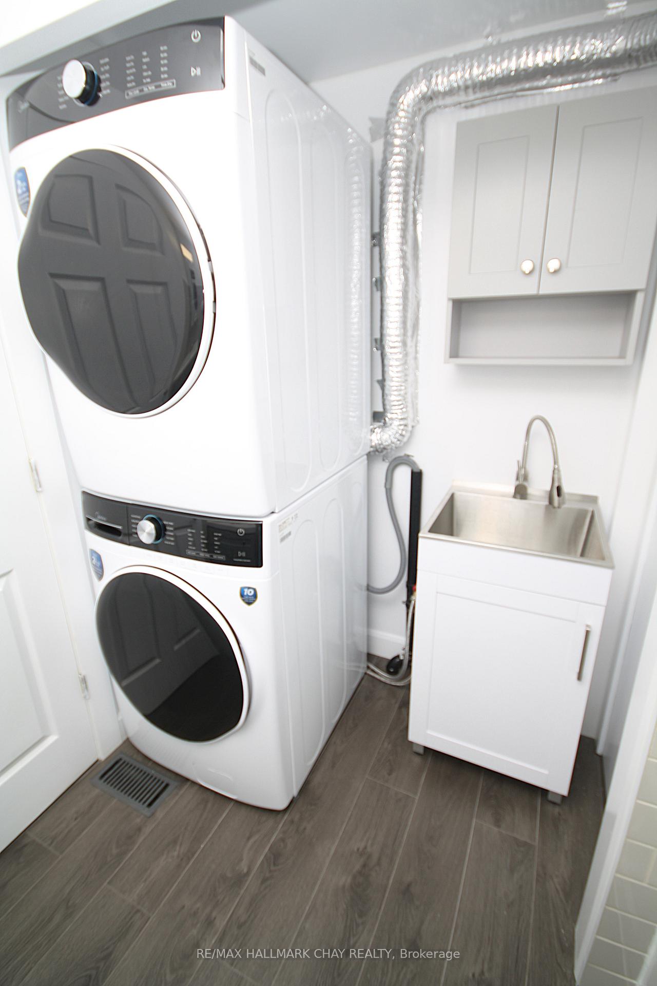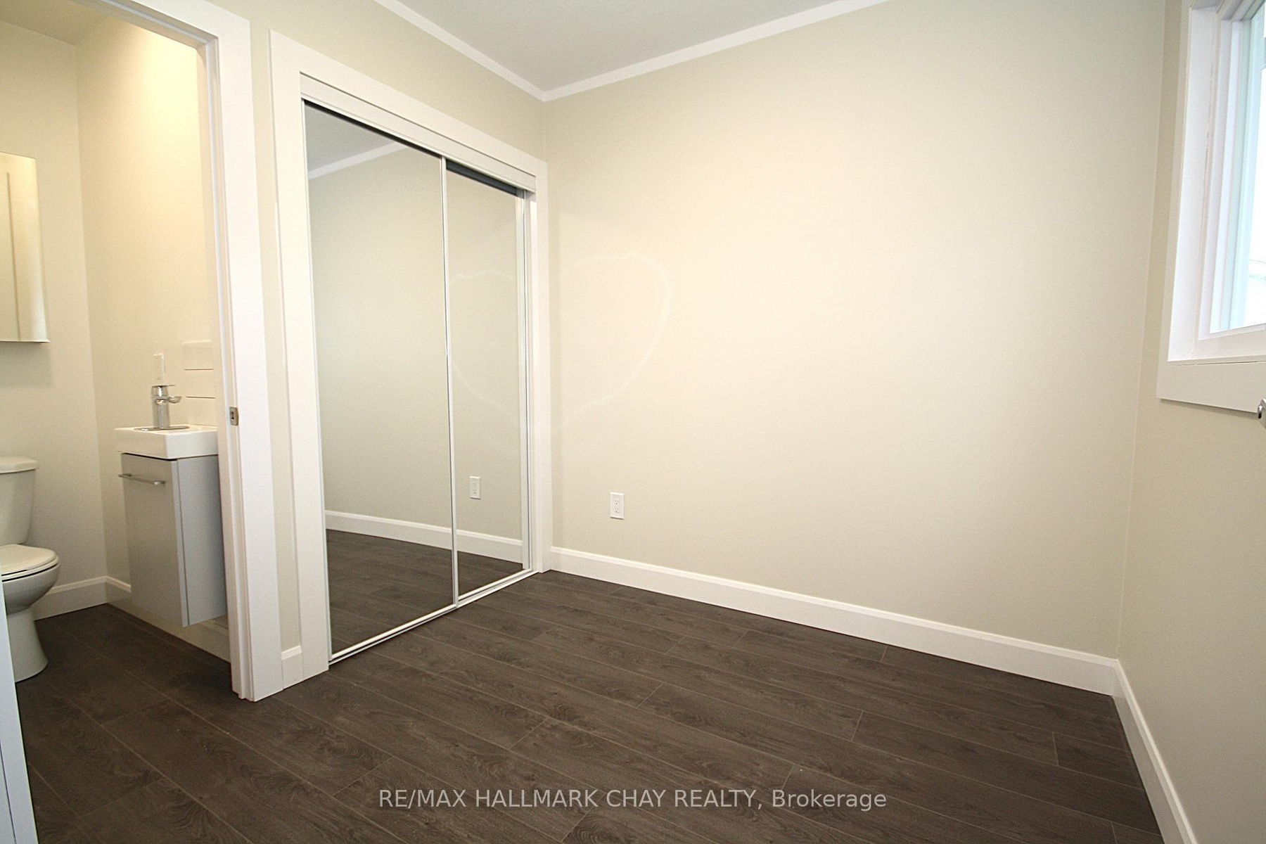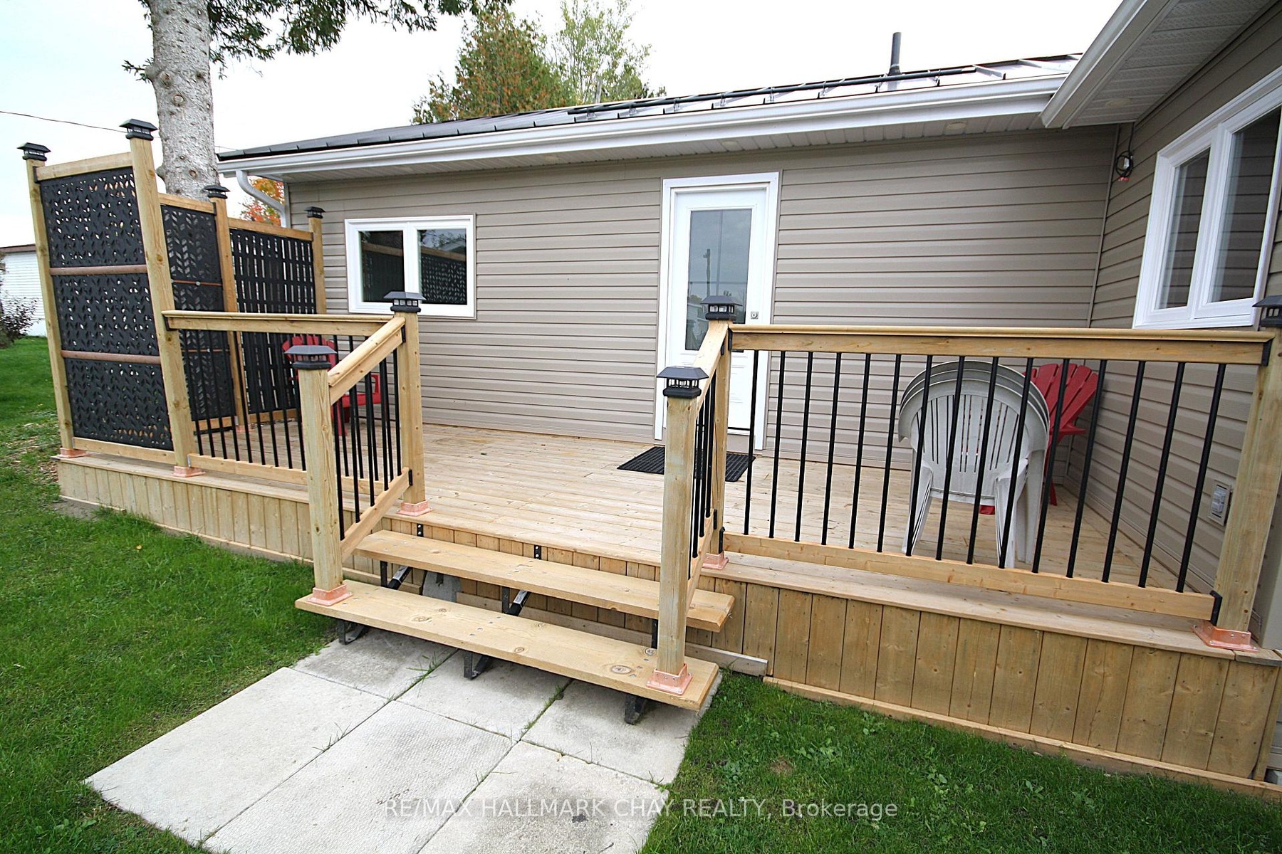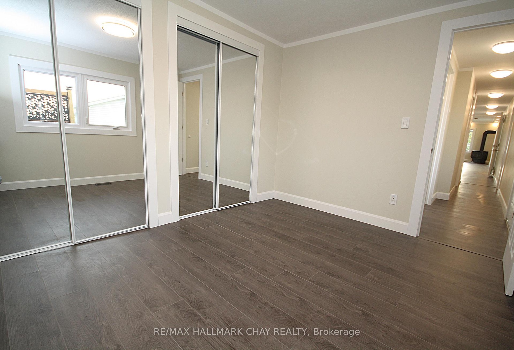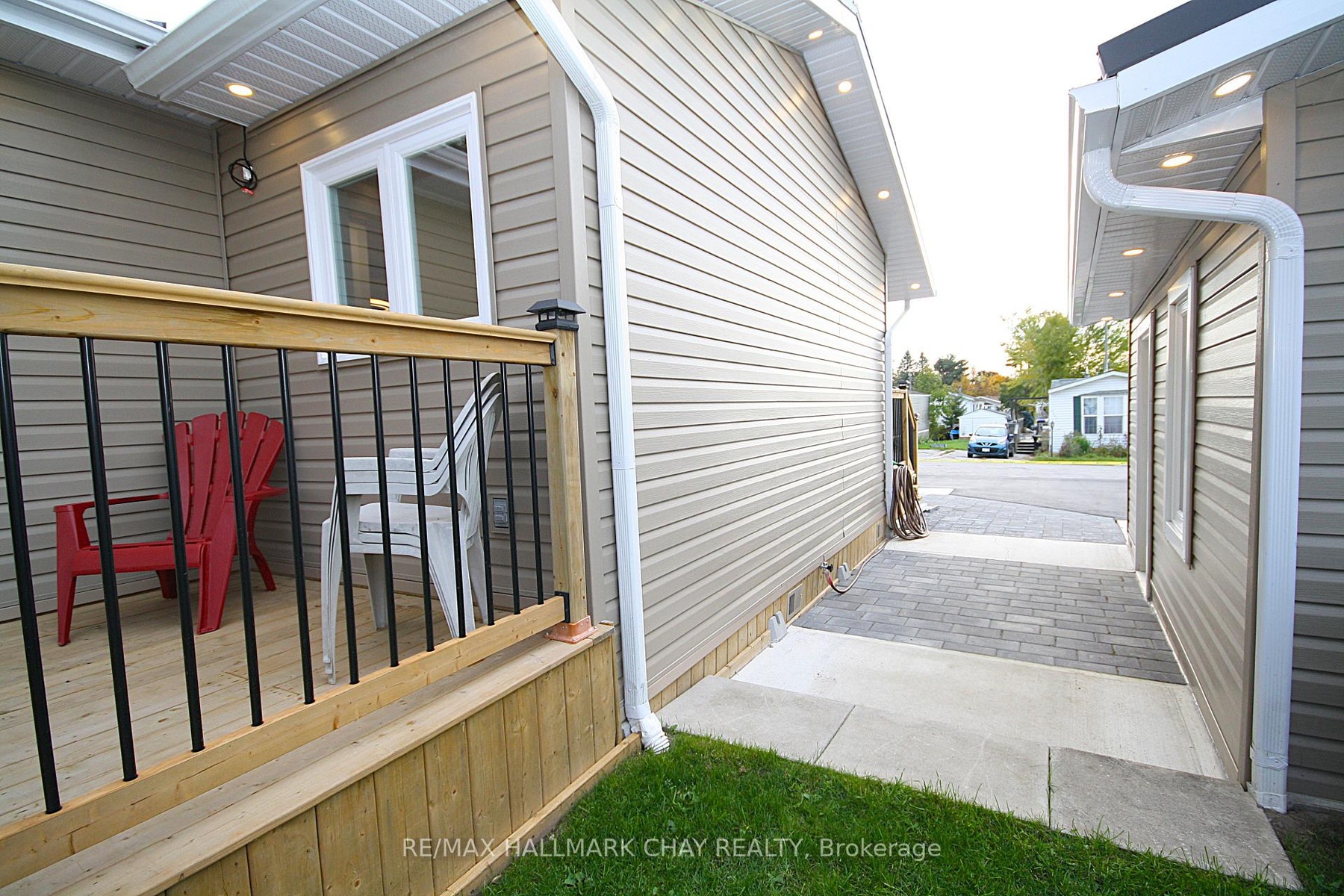 WOW! NEW, NEW, & MORE NEW! Completely renovated or rebuilt inside and out. This move in ready 2 bedroom 2 bathroom home has been recreated just for you to enjoy for many years to come. Excellent layout provides a walkout to large private deck off primary bedroom, bonus office with closet and attached 1/2 bath, large foyer with coat closet, covered porch, open concept kitchen with cozy gas fireplace. Too many upgrades to list...featuring all NEW in 2024/25; steel roofs on all 3 buildings, siding, soffit, fascia, troughs, exterior lighting, huge new asphalt driveway, paver stone, all new windows, and new exterior doors, new decks, upgraded insulation, new drywall, all new flooring, totally new bathroom, 5 brand new appliances, new kitchen, new central air unit, all interior trim & doors, and paint, new pot lighting and light fixtures, and much much more! Walk out to large private deck. Pride of ownership and attention to details abound. Garage was taken down to foundation and rebuilt with new framing, insulated walls and doors, windows, garage door opener, and hydro. Amazing opportunity. Located close to Orillia and major amenities. Land lease fee includes road maintenance, garbage removal.