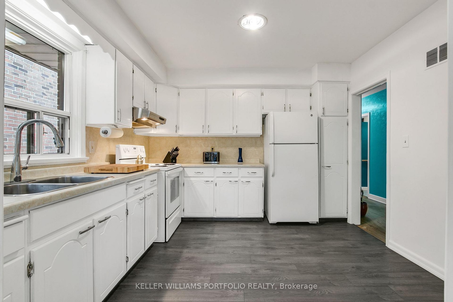This cherished mid-century bungalow is perfect for living now, with potential for future enhancements or a custom rebuild on its large 50x160 ft west facing lot. The home is bathed in natural light thanks to large windows and solar tubes in the refreshed kitchen and main bath. It features a separate entrance to a clean bright basement with full bath and possible kitchen offering flexibility of use. Open concept living and dining areas with original hardwood floors, crown moulding, and an eat-in kitchen with built-in pantry, offer everyday function and ease. Three bedrooms, including a primary with backyard views, maintain original hardwood and ample light. The expansive basement includes a rec room with bar area and above grade windows as well as additional space for an office or bedroom. Outside, a massive, well manicured yard and flat-roofed patio await, perfect for entertaining. Long term, this could be the perfect canvas to build your custom dream home, with building plans already in place by the current owner. Centrally located, steps from parks, top schools, transit, shopping, and the Kipling GO and subway hub, as well as a 10 min drive to Pearson airport, this home offers endless potential.